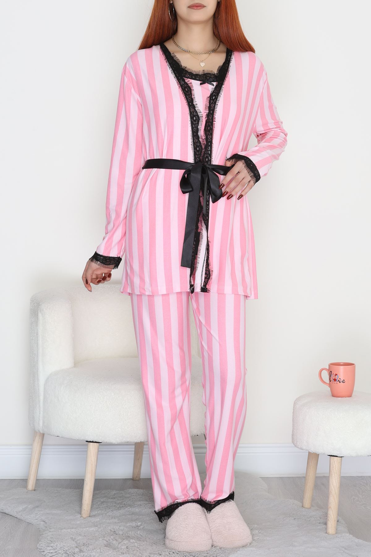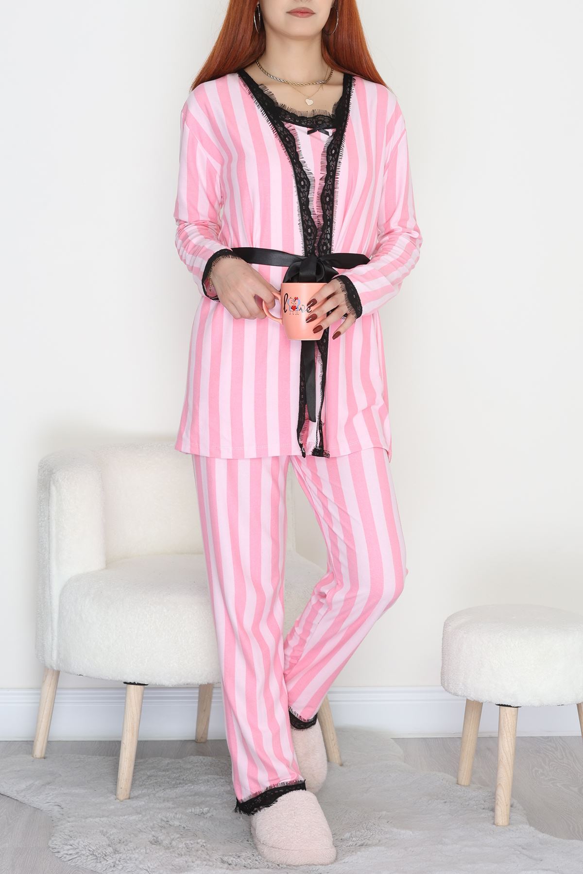 Süet 3'Lü Pijama Set Pembeçizgi - 798.1287.