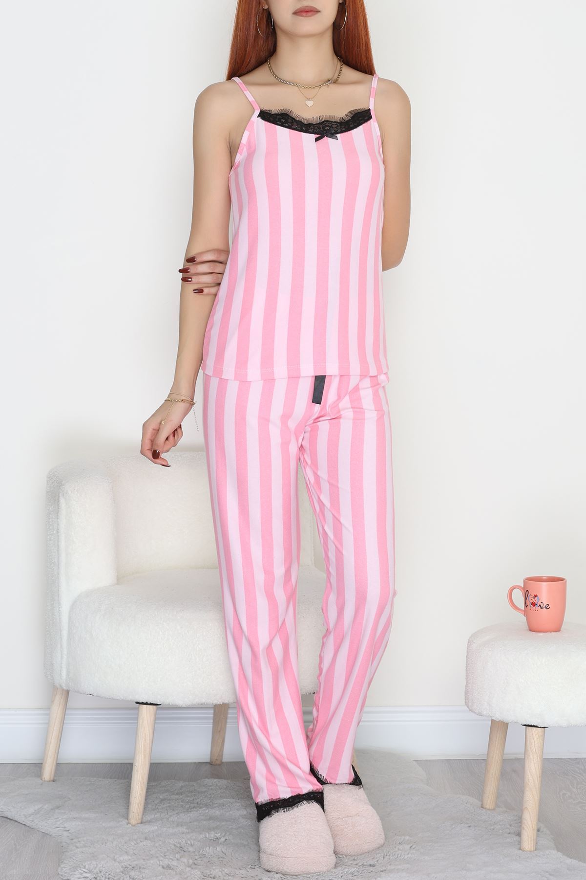 Fiyonk Nakışlı Biyeli Viskon Pijama Takımı Pembe - 40565.1857.