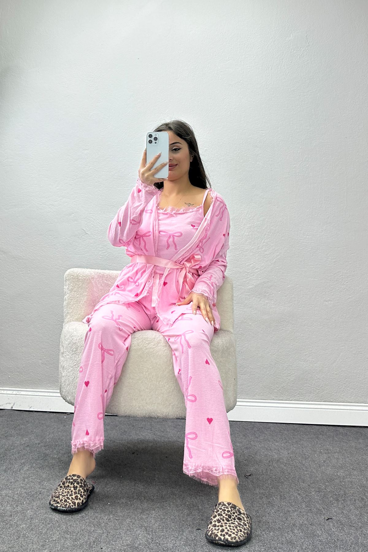 Süet 3'Lü Pijama Set Pembefiyonk - 798.1287.