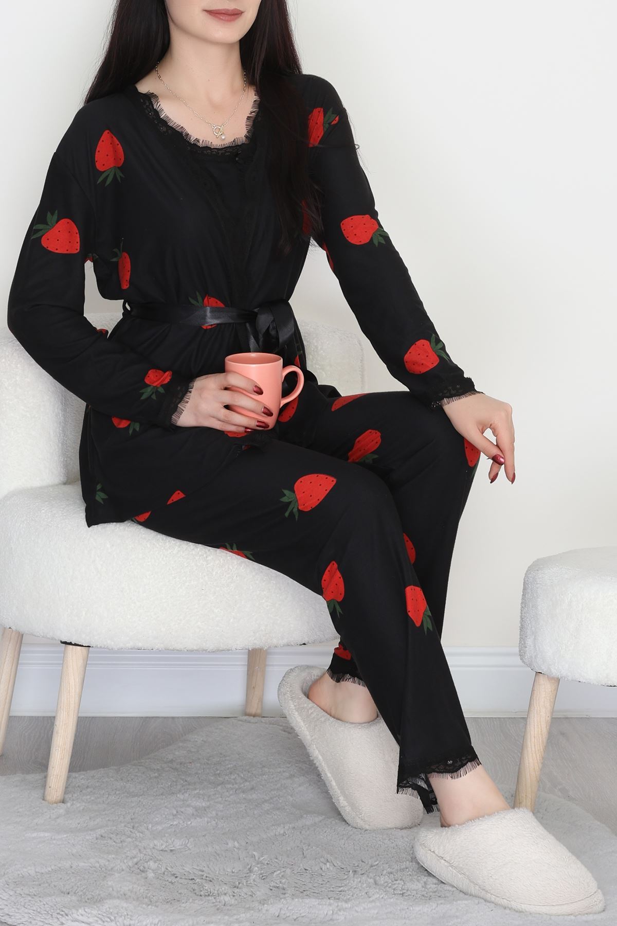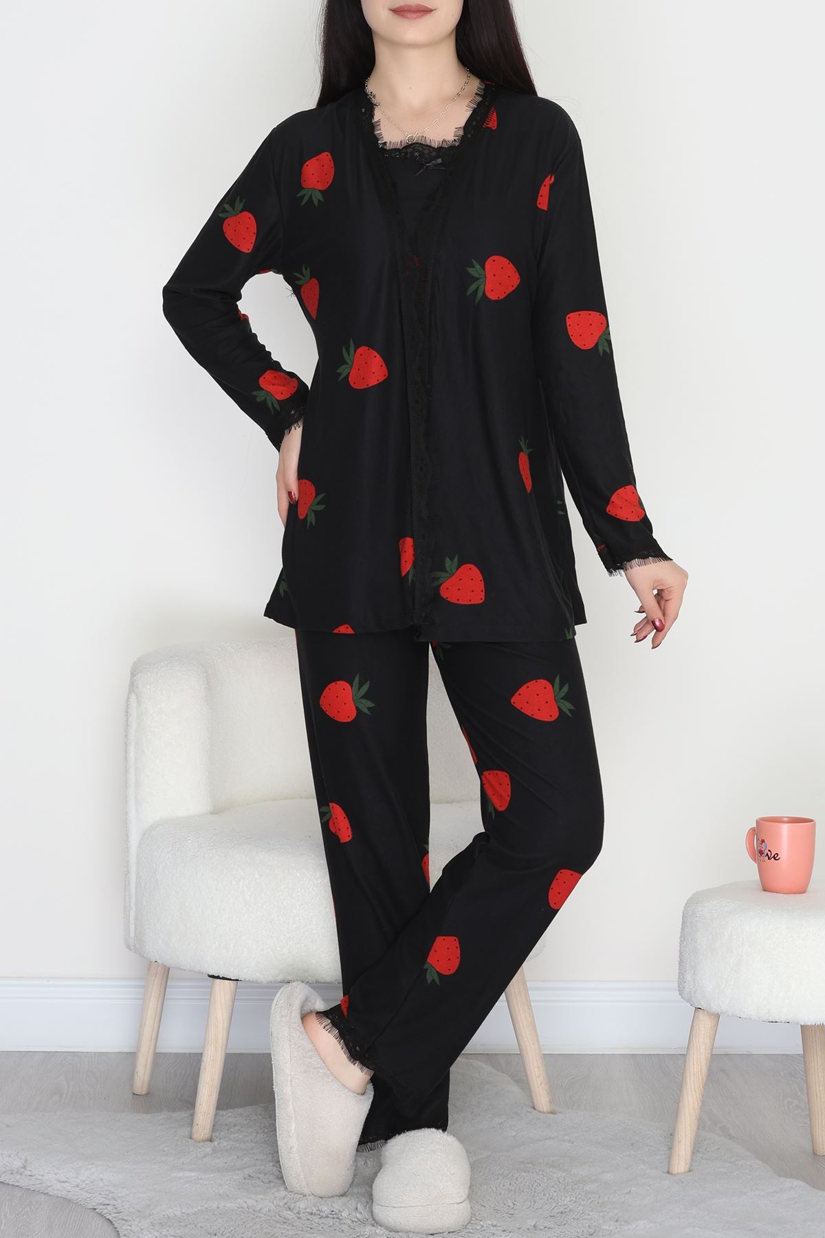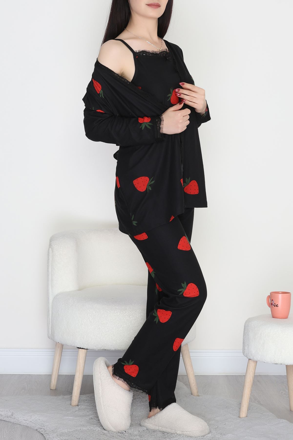 Süet 3'Lü Pijama Set Siyahçilek - 798.1287.