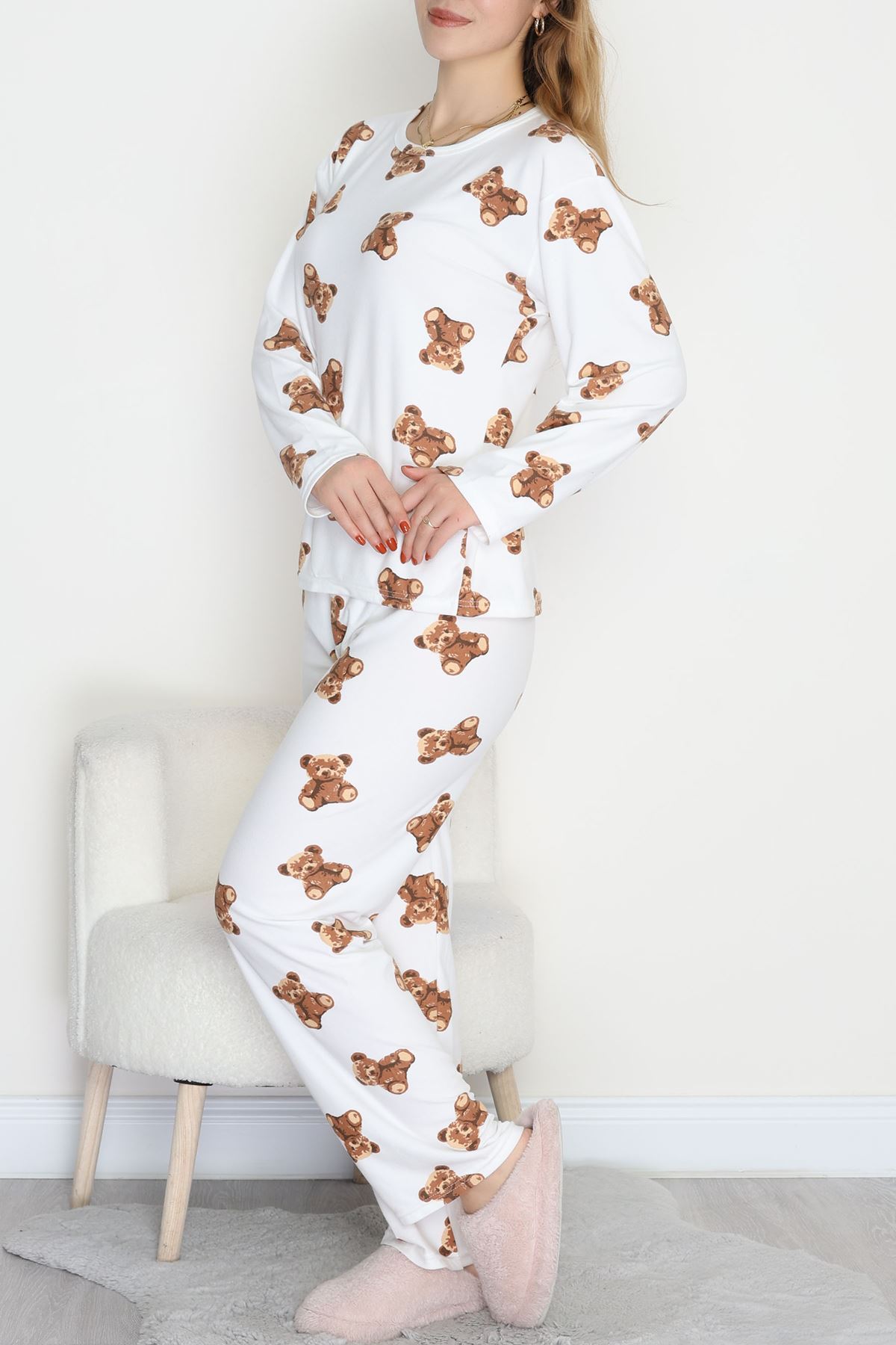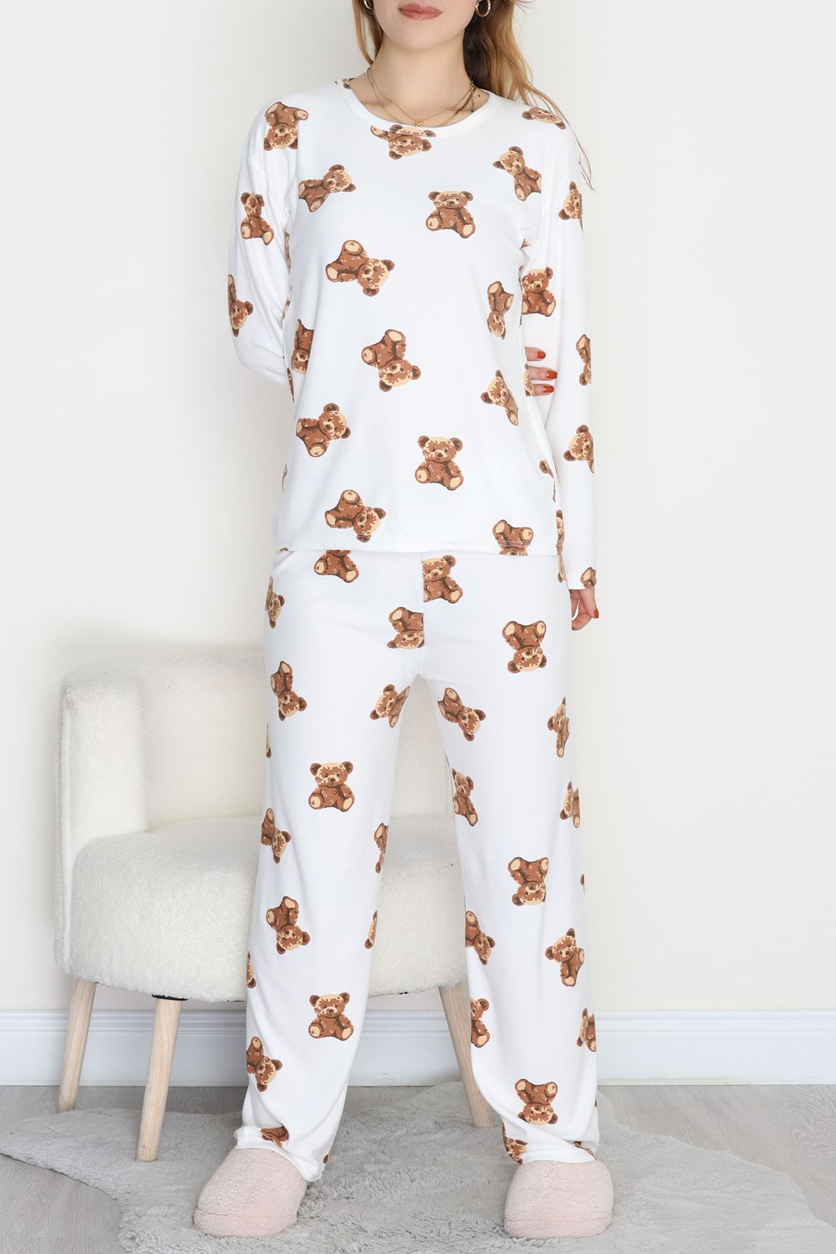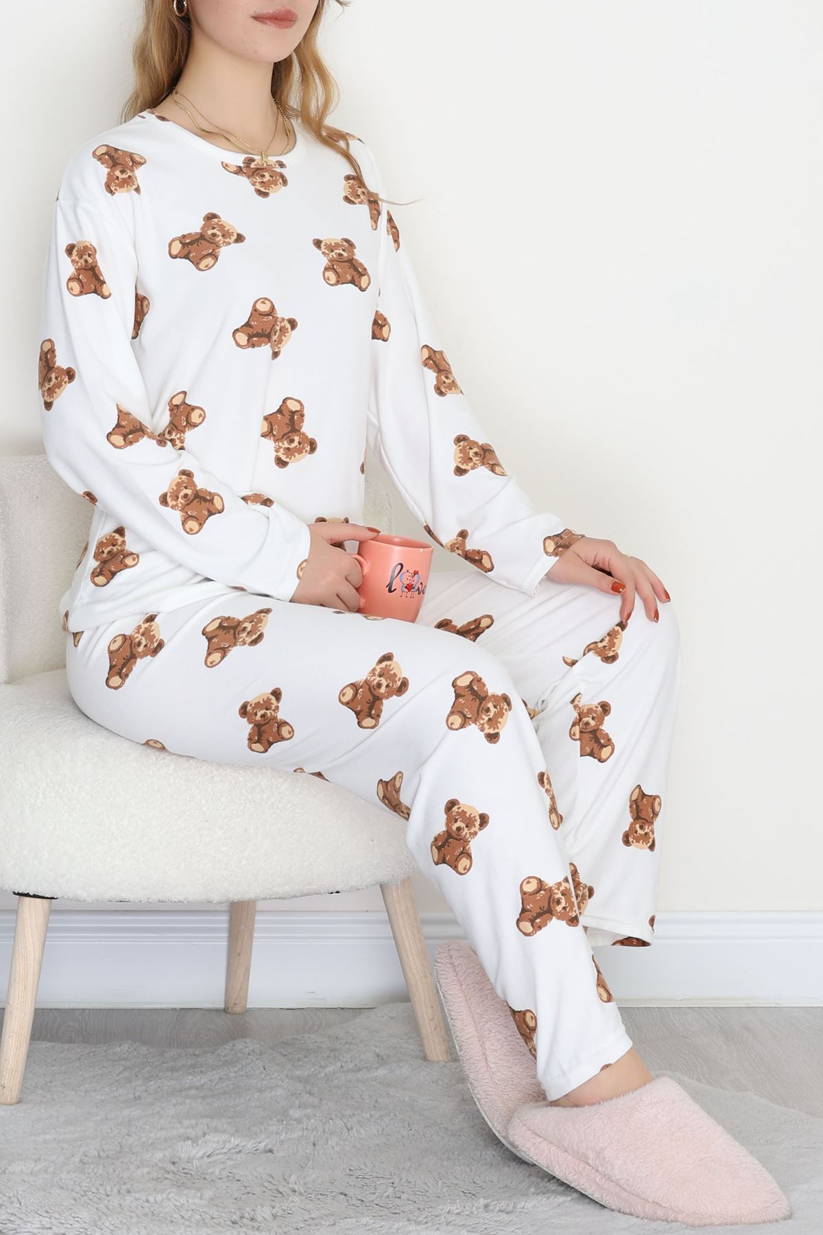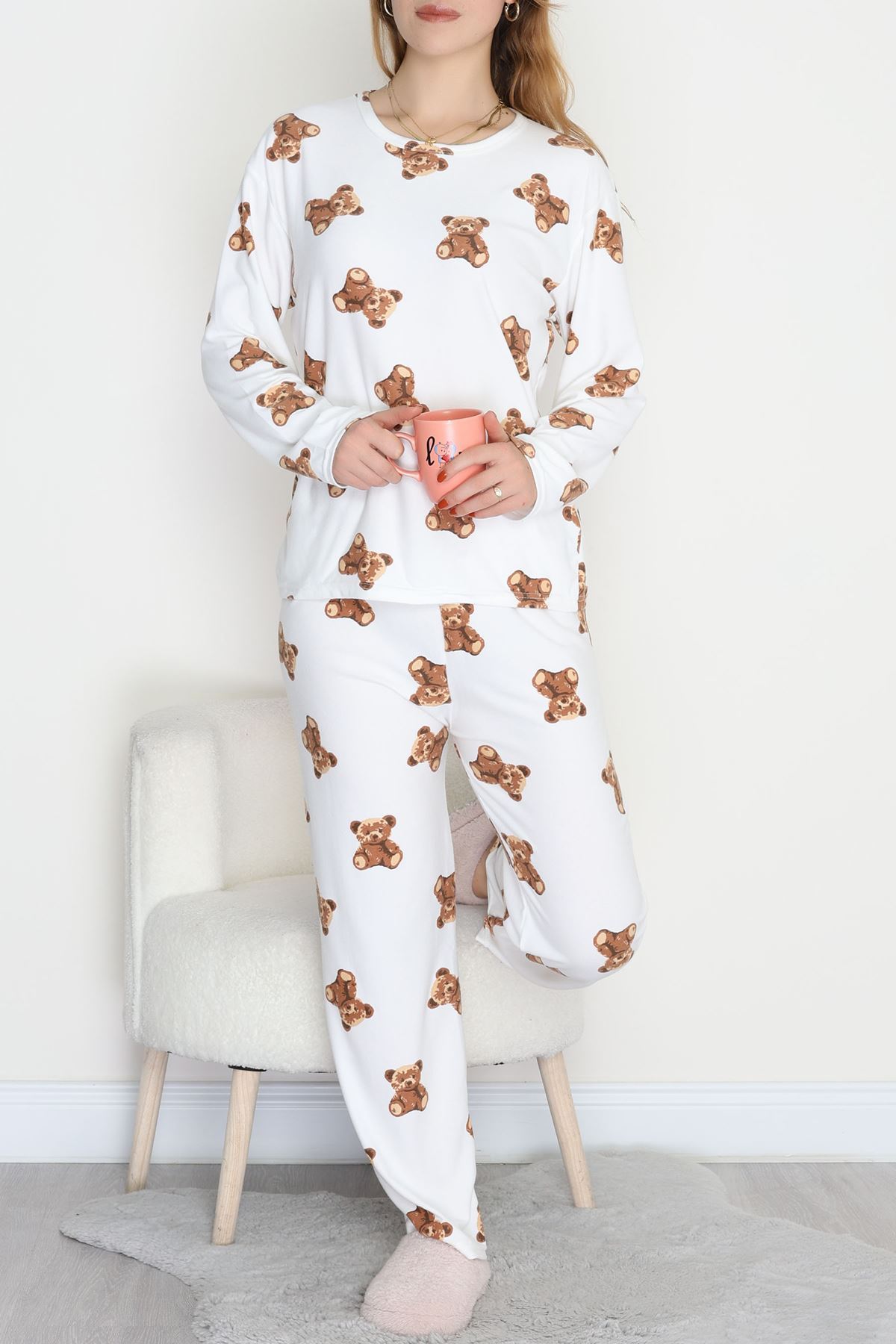 Süet Alt Üst Aynı Pijama Takımı Beyazayı - 118.1287.