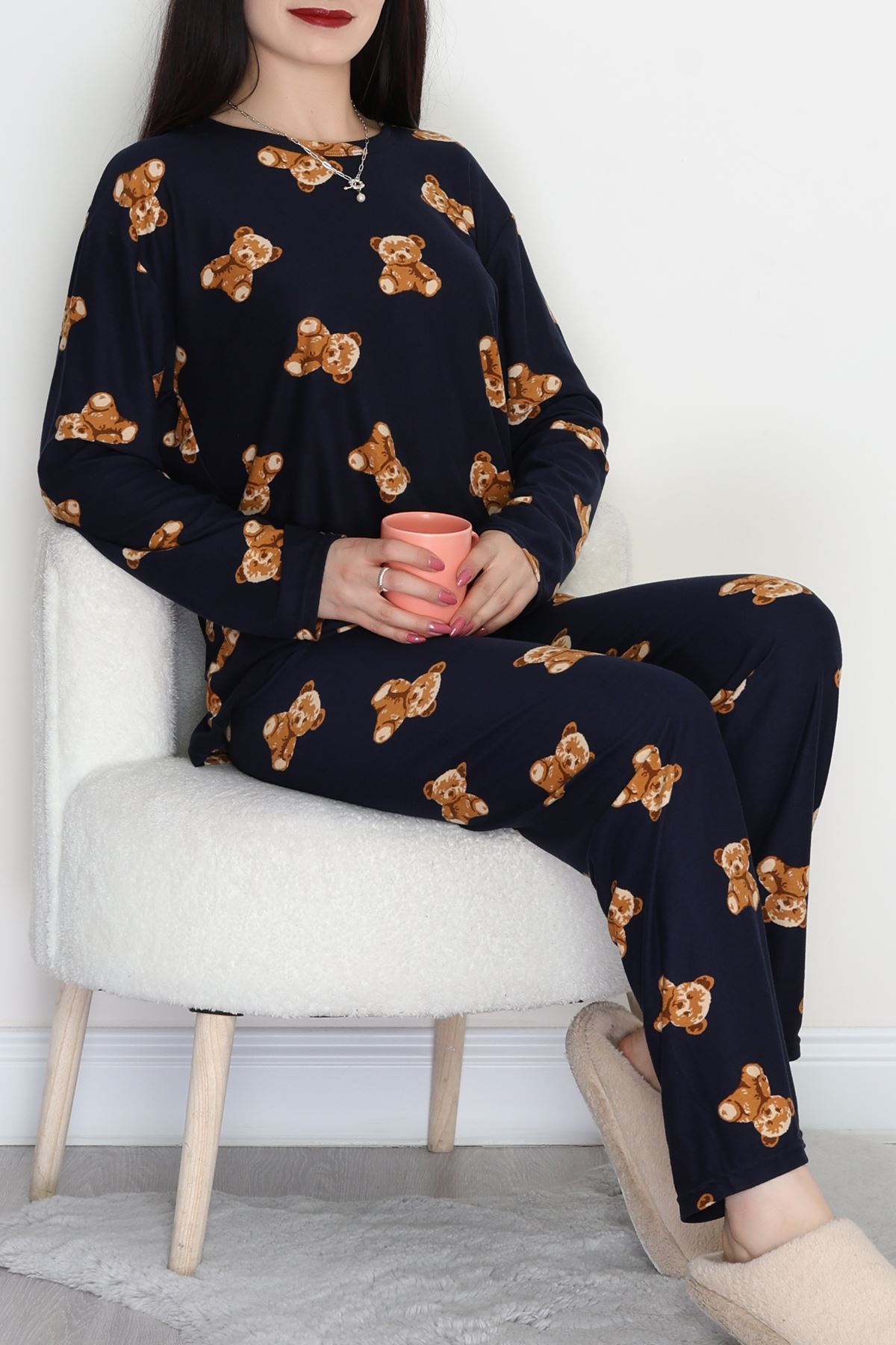 Düğmeli Süet Pijama Takımı Yeşiltavşan - 450.1287.