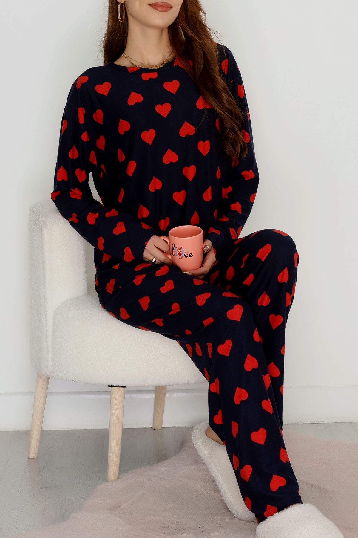 Soft Milan Düğmeli Pijama Takımı Kırmızıkalp - 7511.1287.