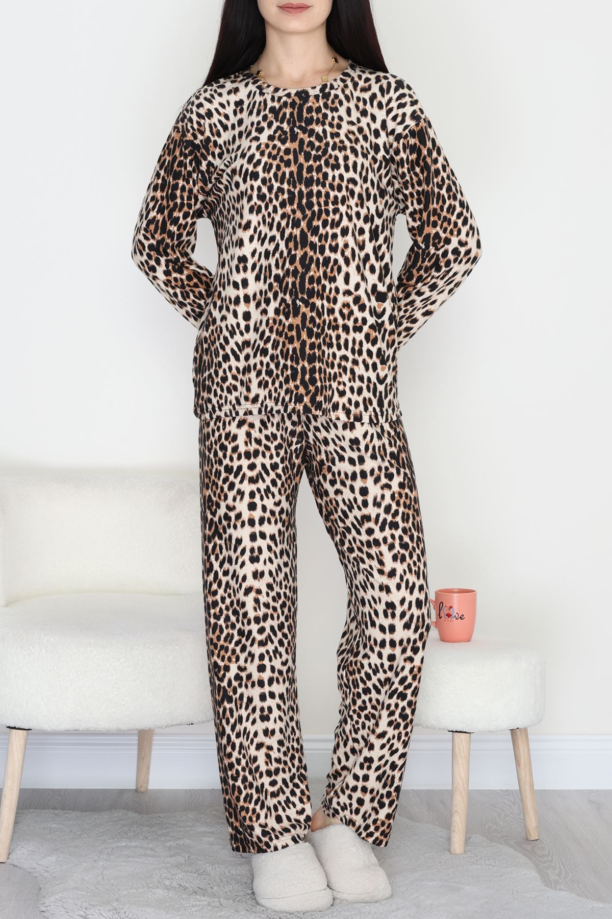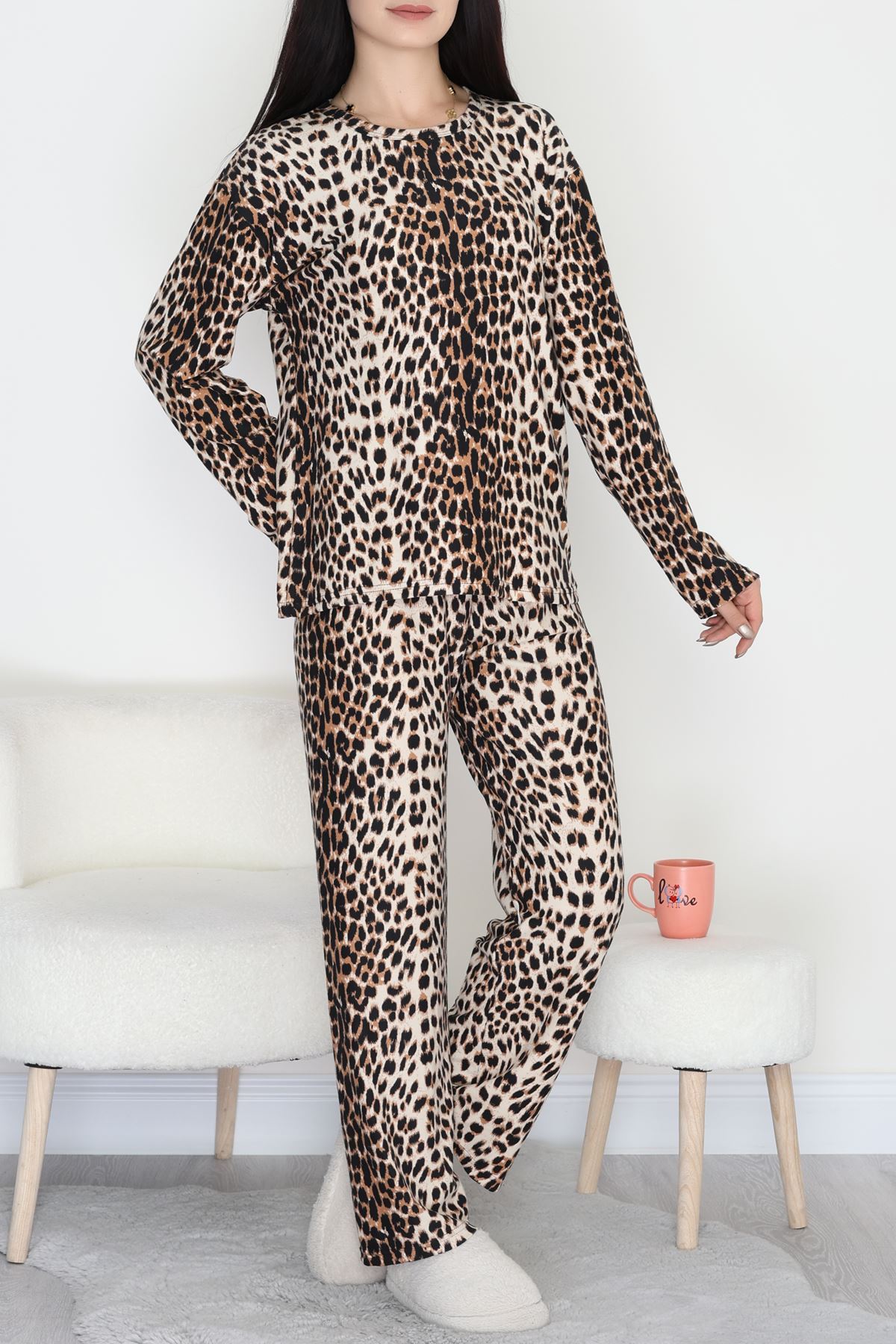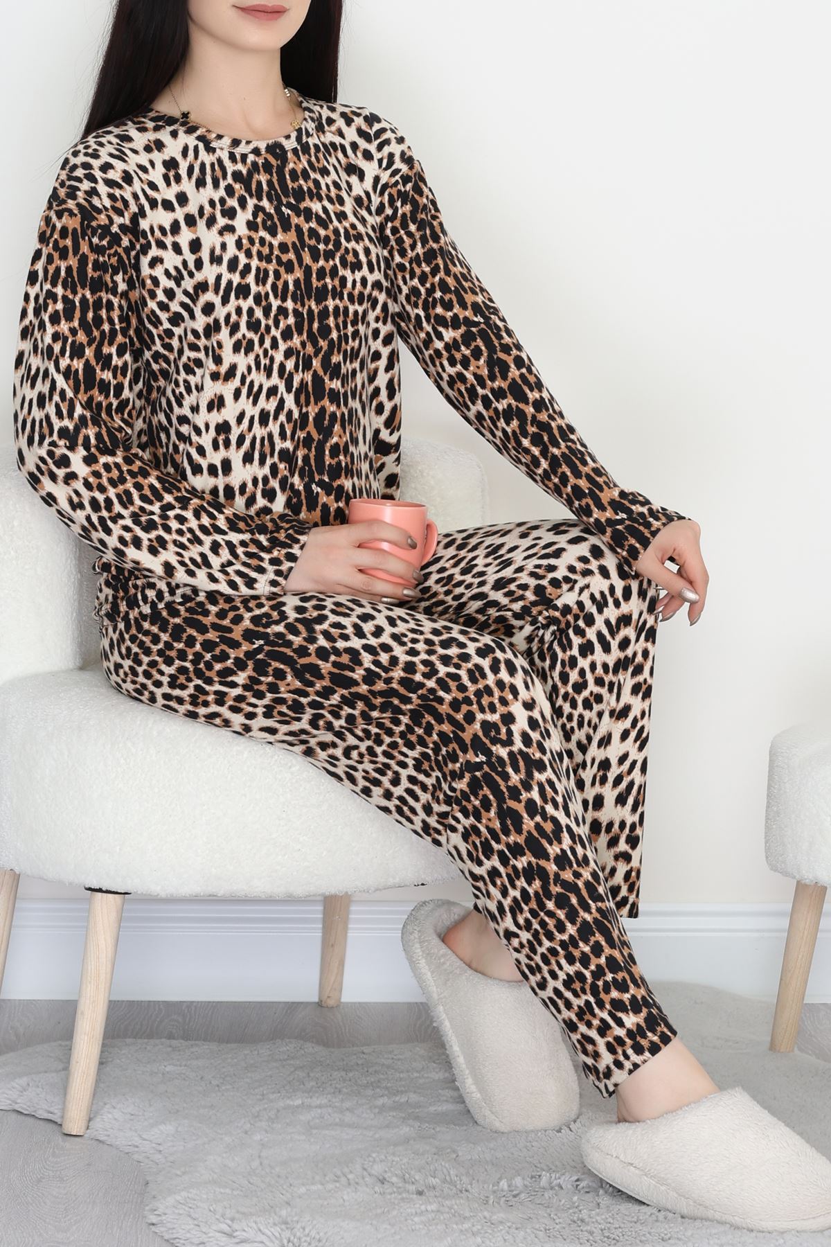 Süet Alt Üst Aynı Pijama Takımı Leopar - 118.1287.