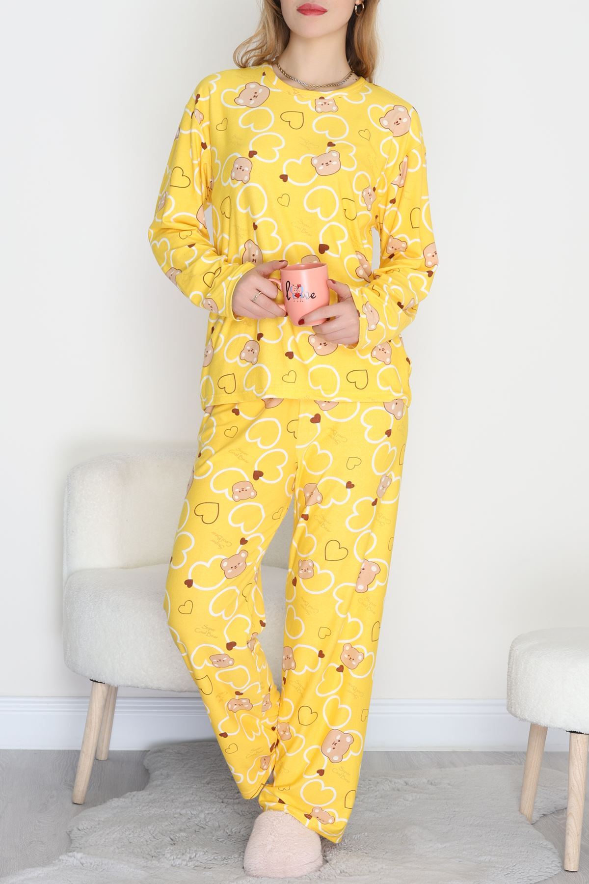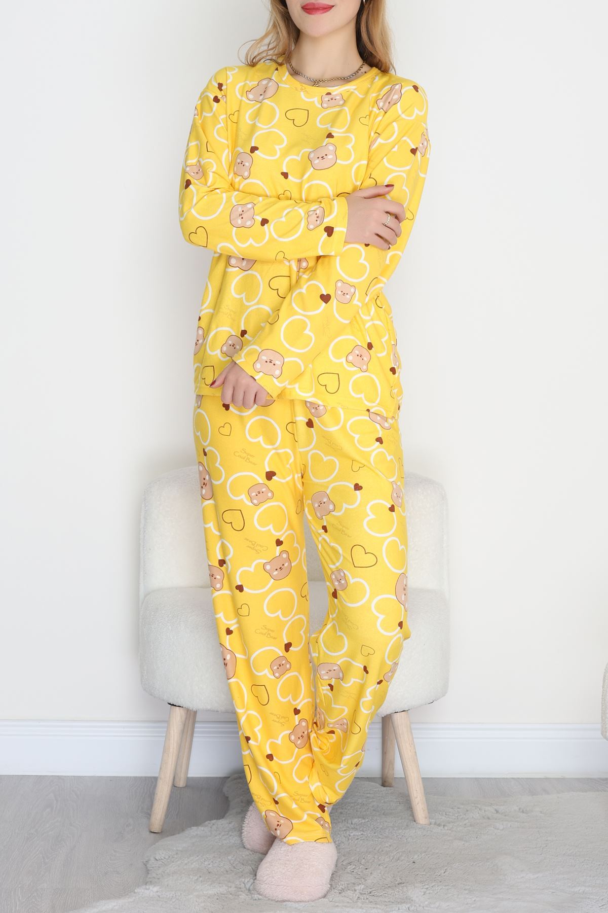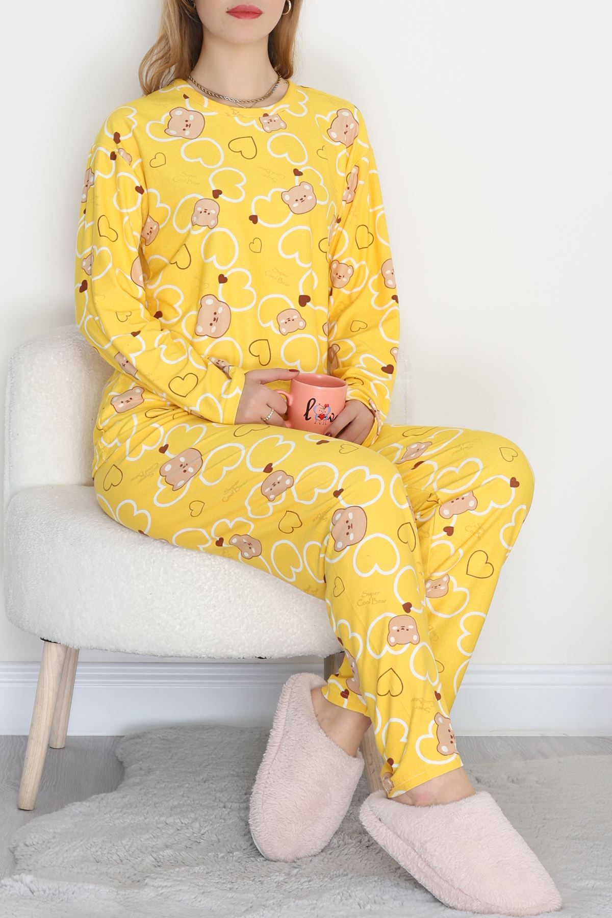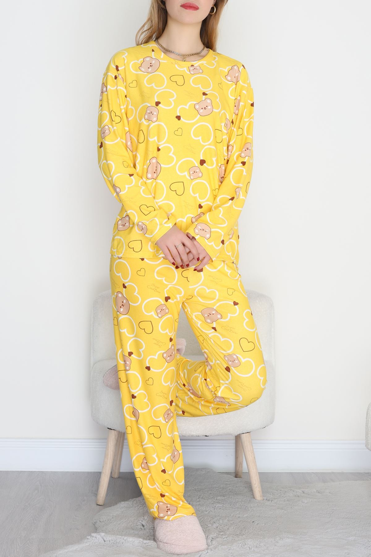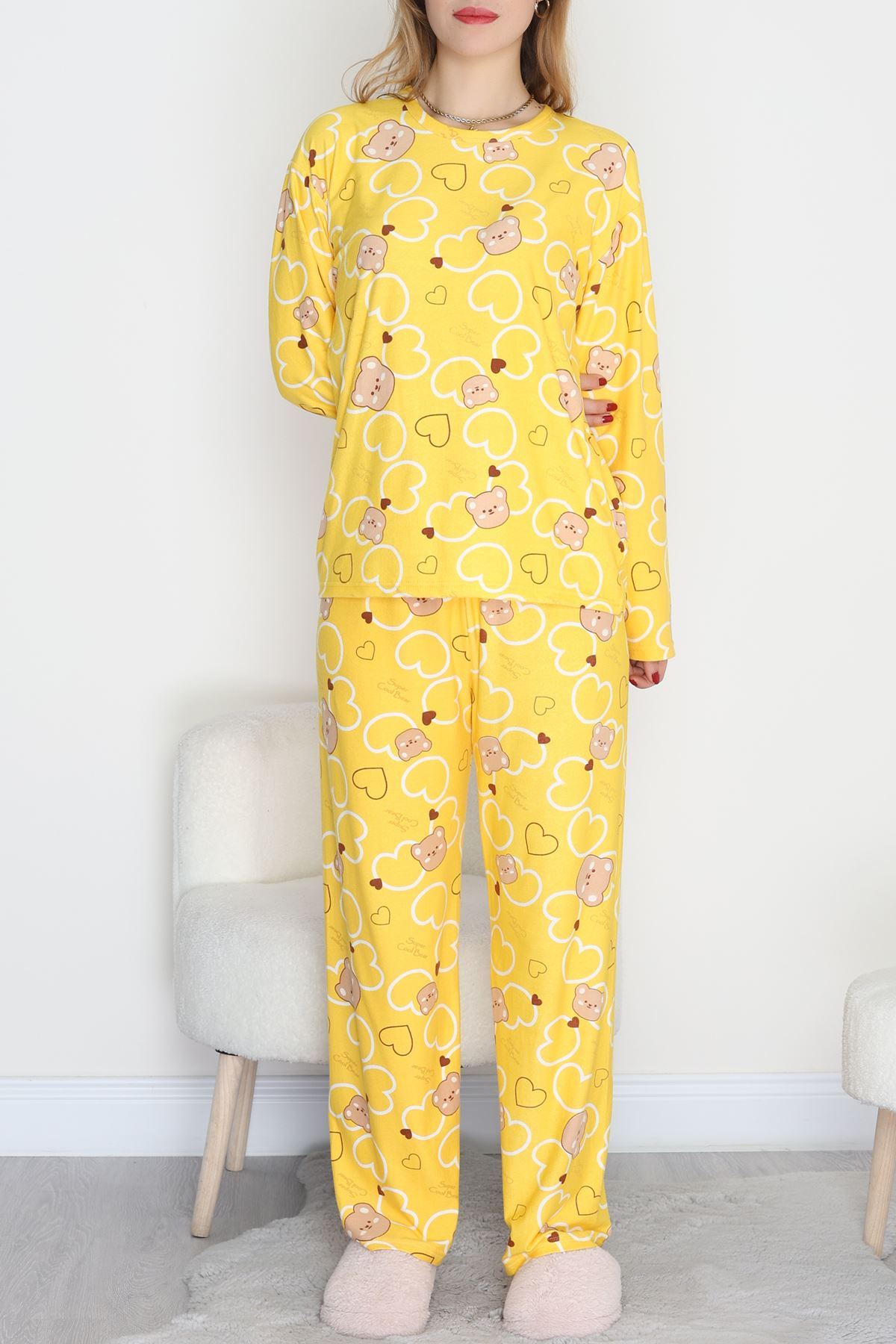 Süet Alt Üst Aynı Pijama Takımı Sarıayı - 118.1287.