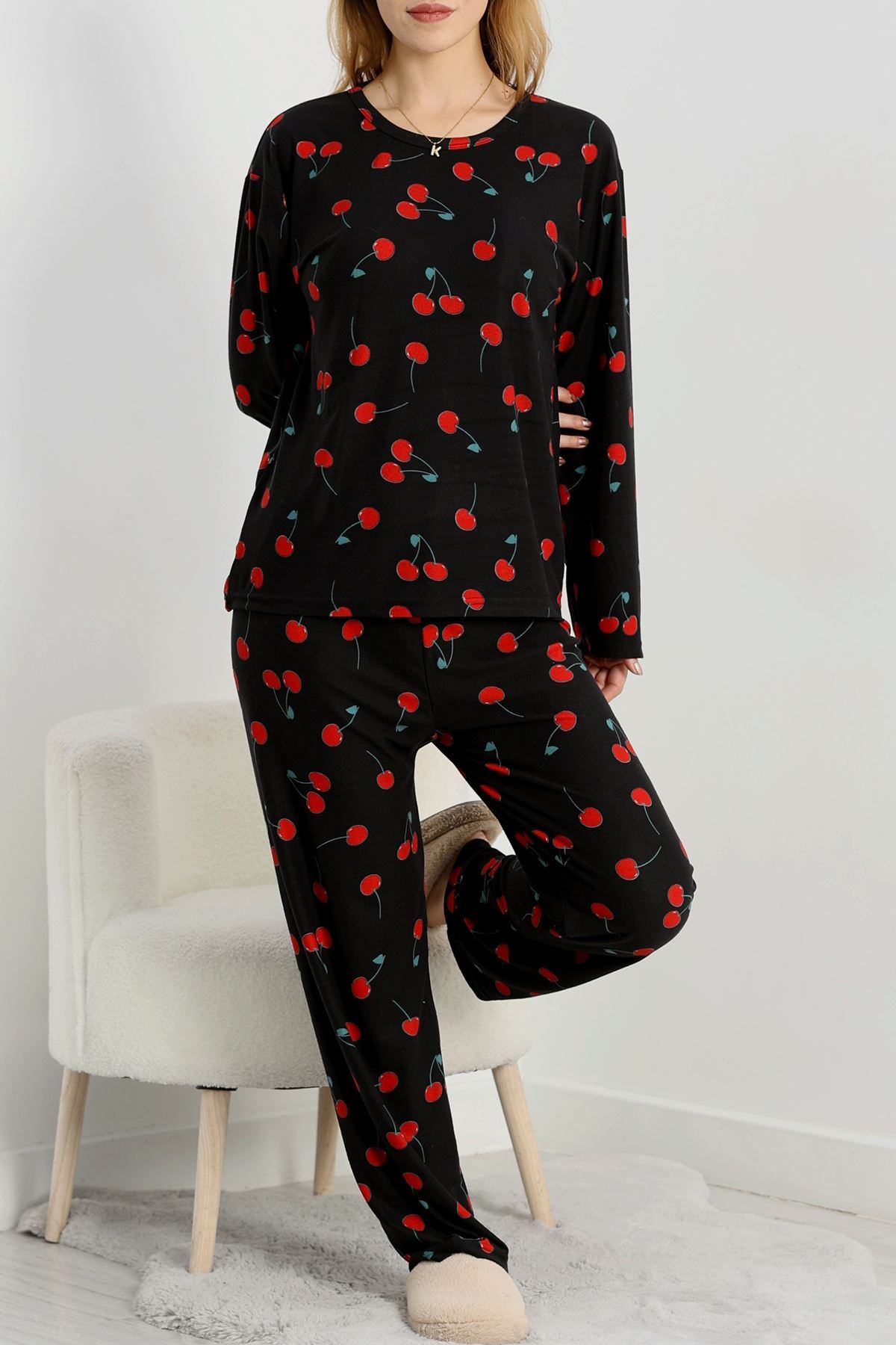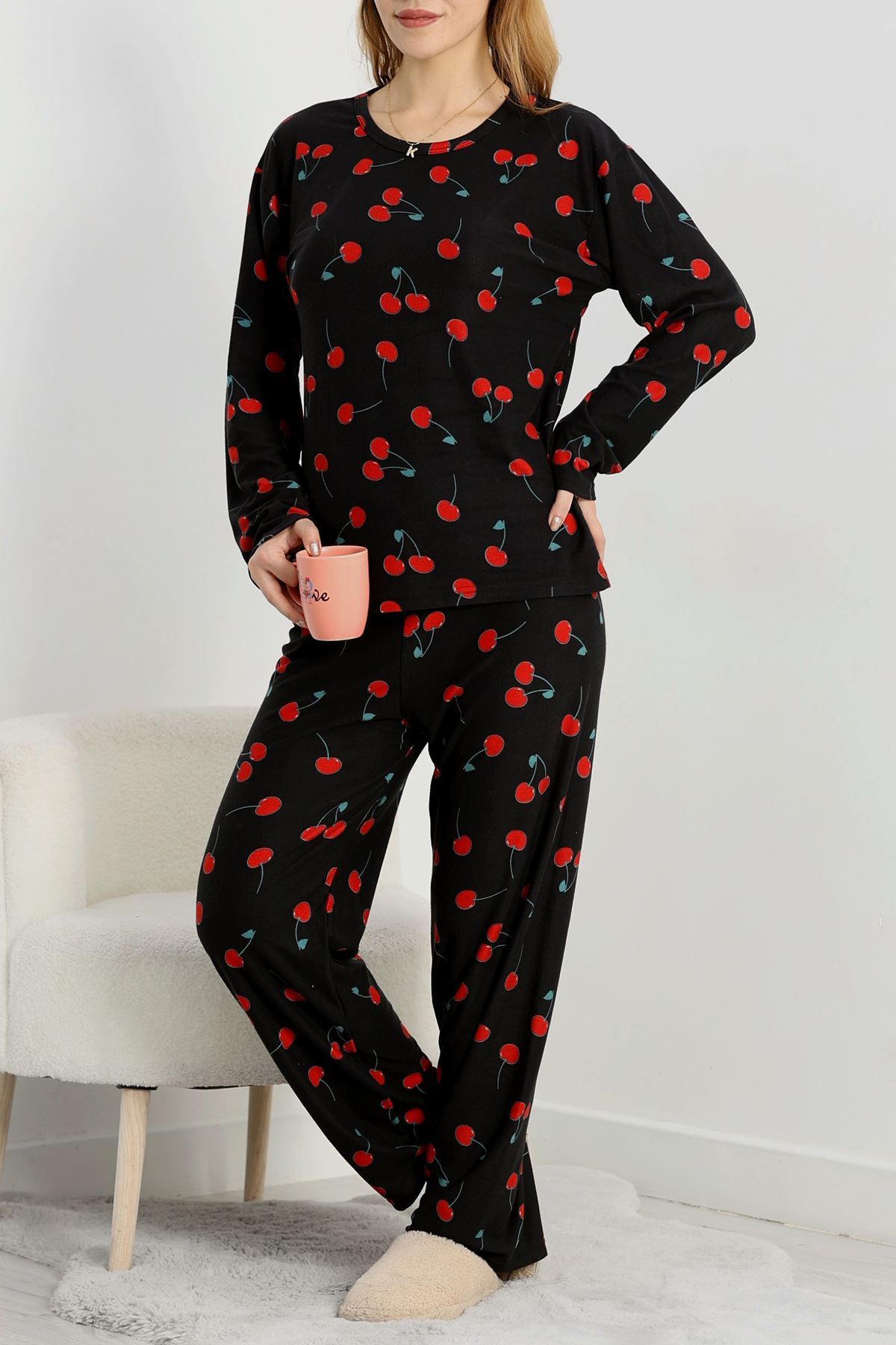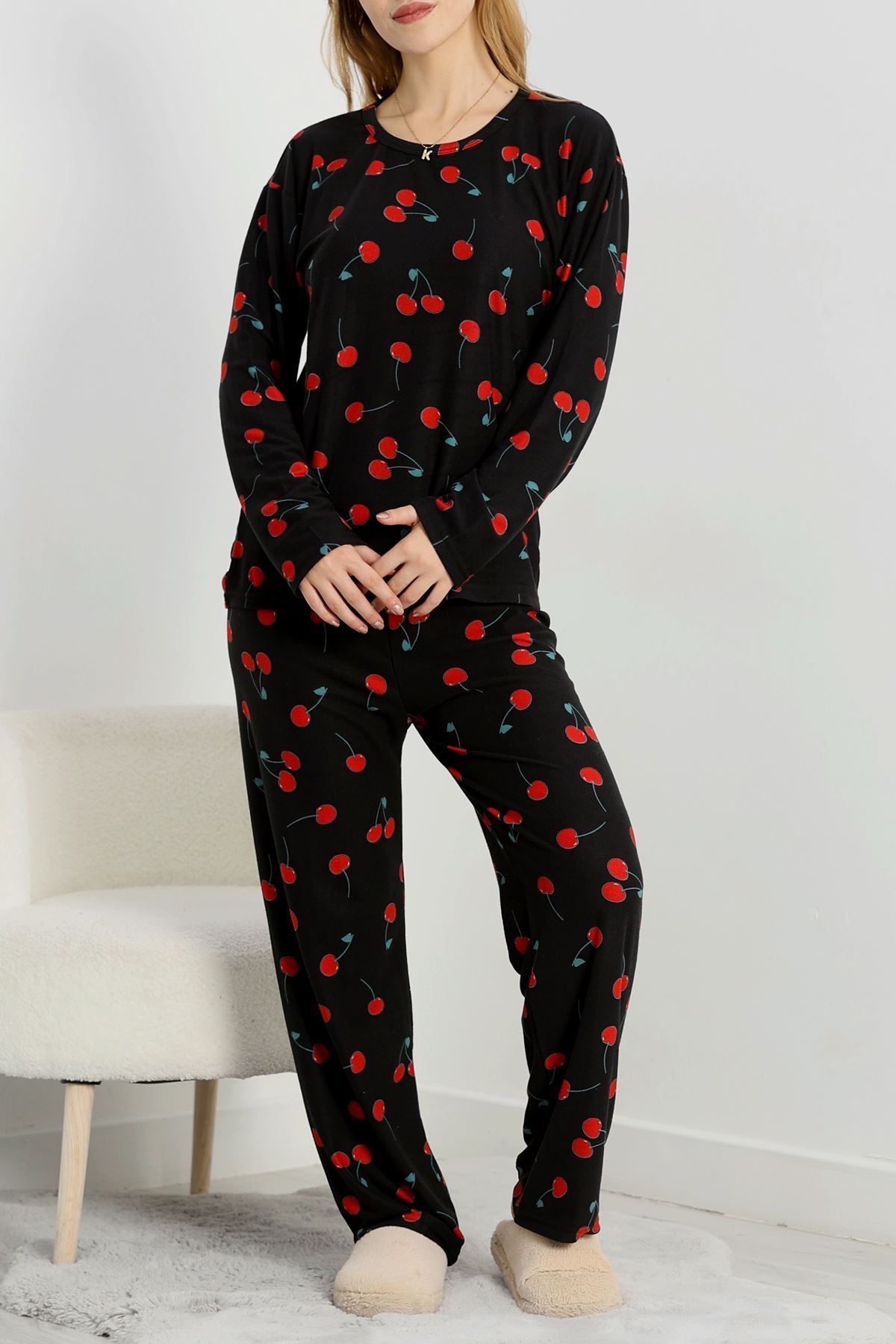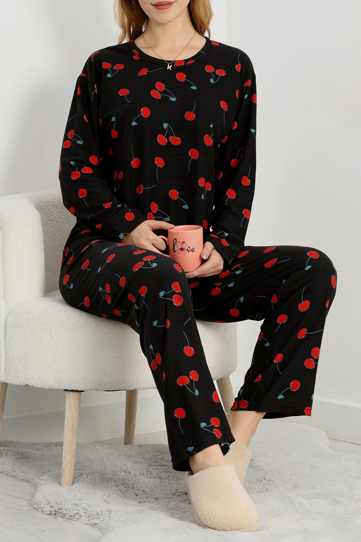 Süet Alt Üst Aynı Pijama Takımı Siyahkiraz - 118.1287.