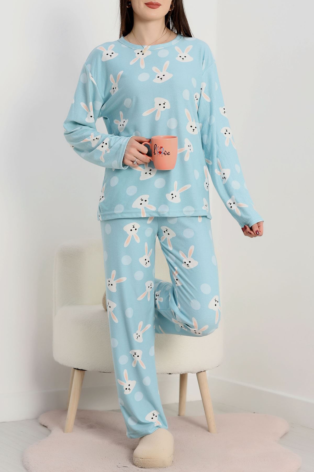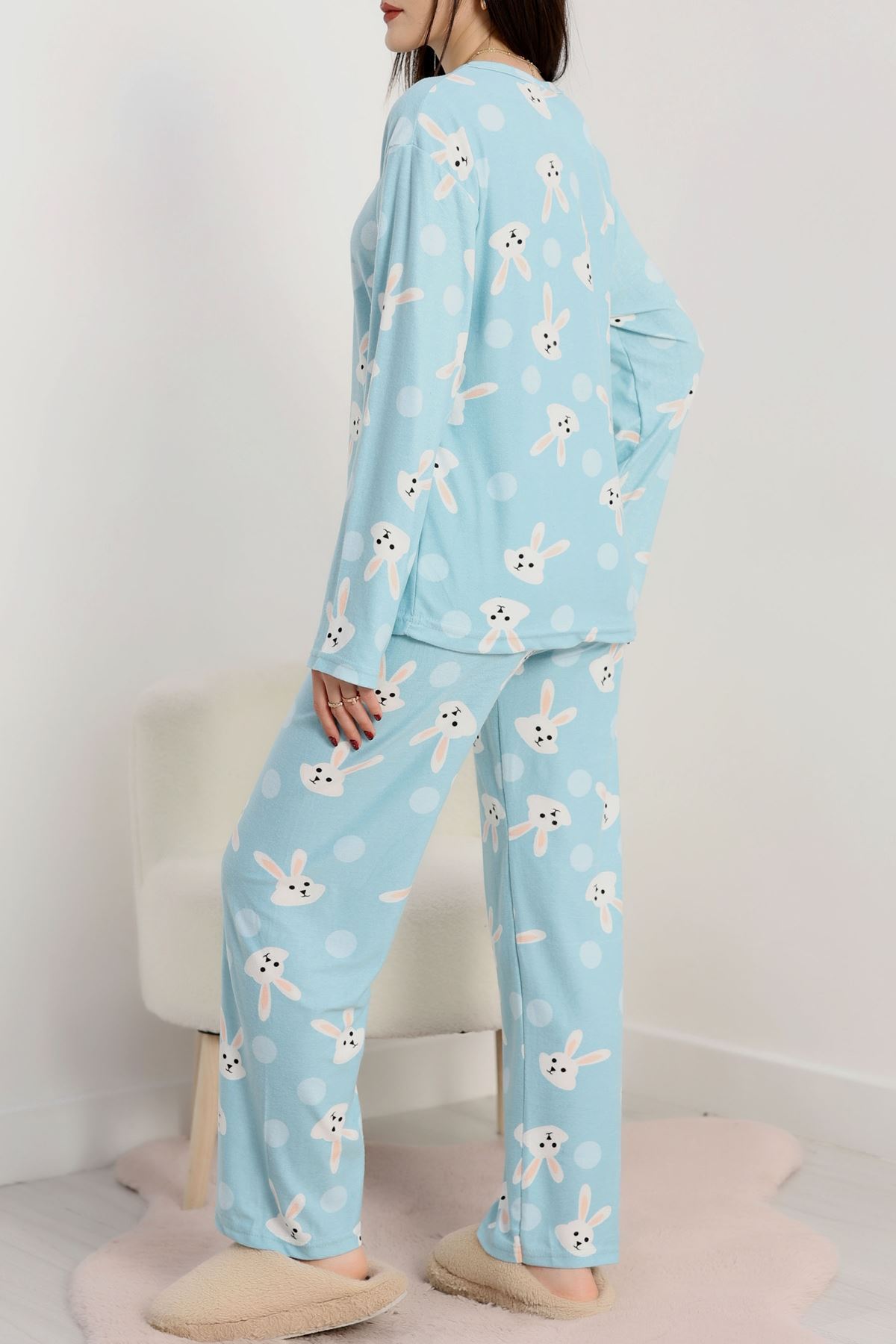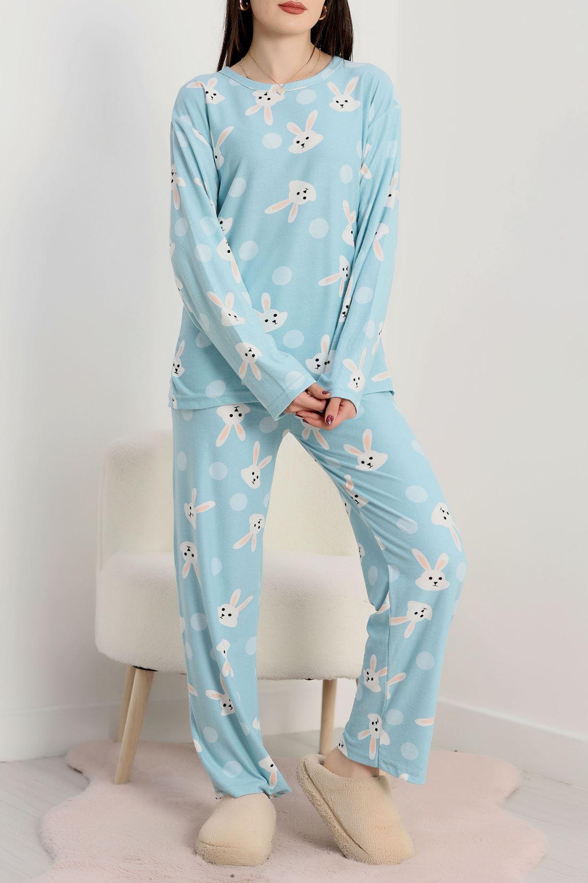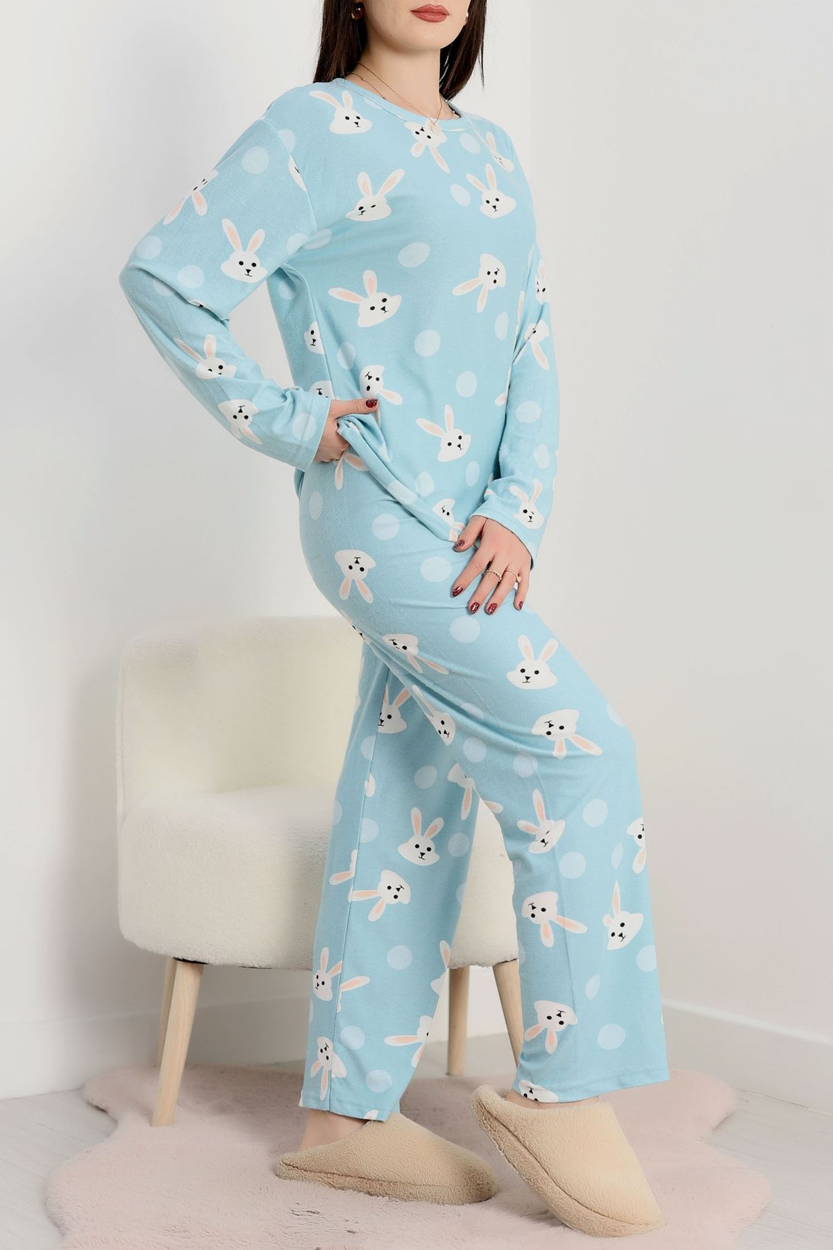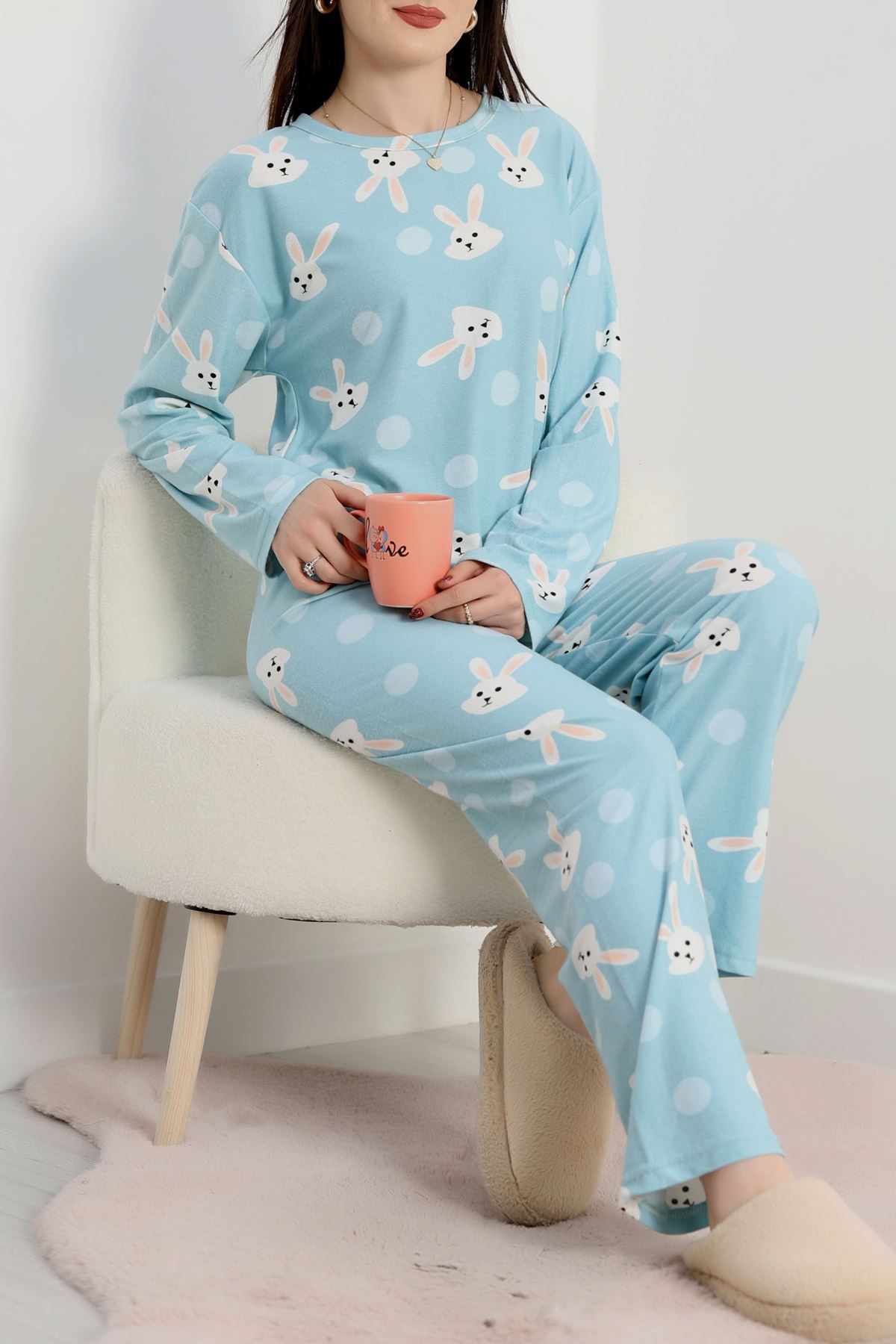 Nakışlı İnterlok Pijama Takımı Maviayı - 800.1287.