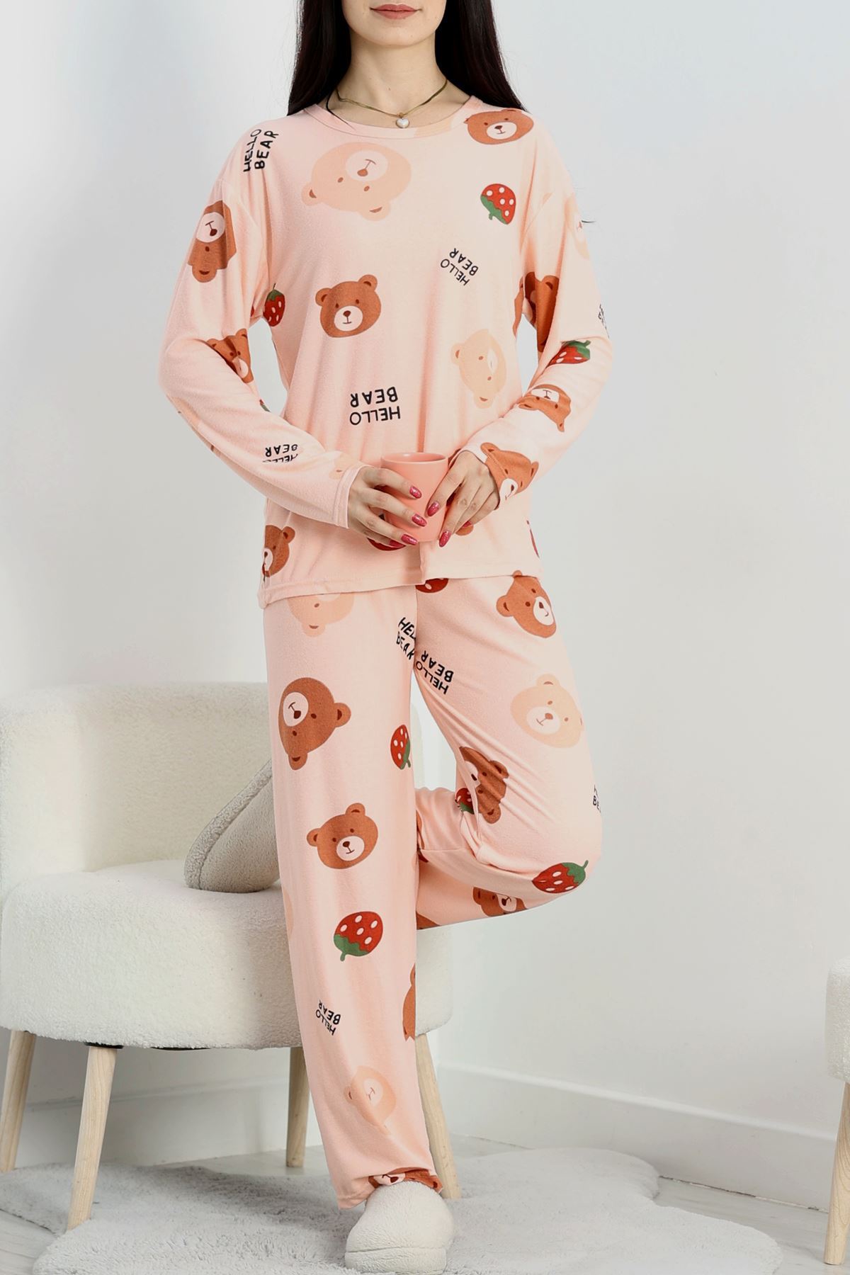 Süet Alt Üst Aynı Pijama Takımı Tozpembe - 118.1287.