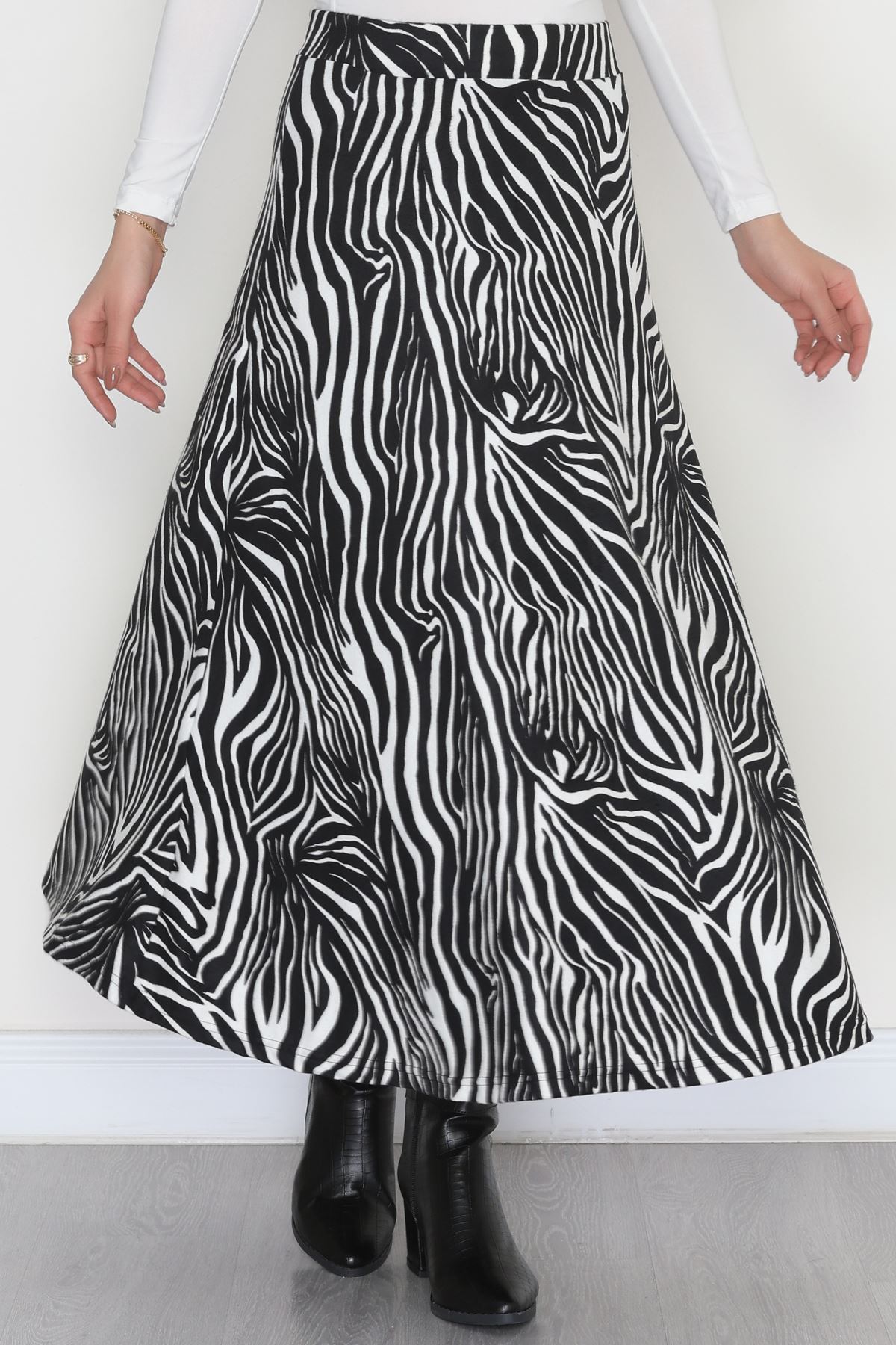 Süet Mevlana Etek Siyahbeyaz - 51060.1355.