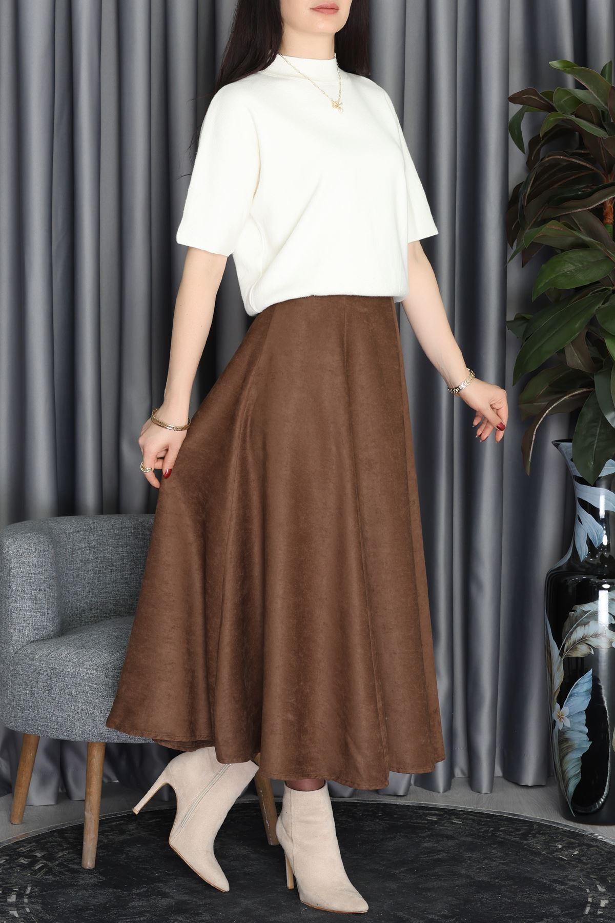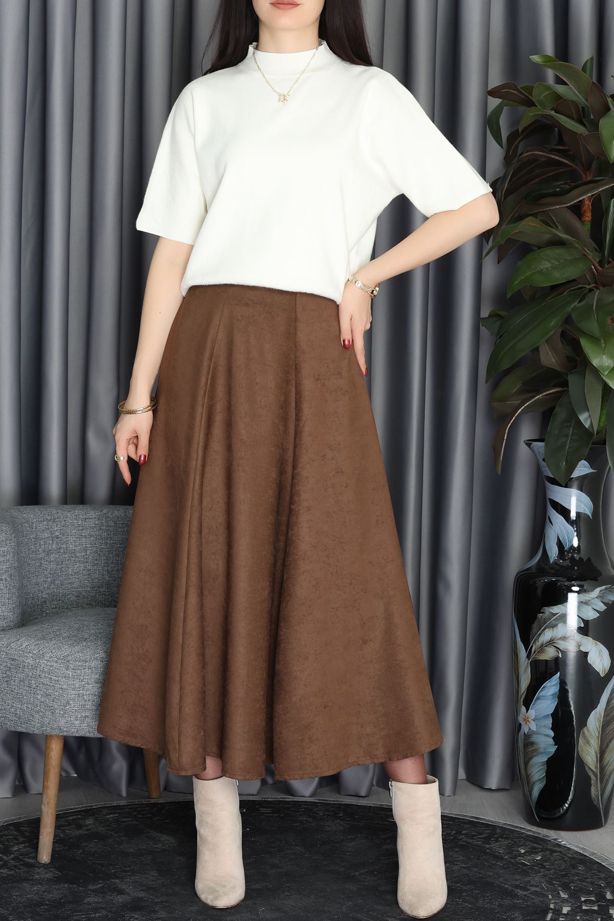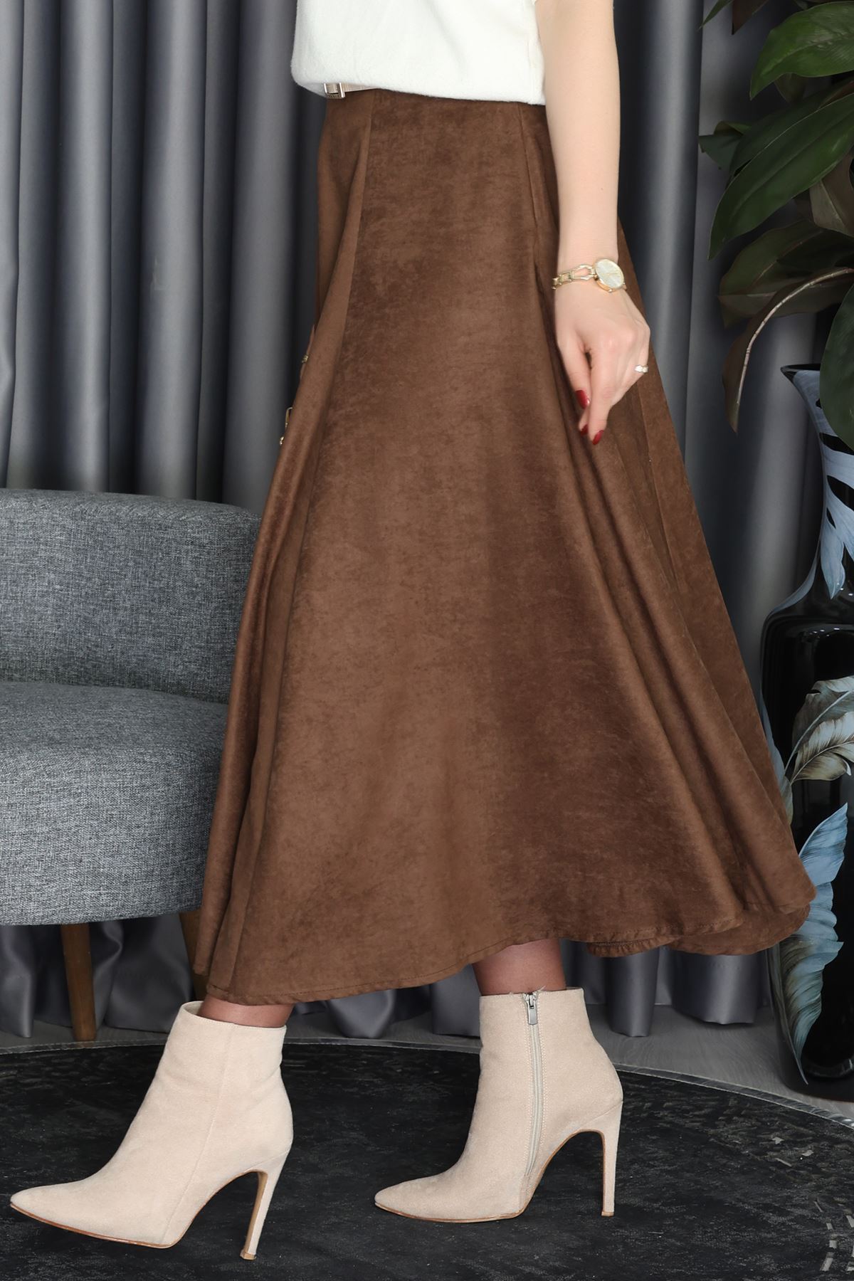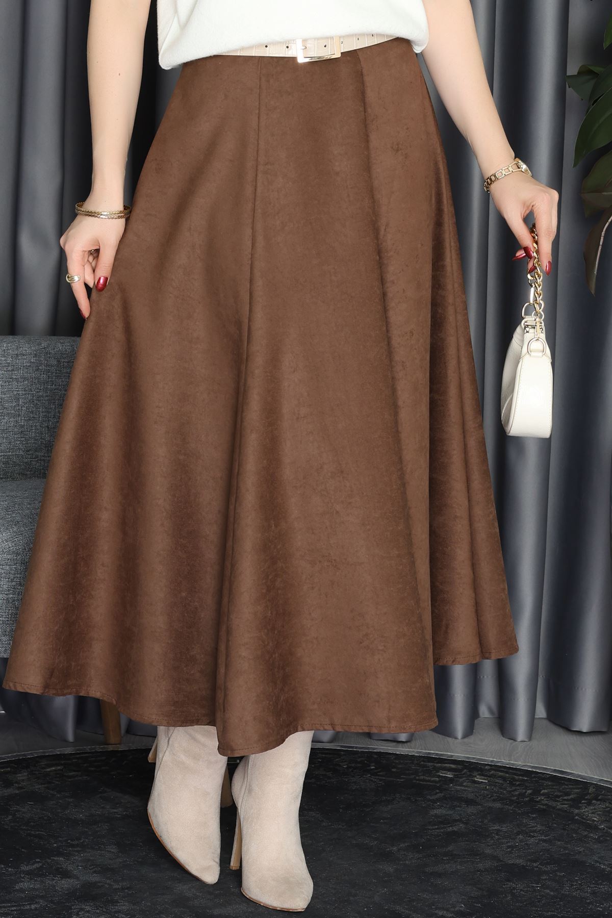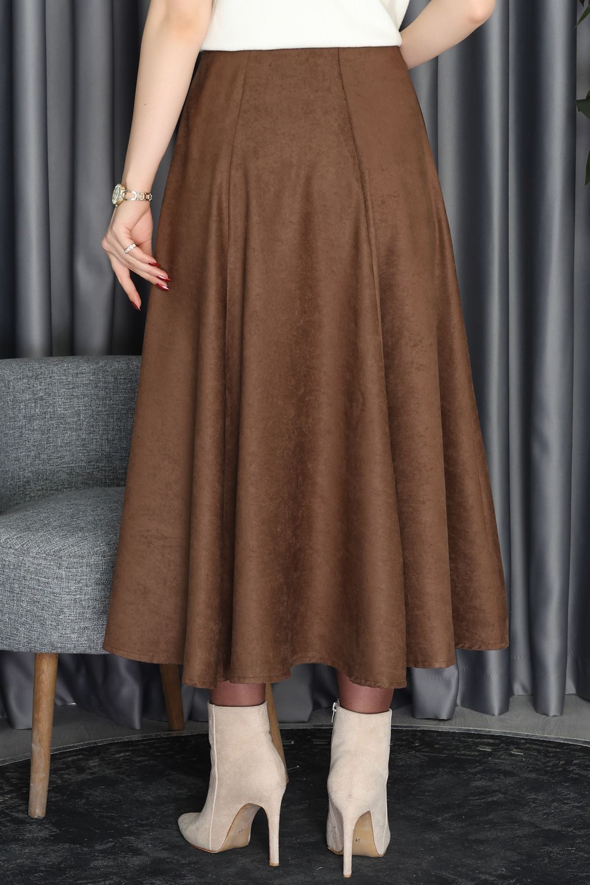 Süet Midi Etek Kahve - 70806.2092.