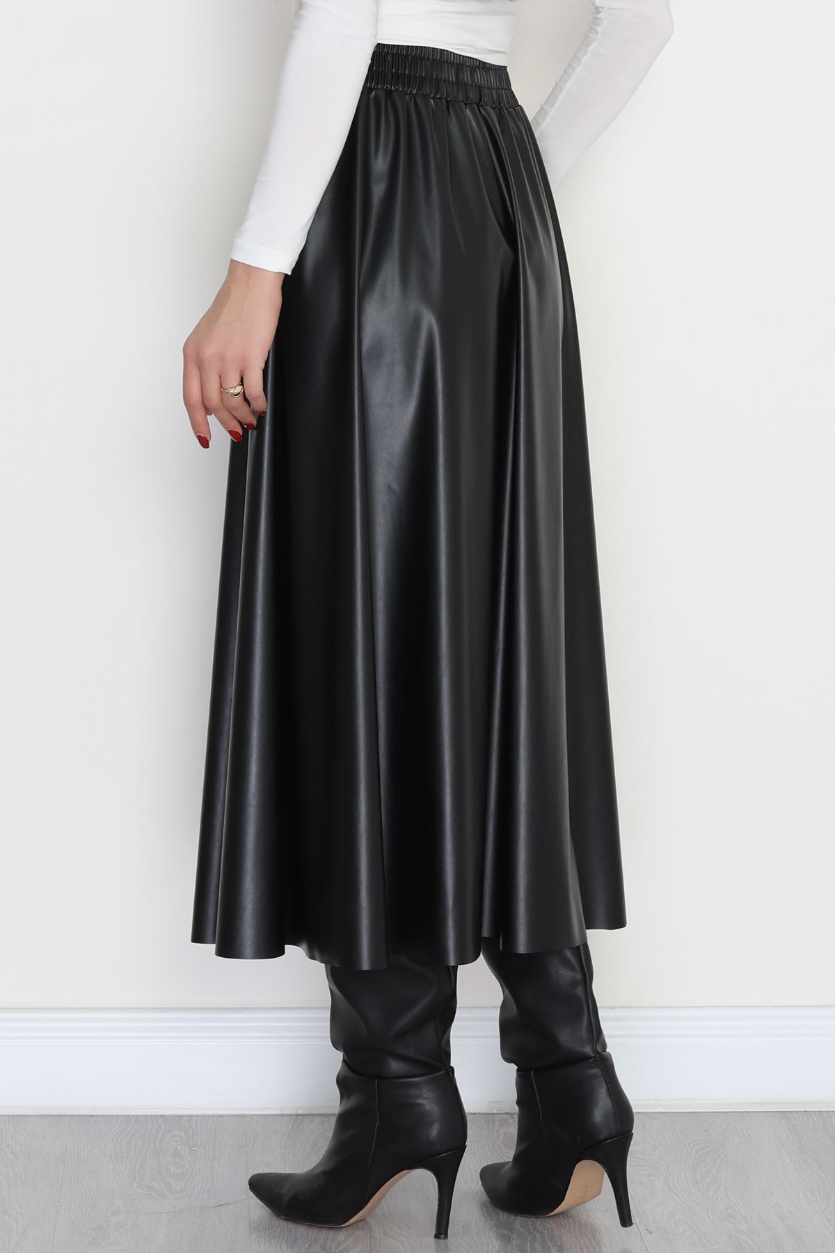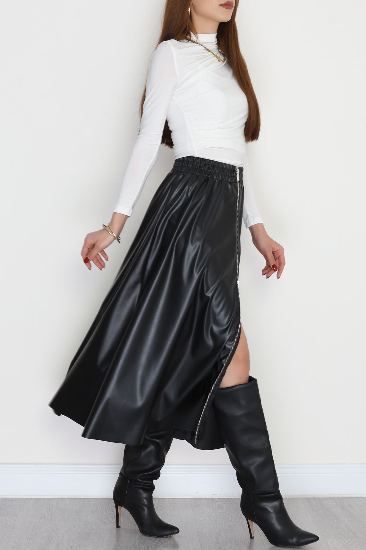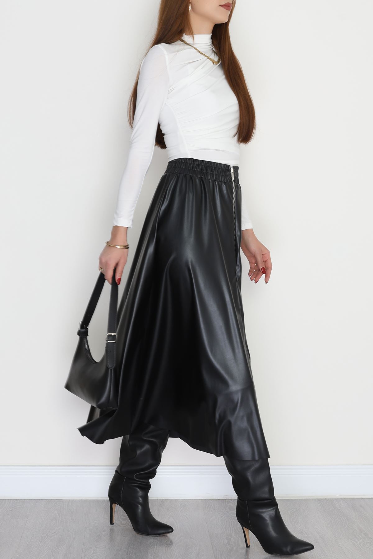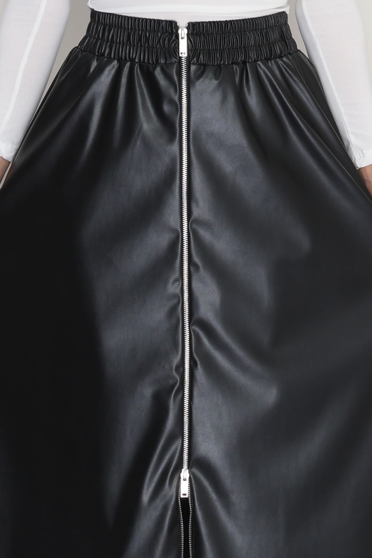 Suni Deri Önden Fermuarlı Uzun Kloş Etek Siyah - 80897.701.