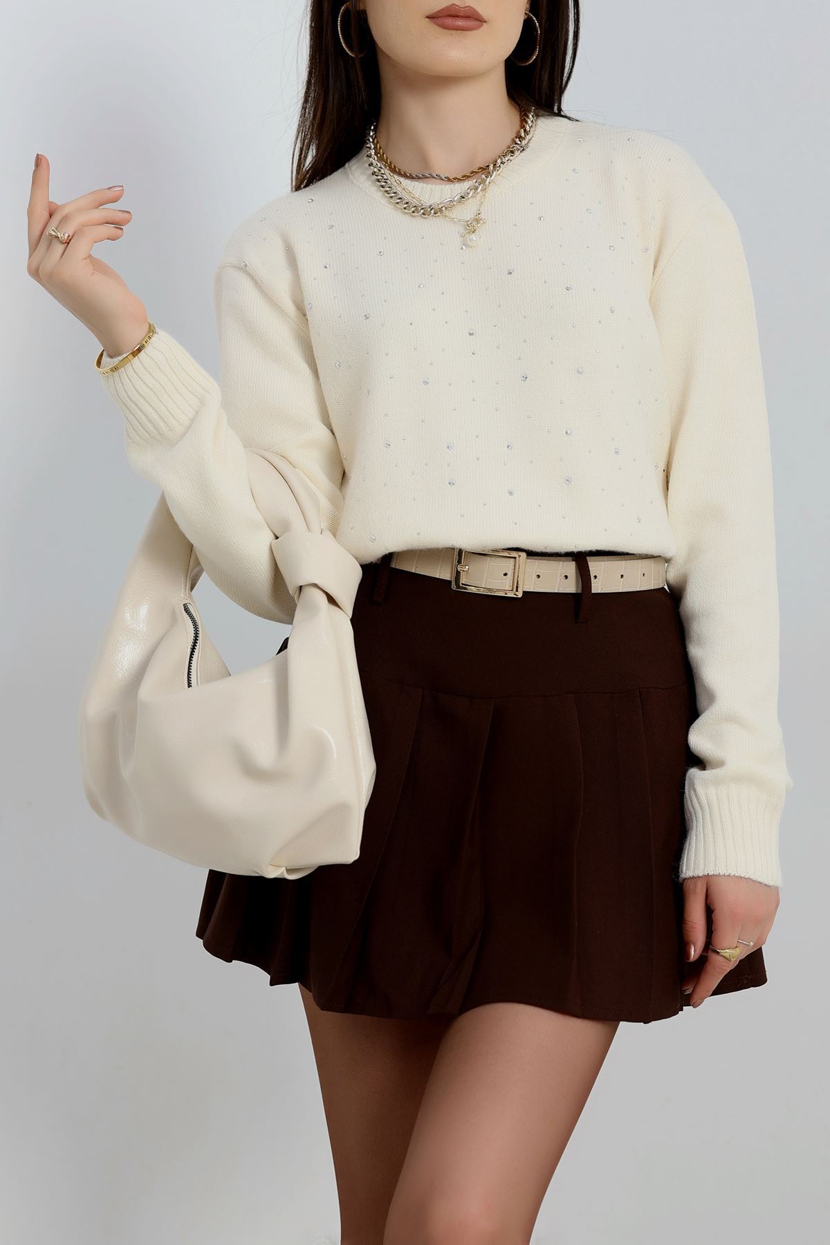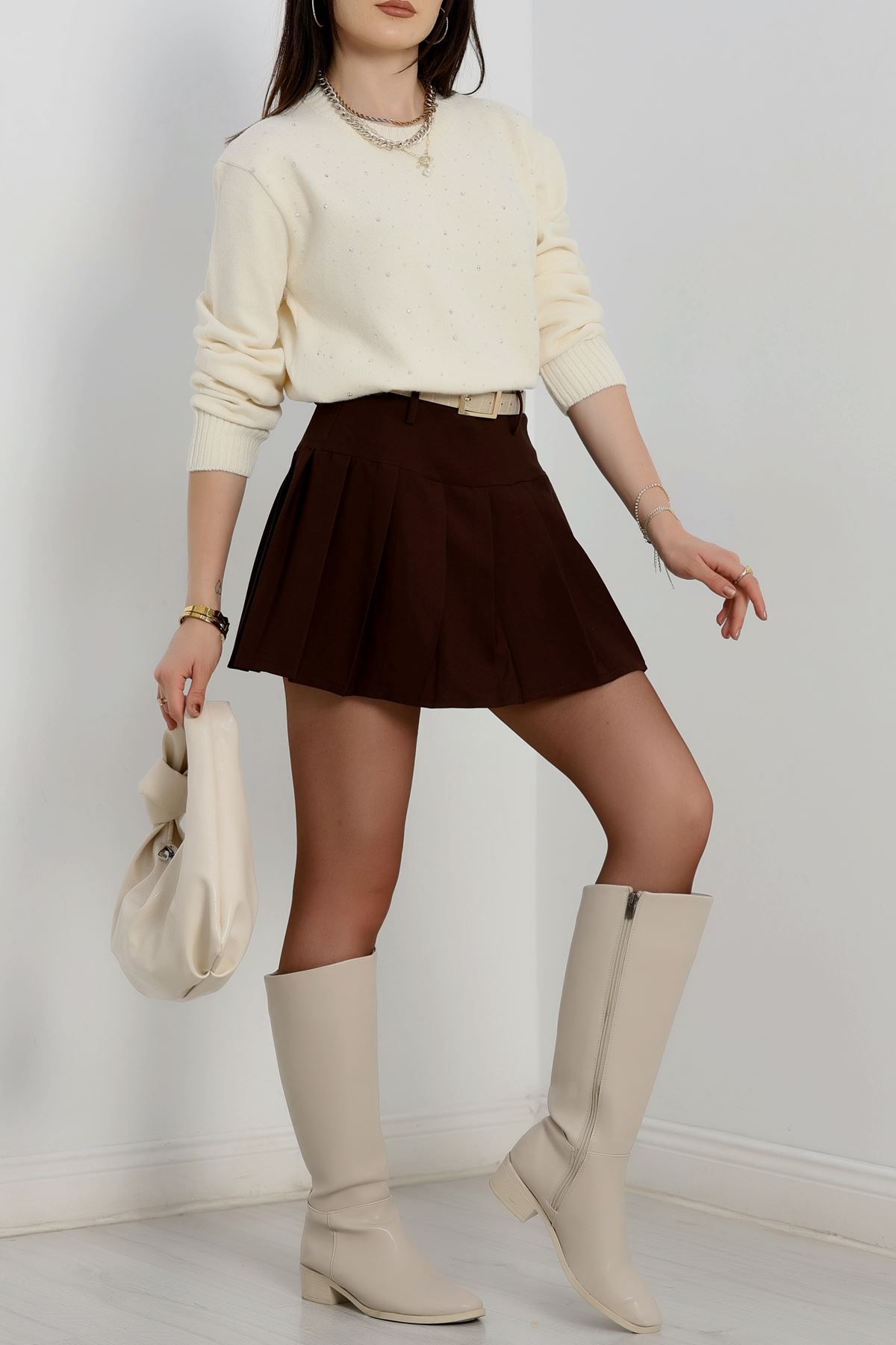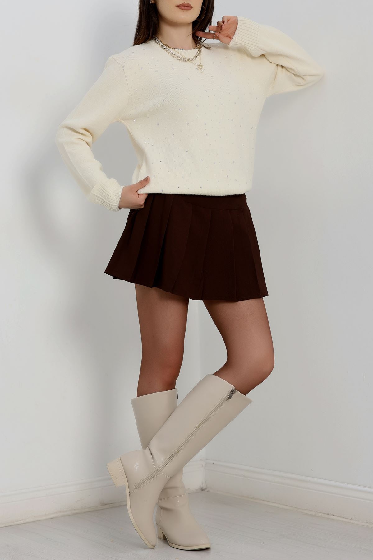 Çizgili Bisiklet Yaka Triko Mochalatte - 3099.1577.