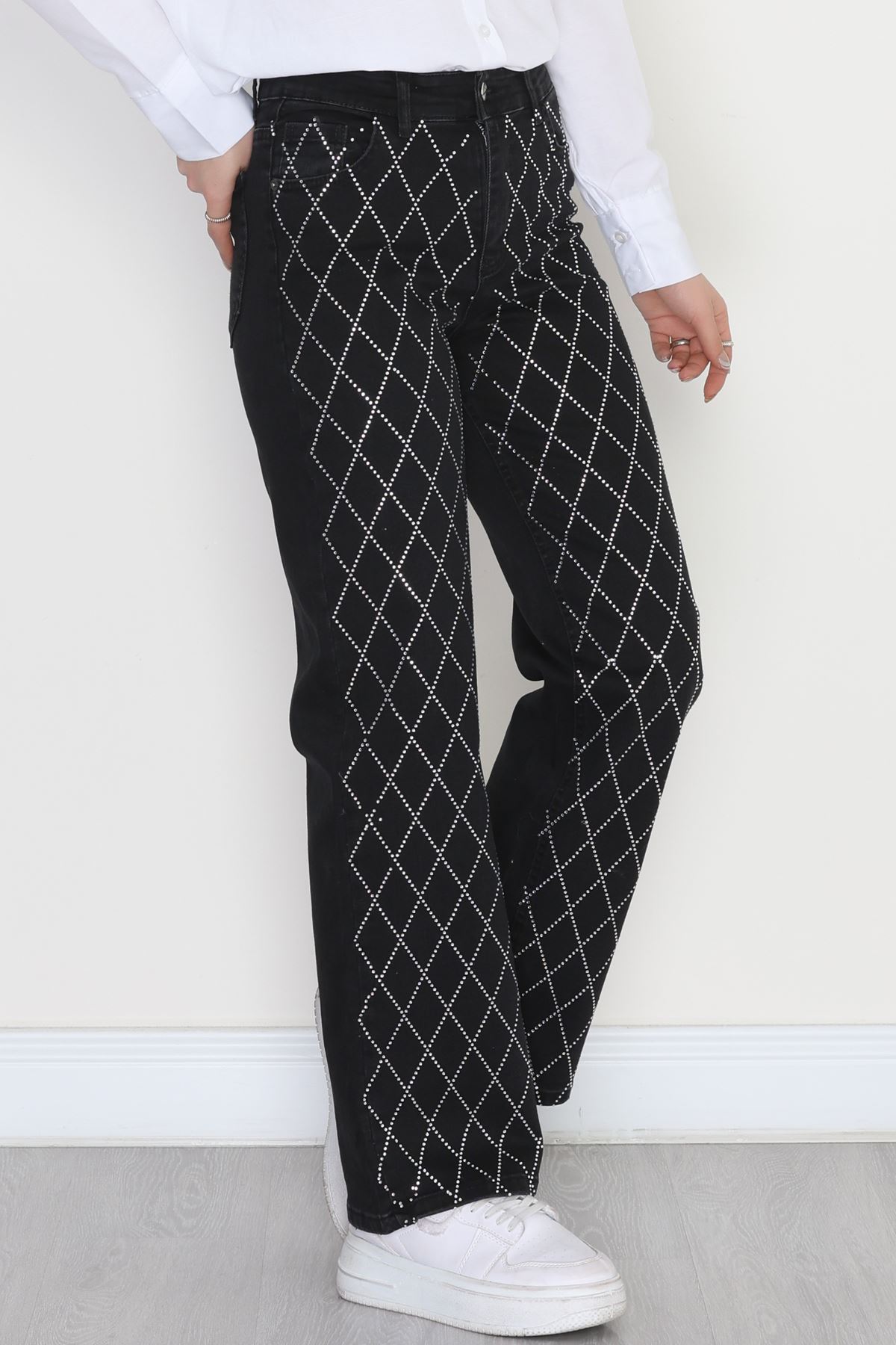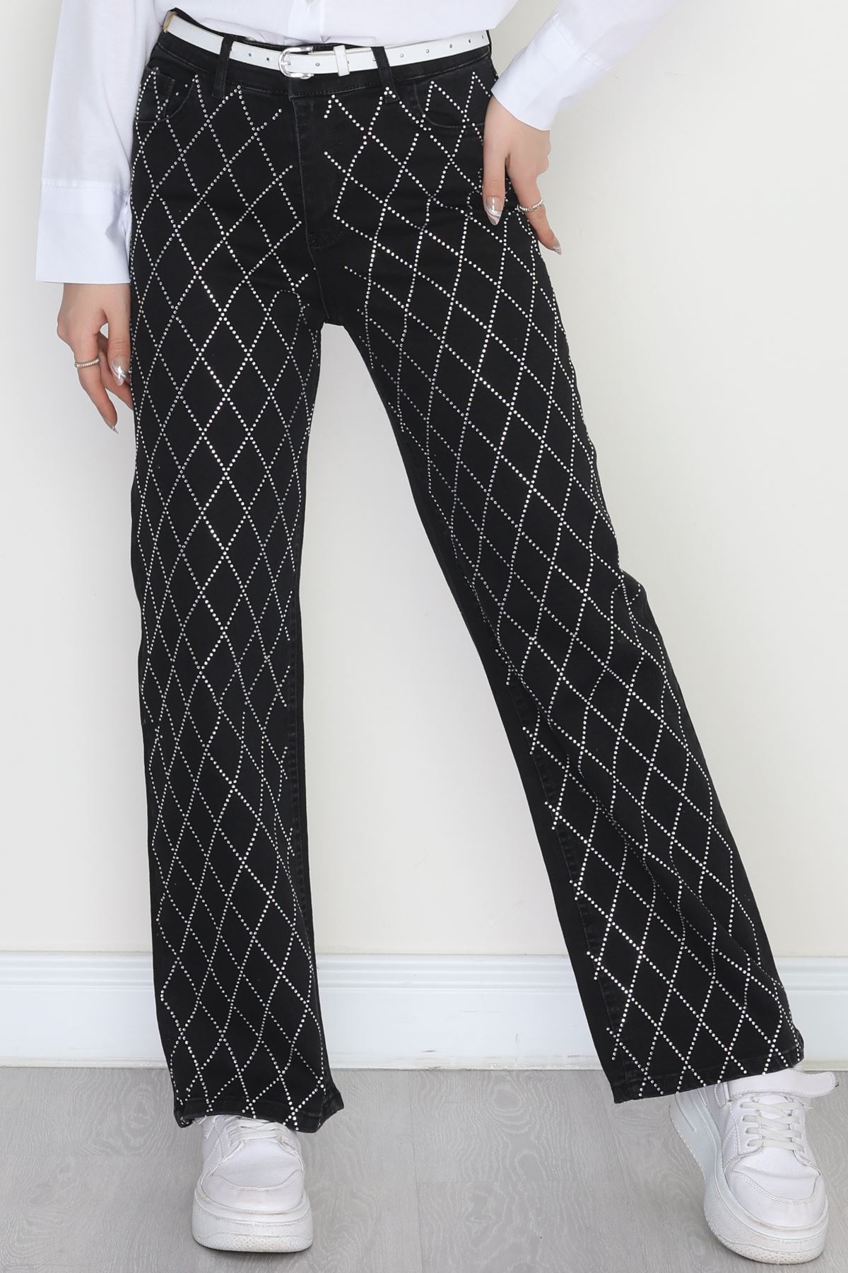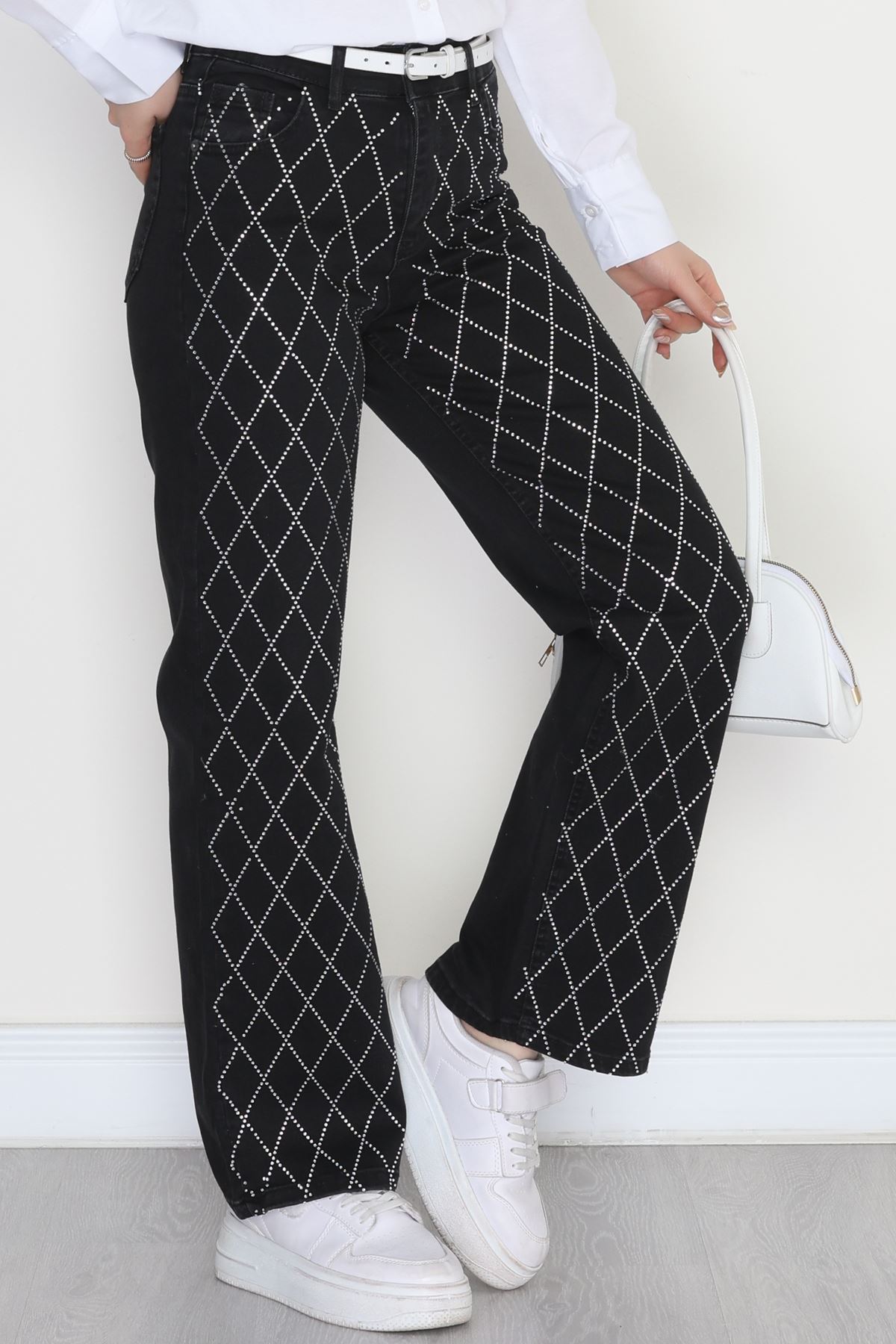 Taşlı Palazzo Kot Pantolon Füme - 31527.2001.
