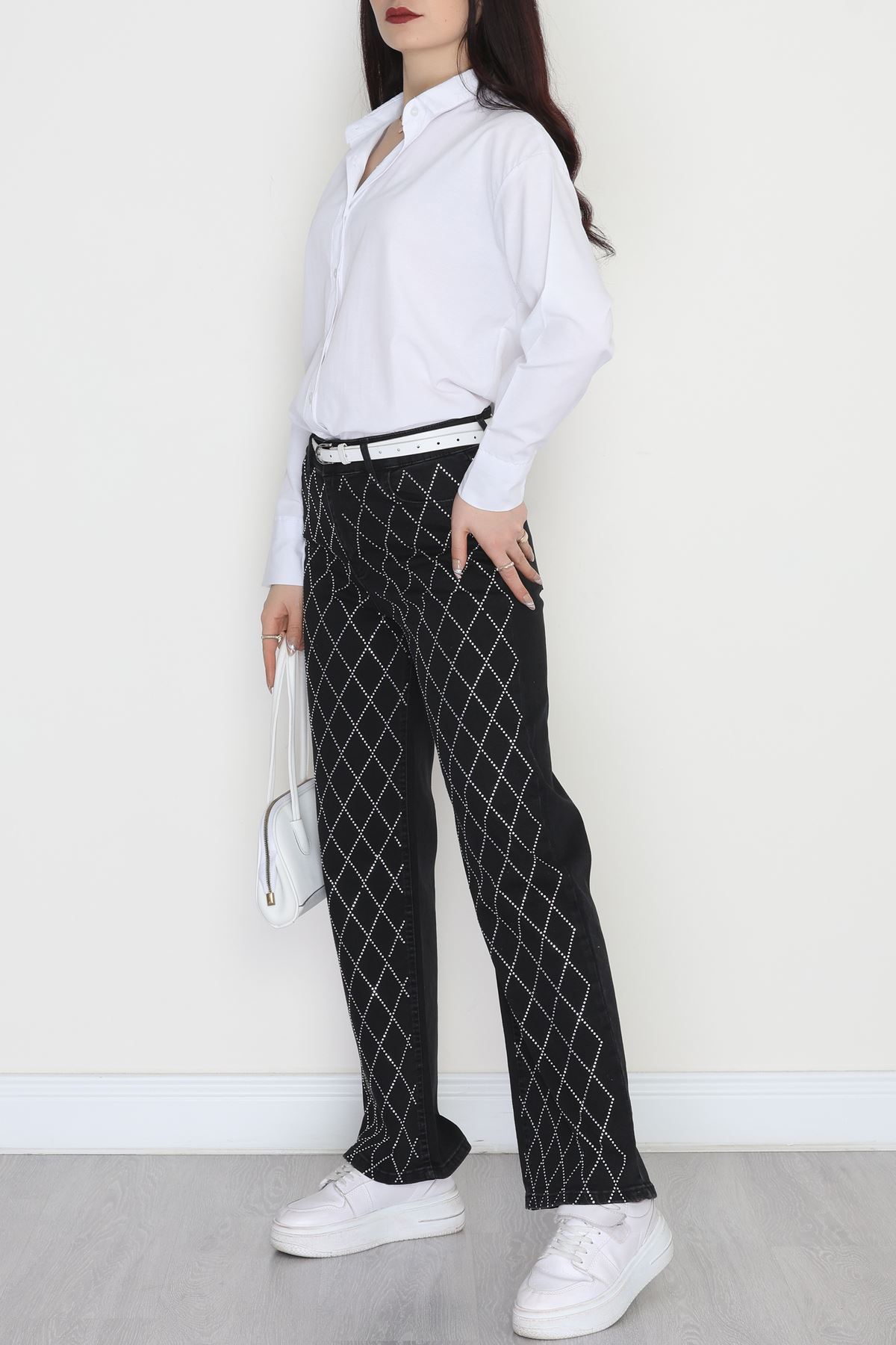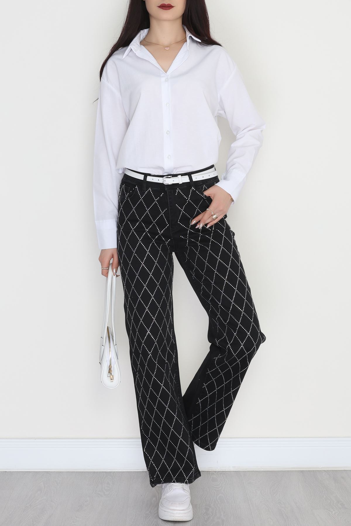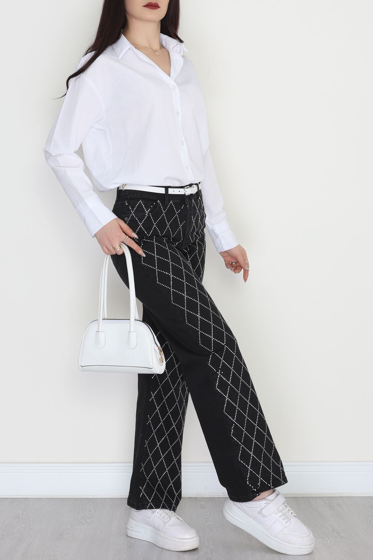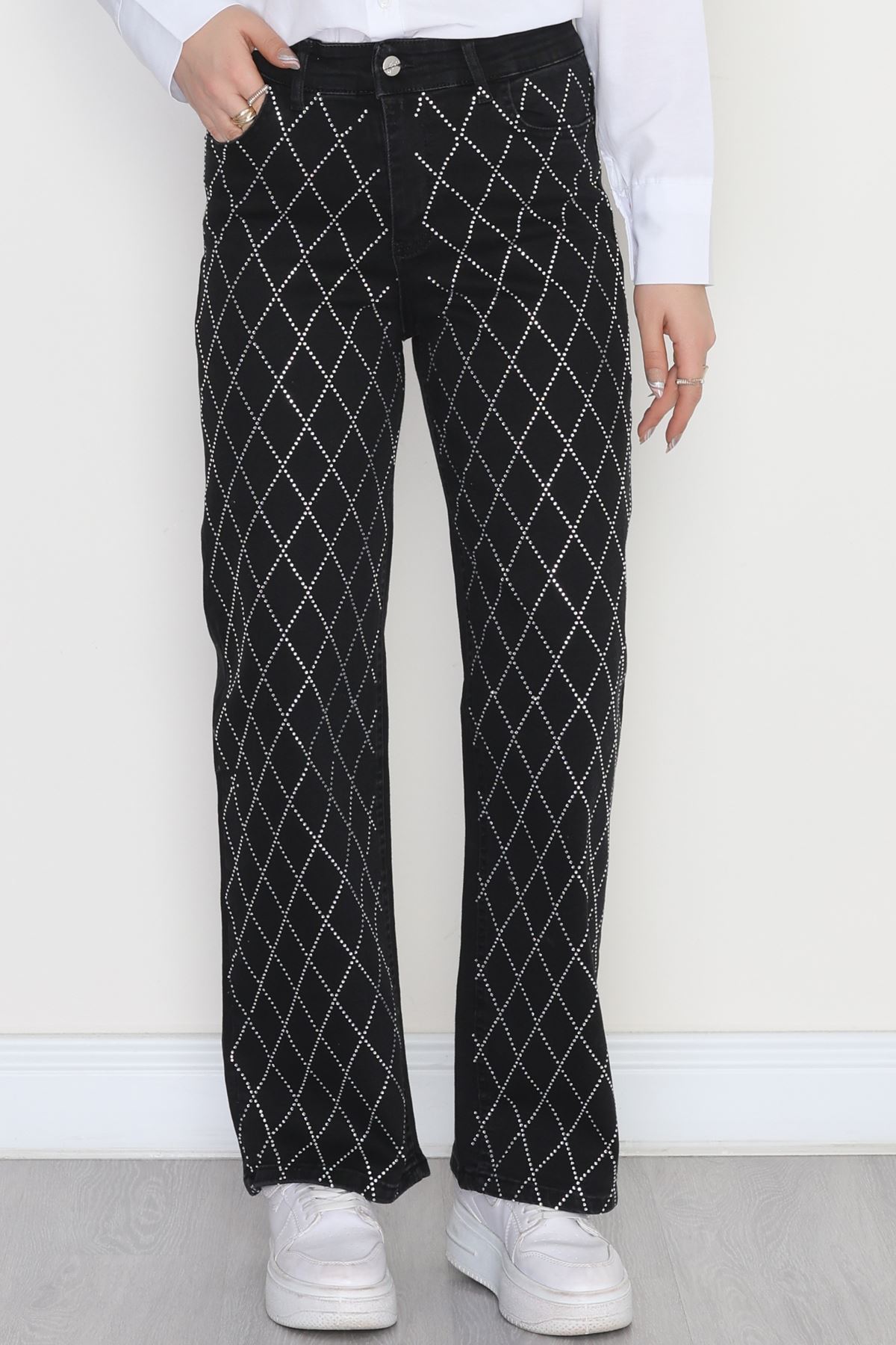 Taşlı Palazzo Kot Pantolon Füme - 31527.2001.