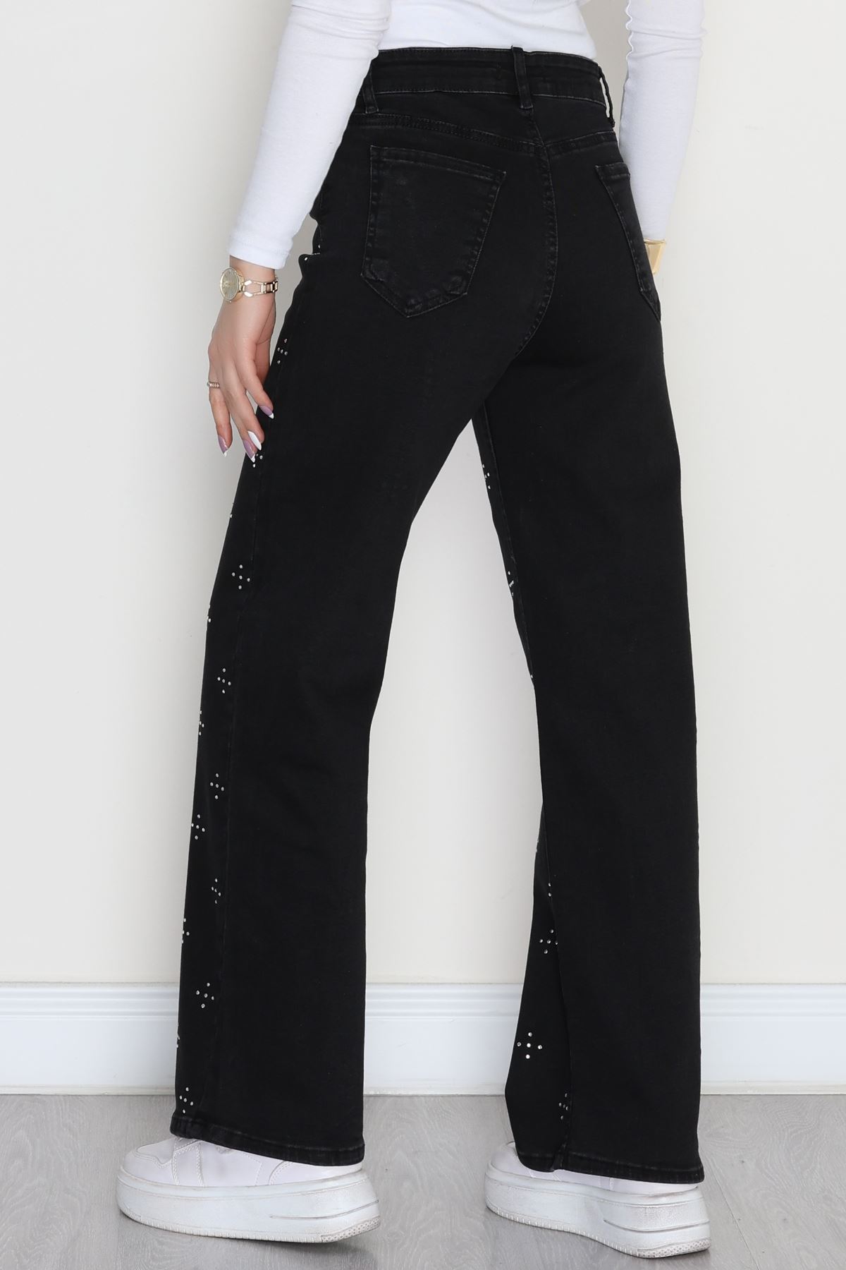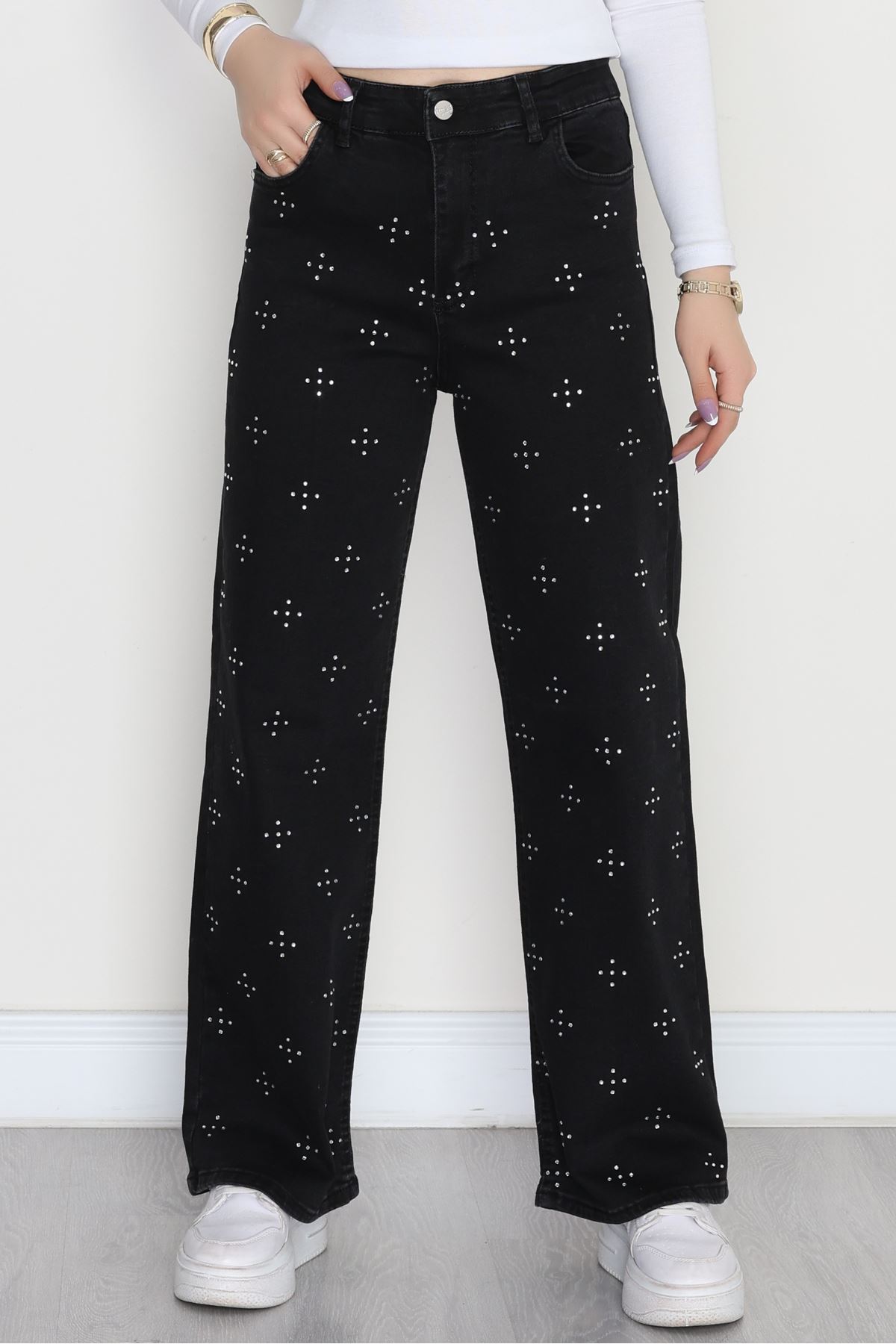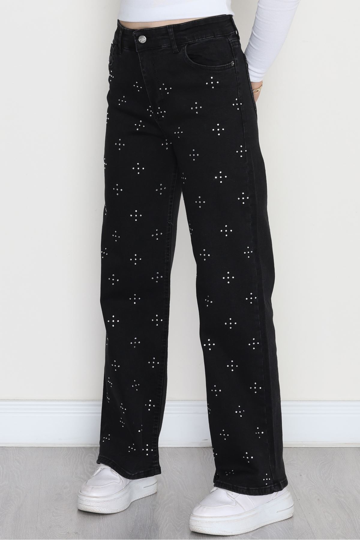 Taşlı Palazzo Kot Pantolon Füme - 31527.2001.