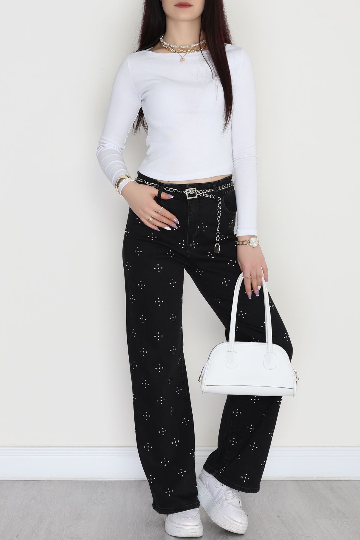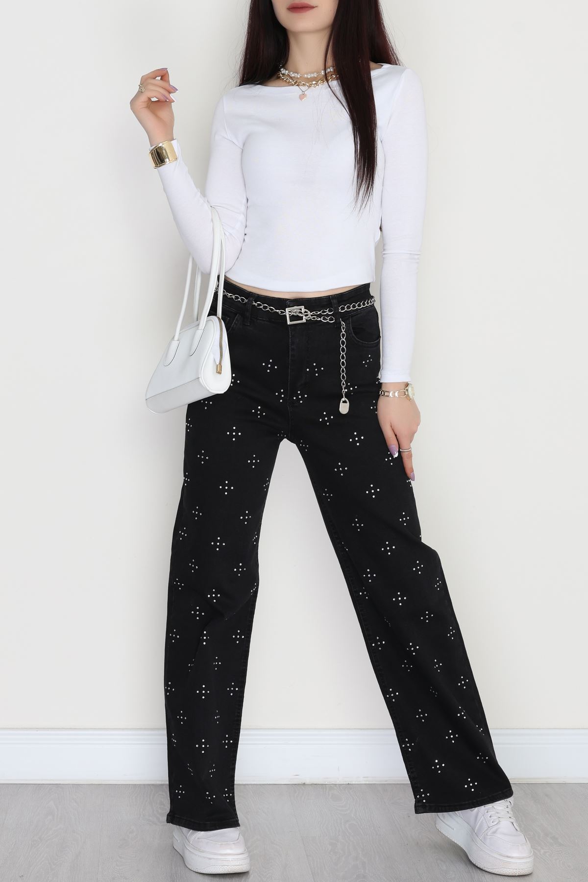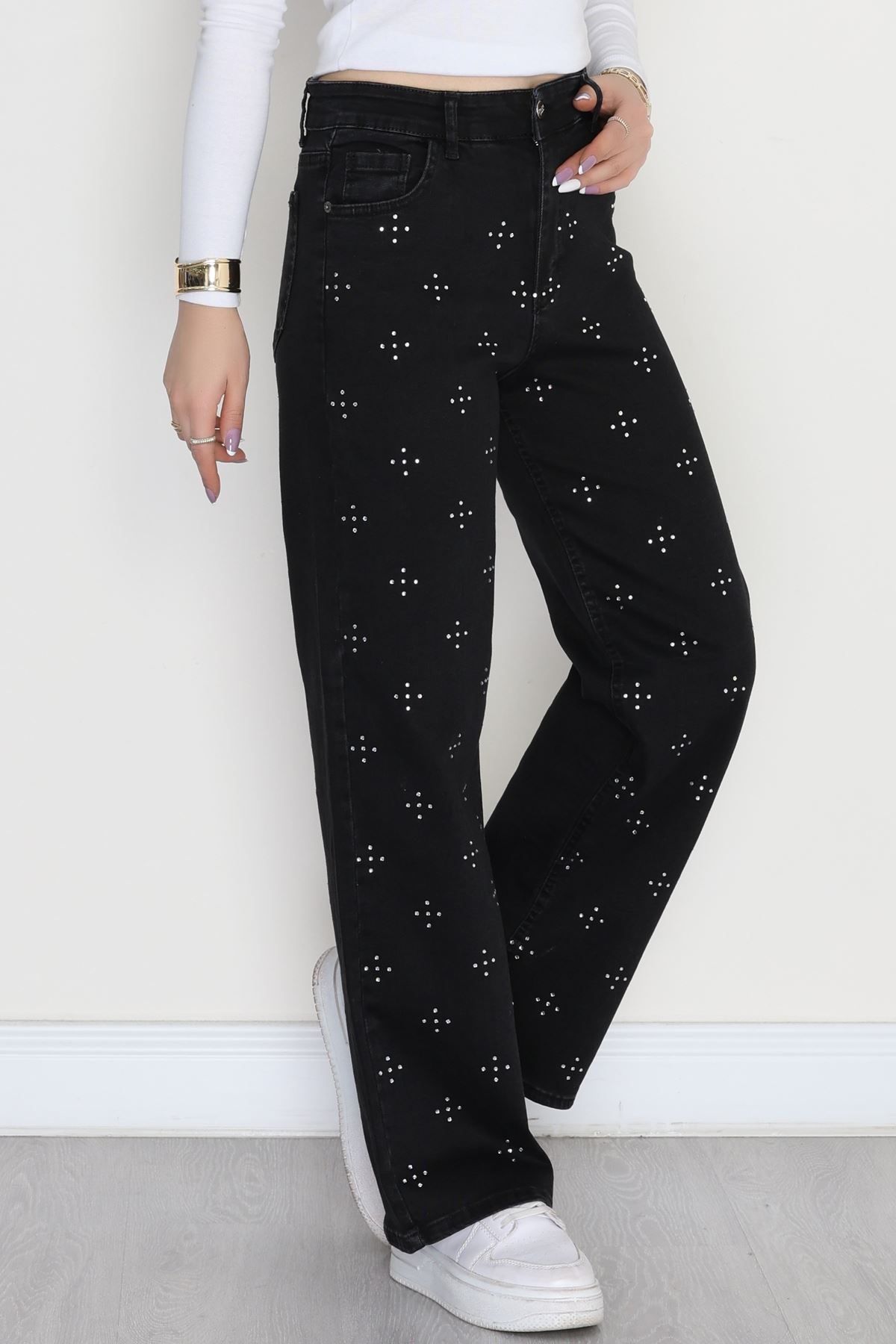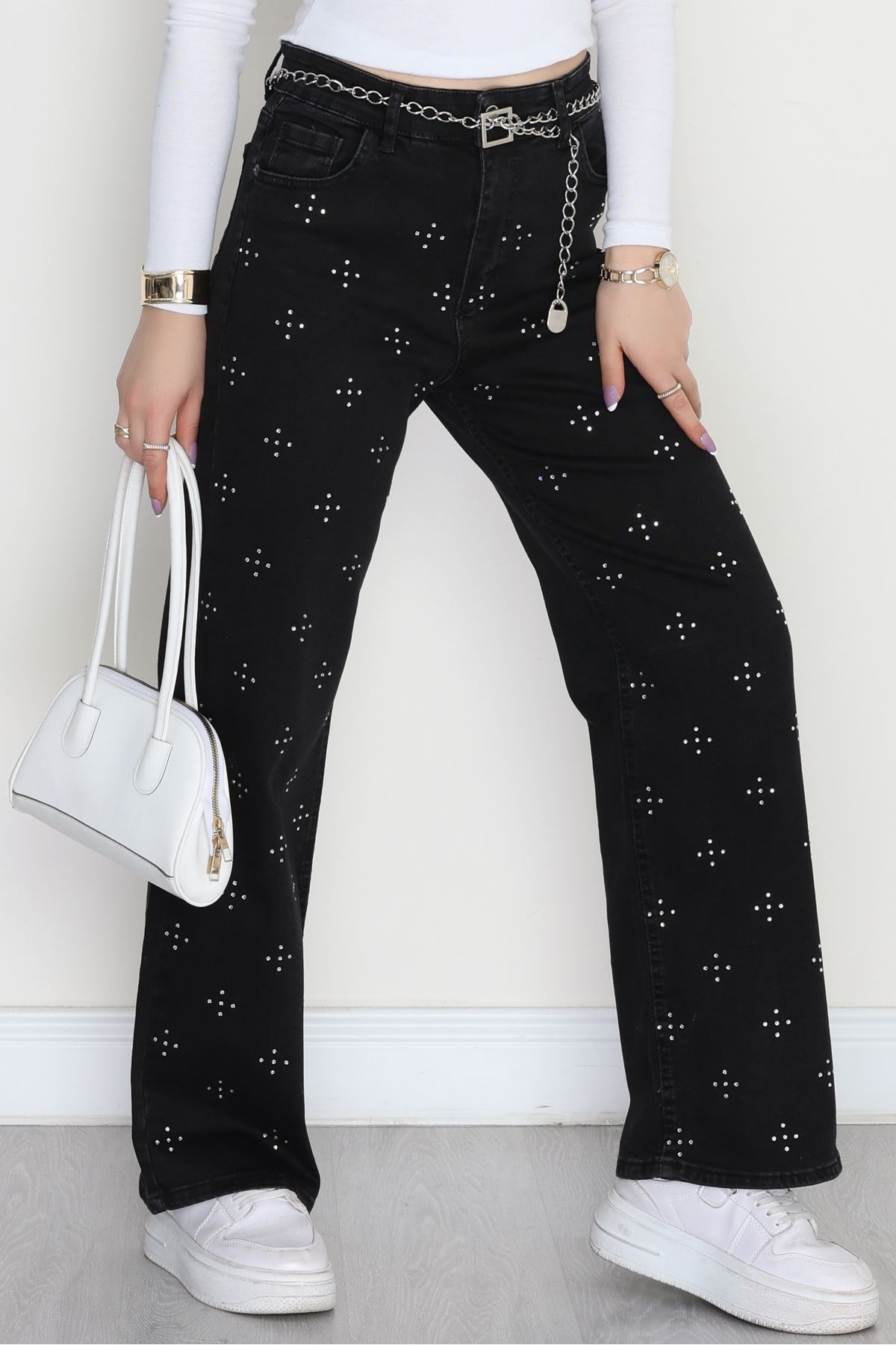 Taşlı Palazzo Kot Pantolon Füme - 31527.2001.