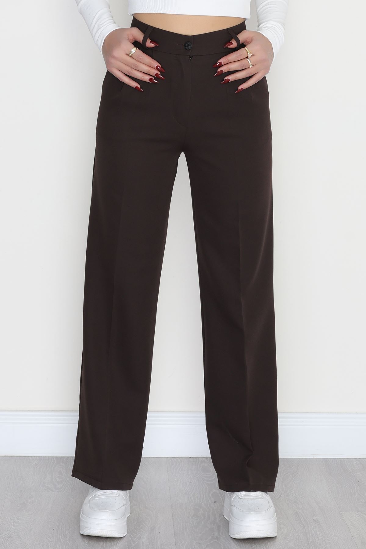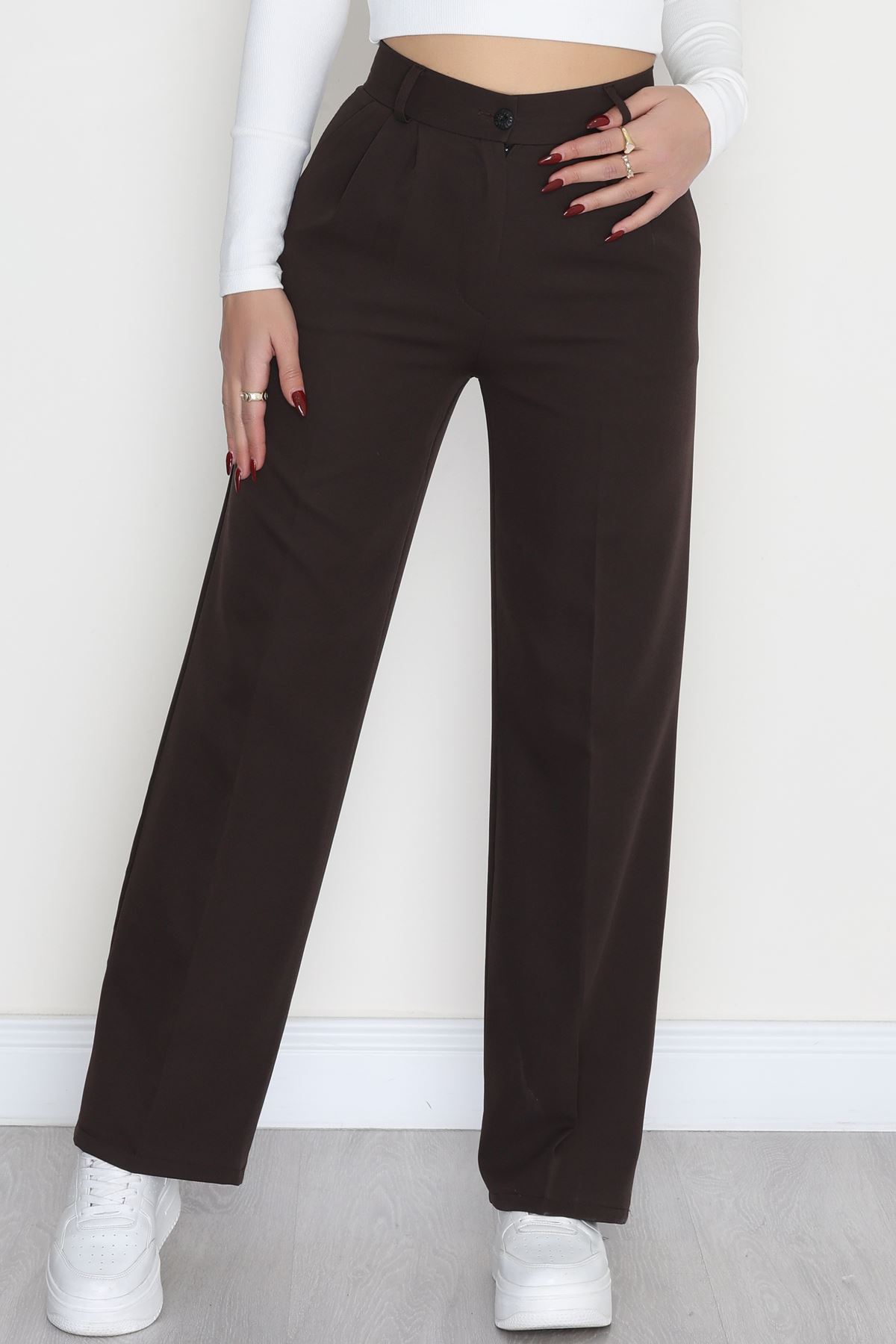 Tek Düğme Palazzo Pantolon Koyukahve - 90022.1397.