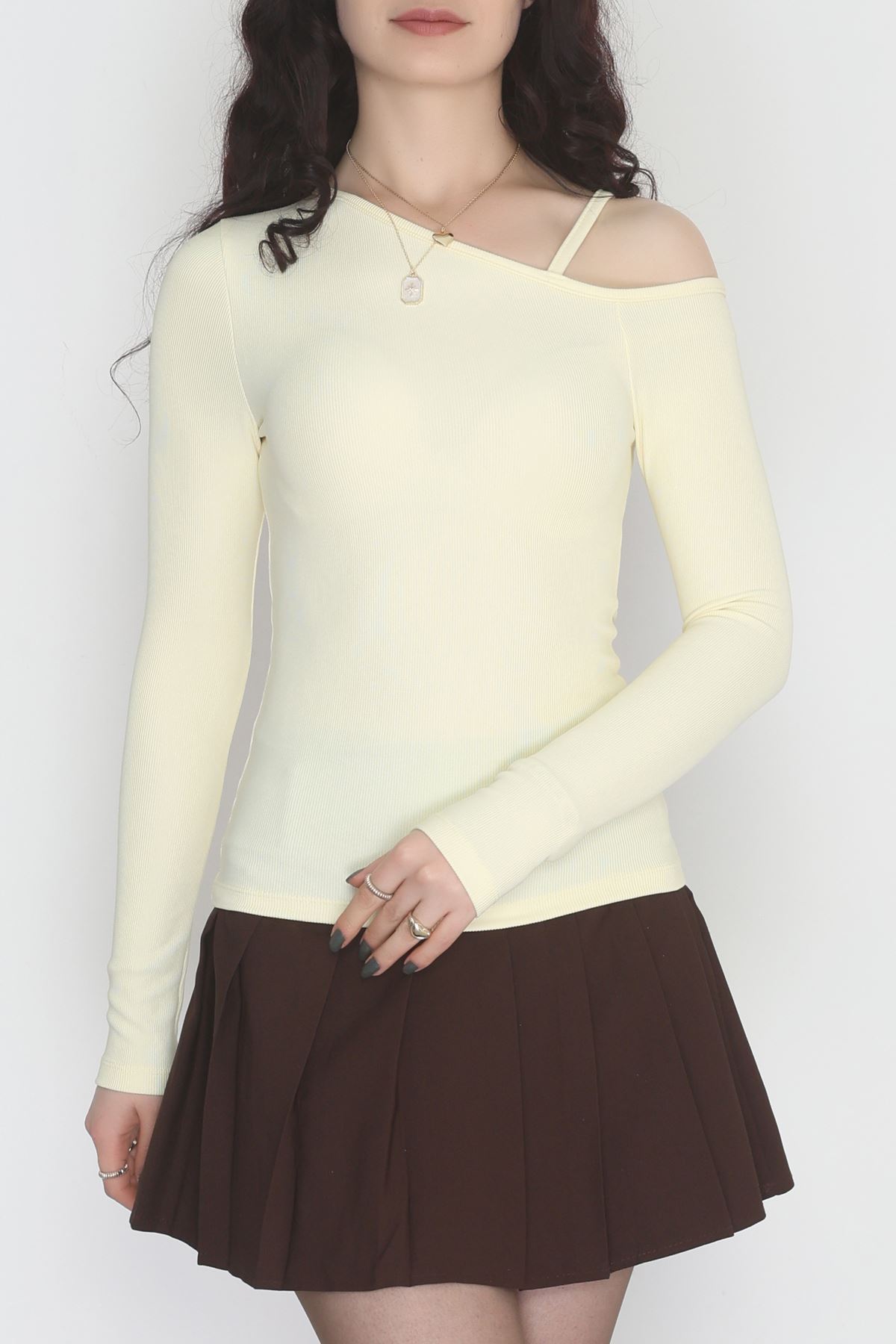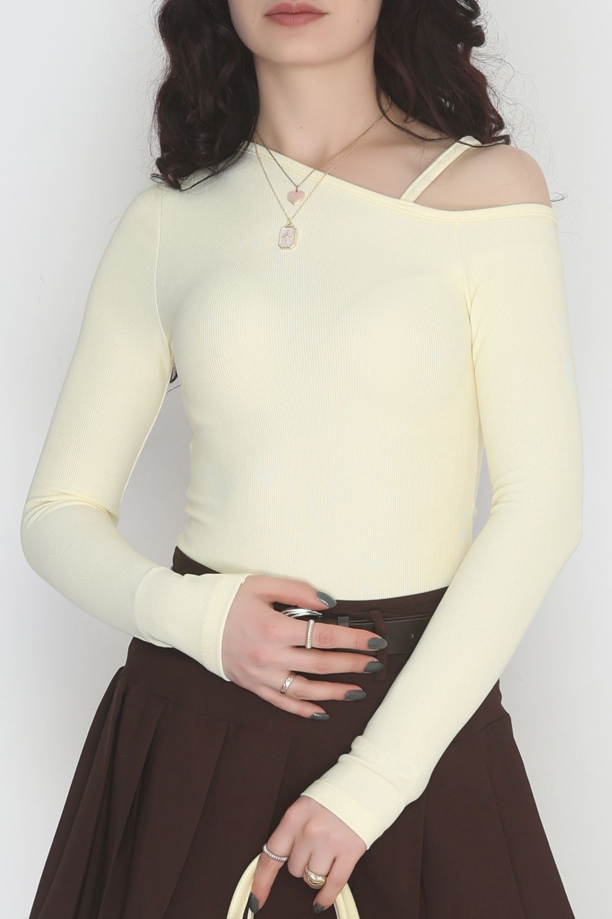 Tek Omuz İp Detaylı Bluz Sarı - 4328.1595.