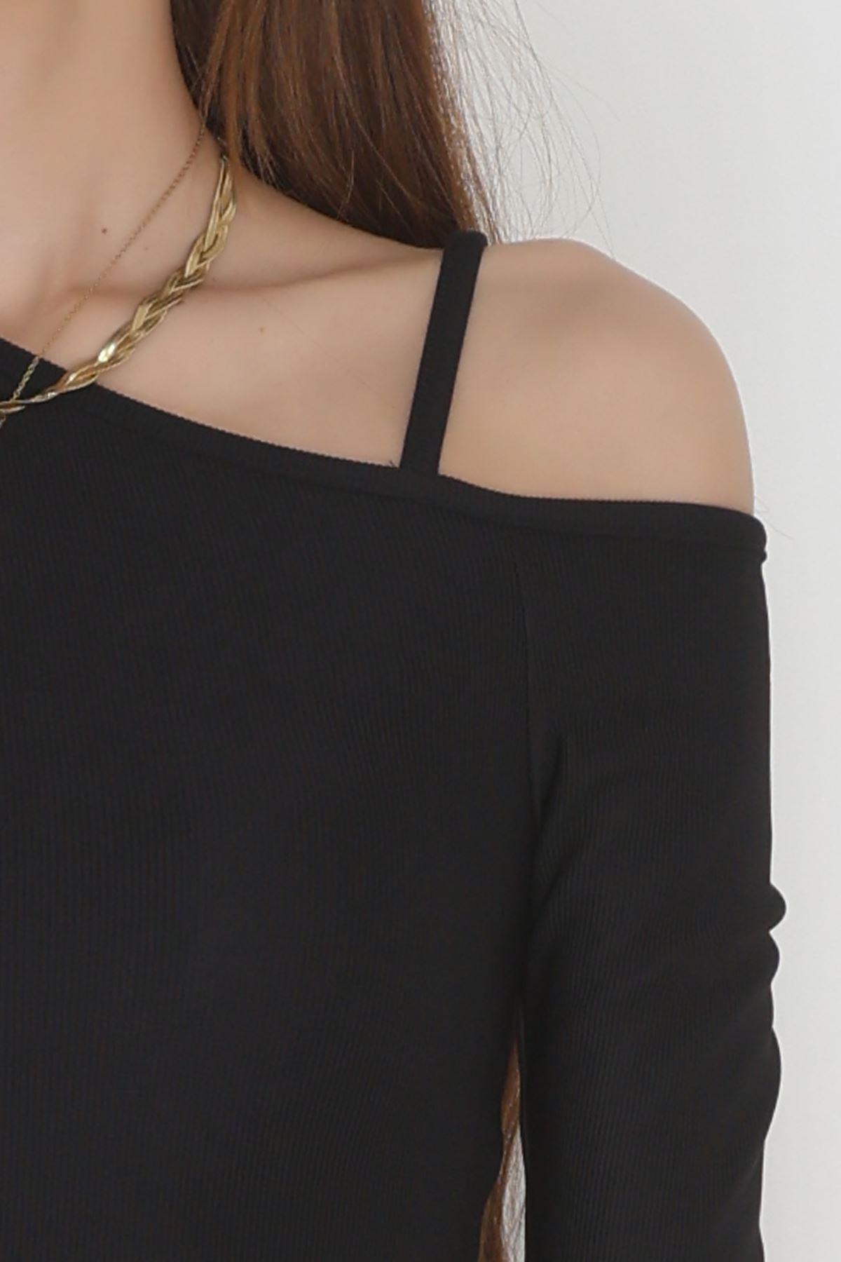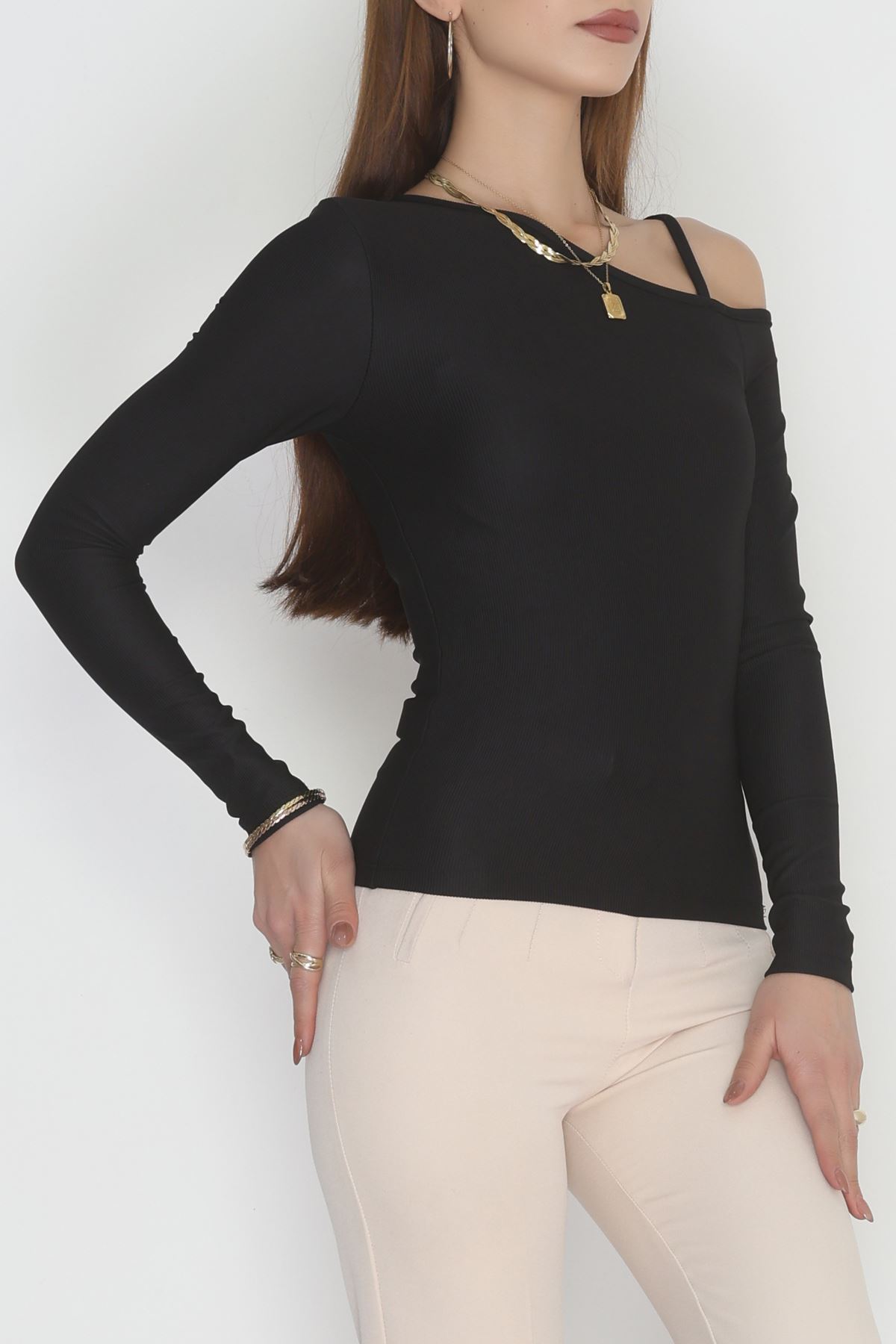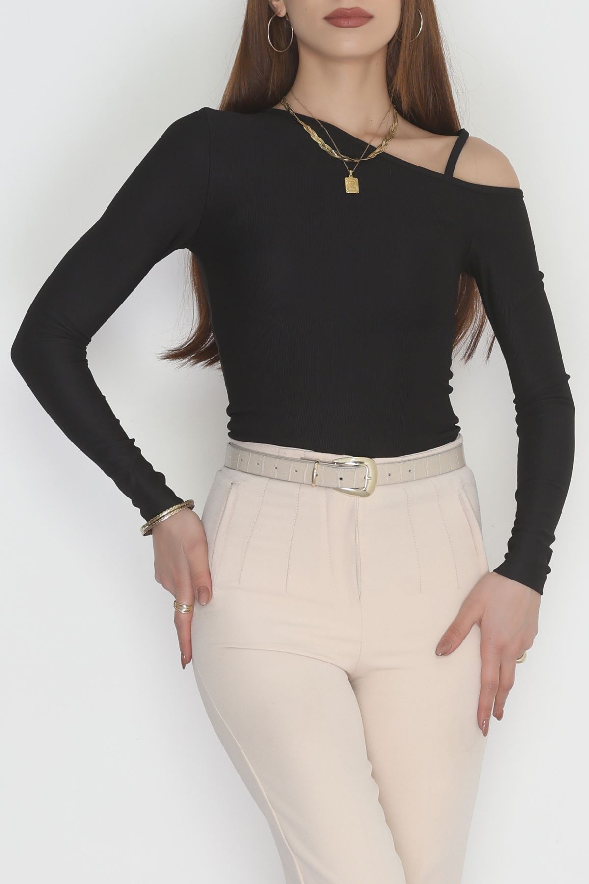 Tek Omuz İp Detaylı Bluz Siyah - 4328.1595.