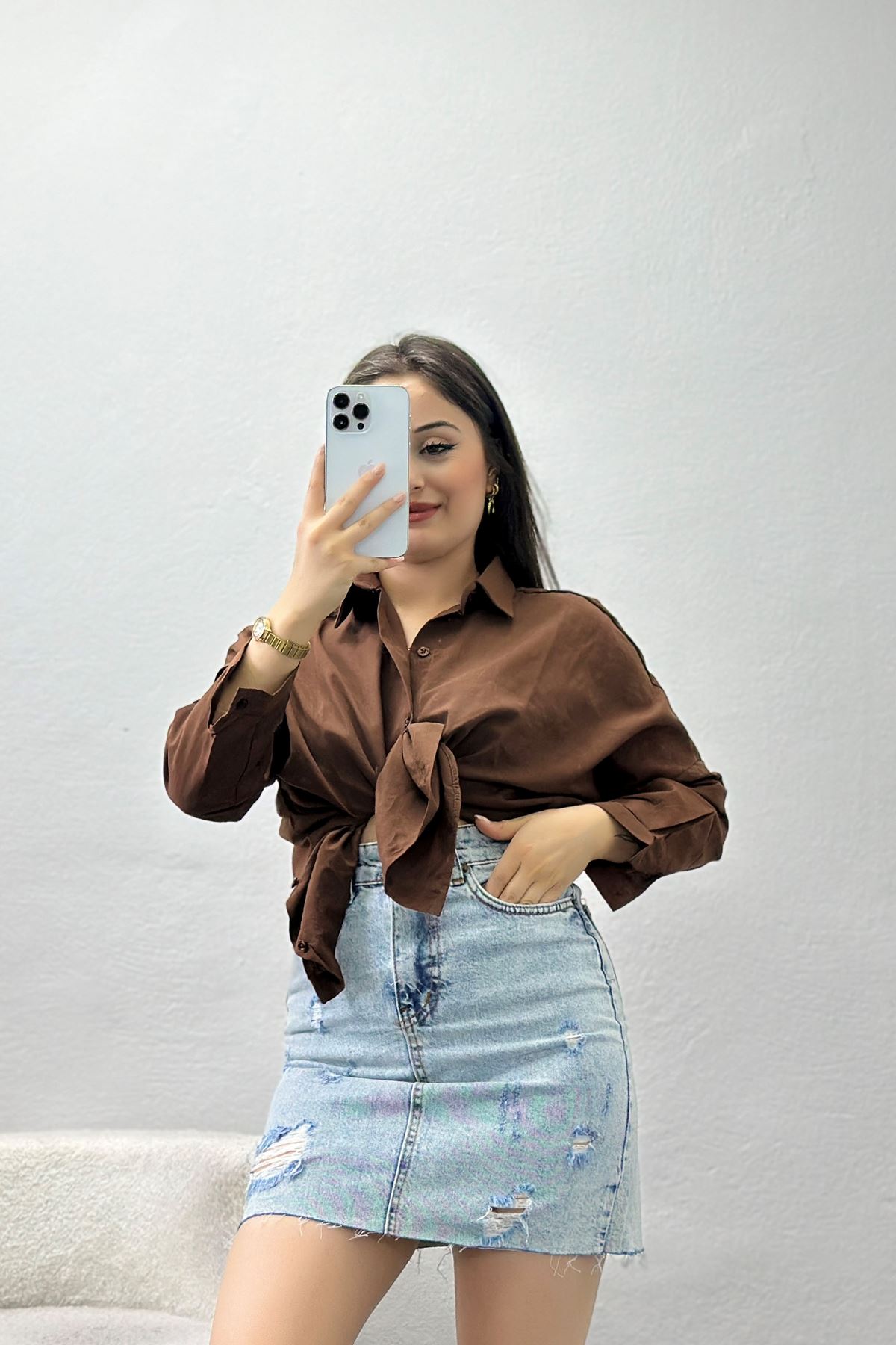 Terikoton Oversize Gömlek Kahve - 30840.1949.