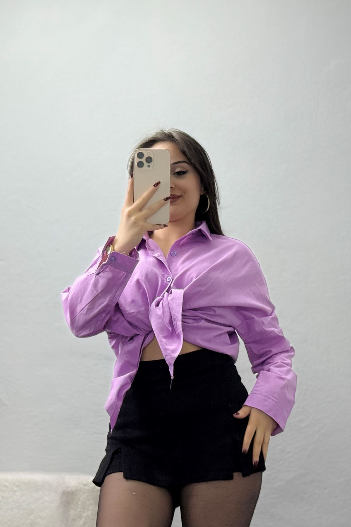 Terikoton Oversize Gömlek Lila - 30840.1949.