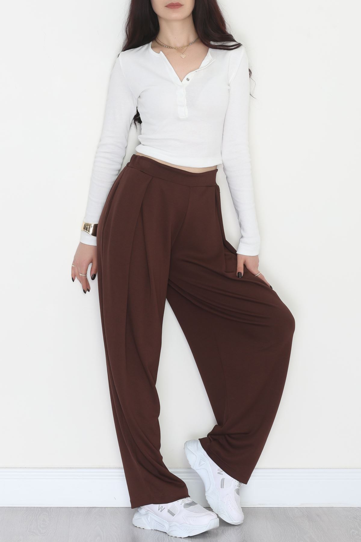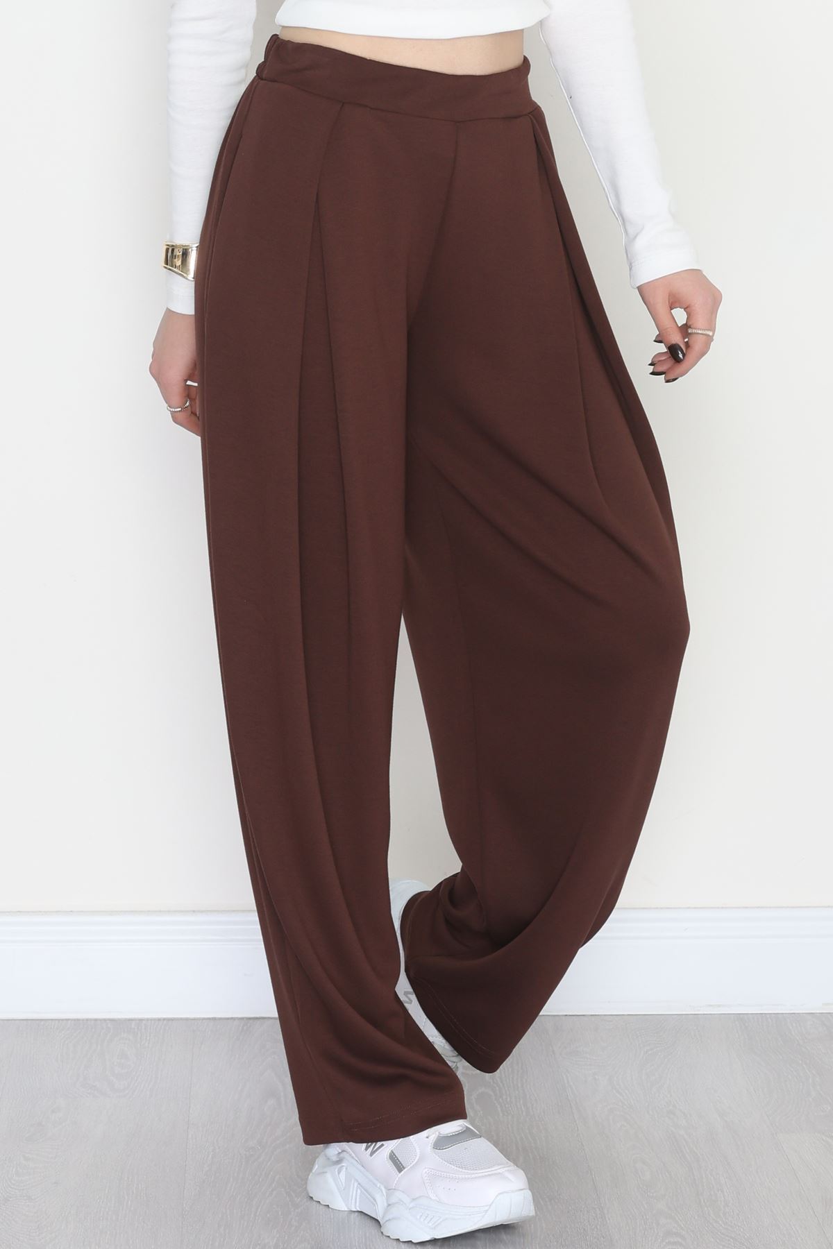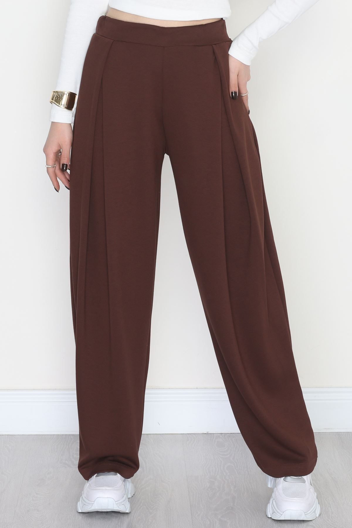 Dabıl Kumaş Pileli Palazzo Pantolon Kahve - 51062.1991.
