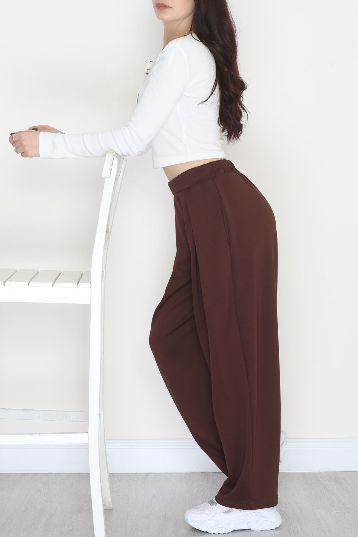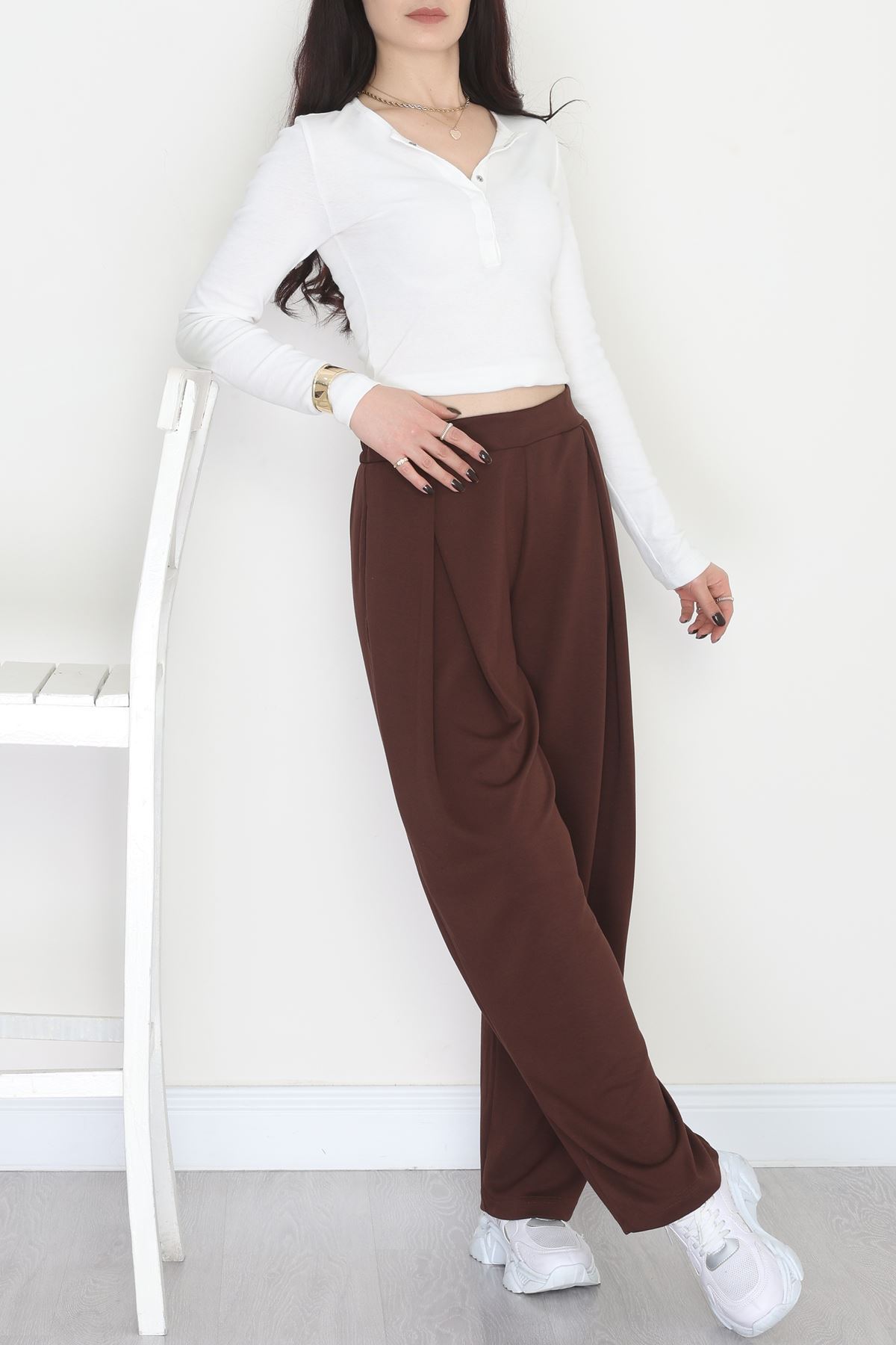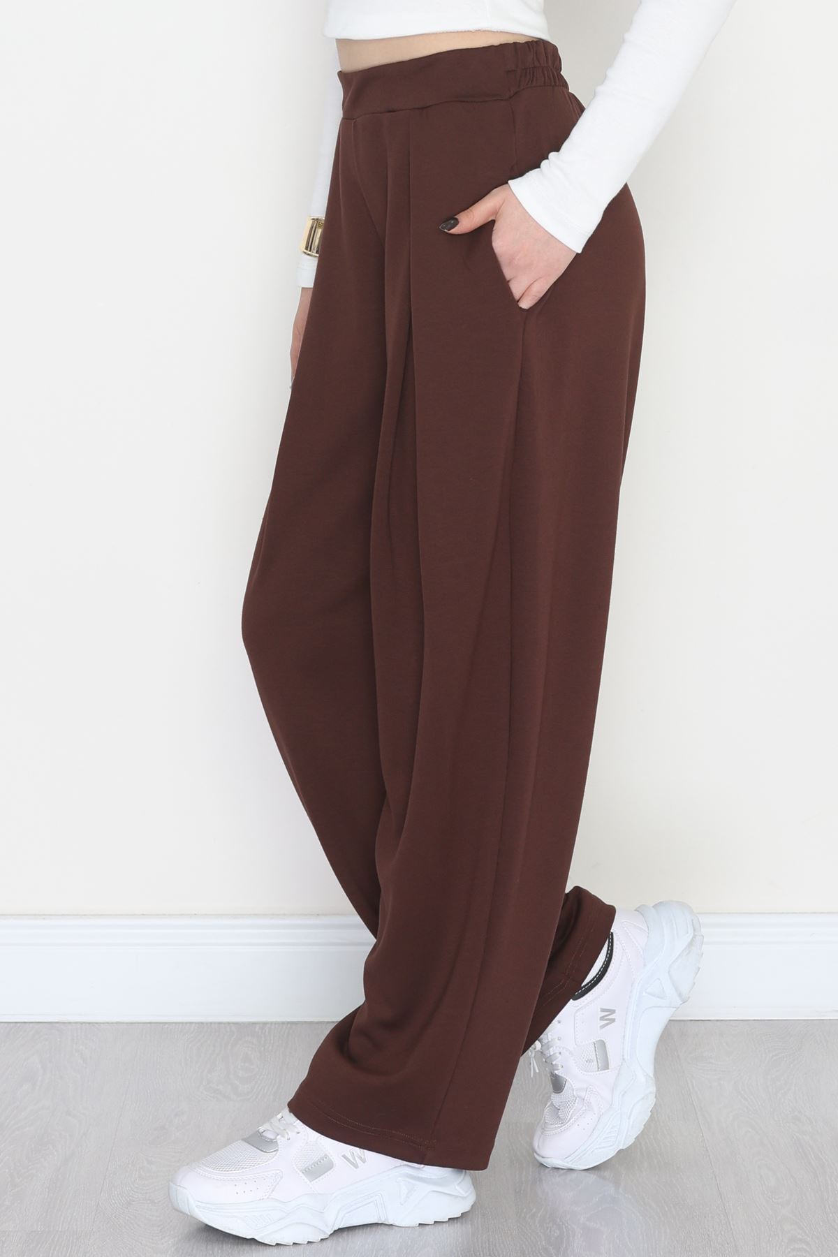 Dabıl Kumaş Pileli Palazzo Pantolon Kahve - 51062.1991.