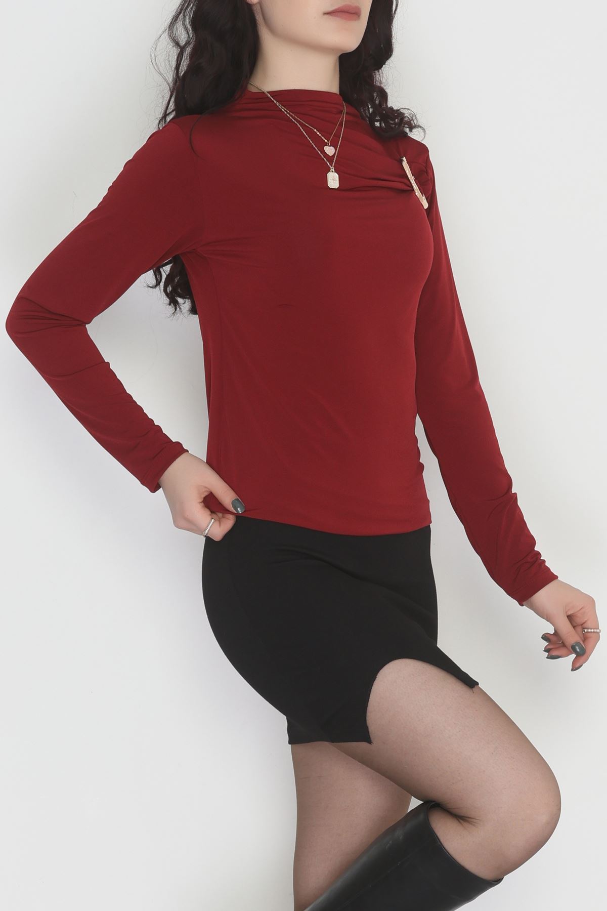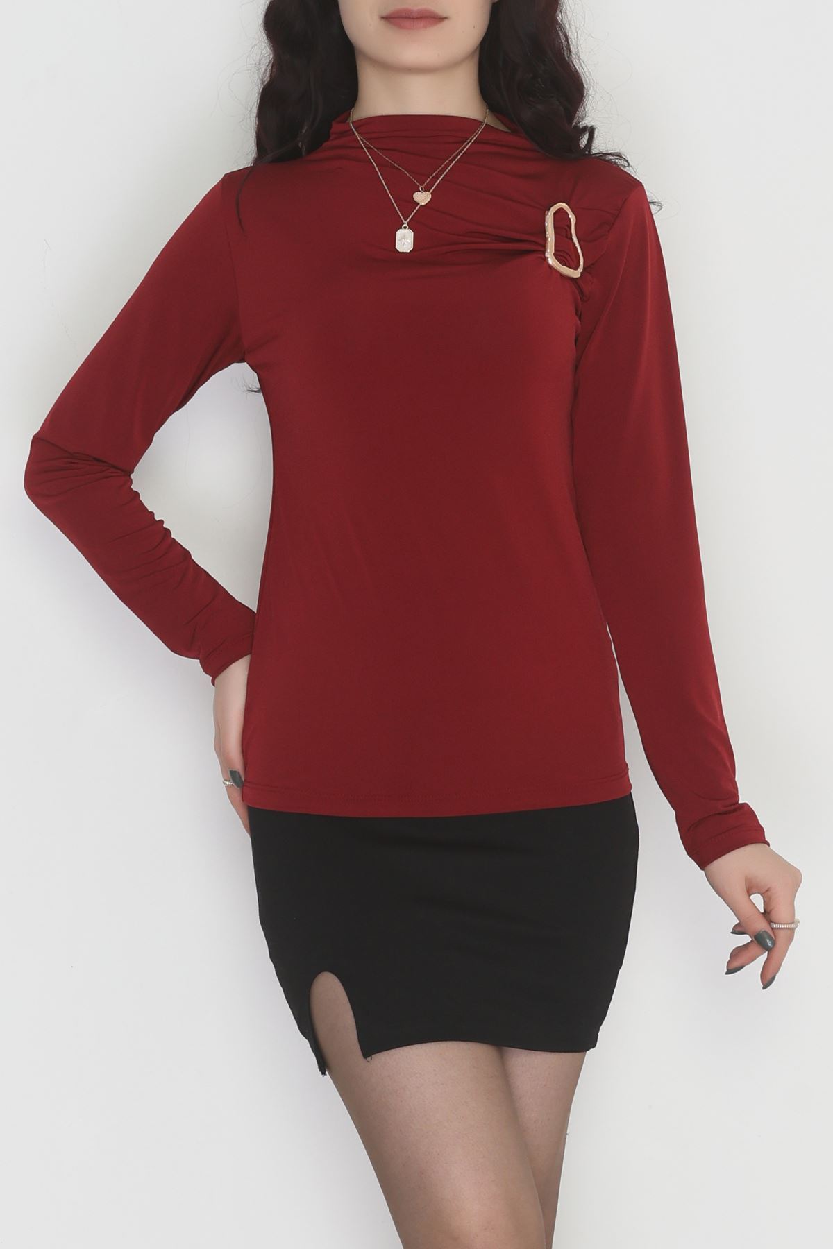 Toka Detaylı Sandy Bluz Bordo - 42666.1949.