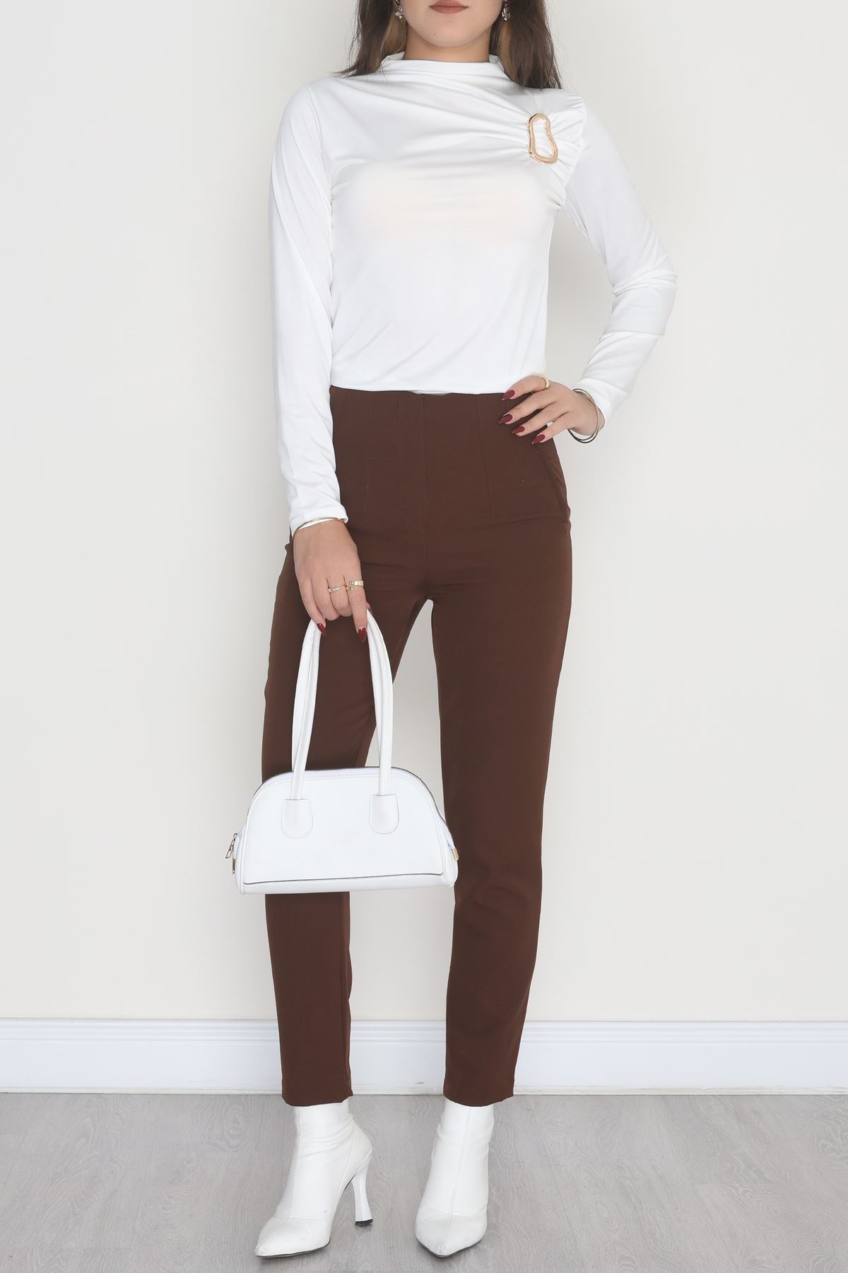 Önü Arkası U Yaka Basic Bluz Kahve - 42676.1247.