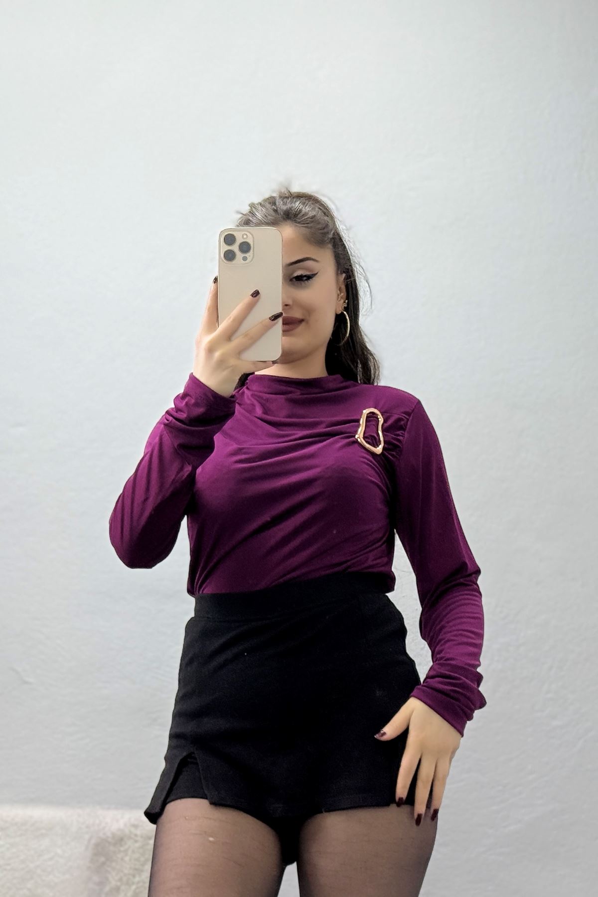Toka Detaylı Sandy Bluz Mürdüm - 42666.1949.