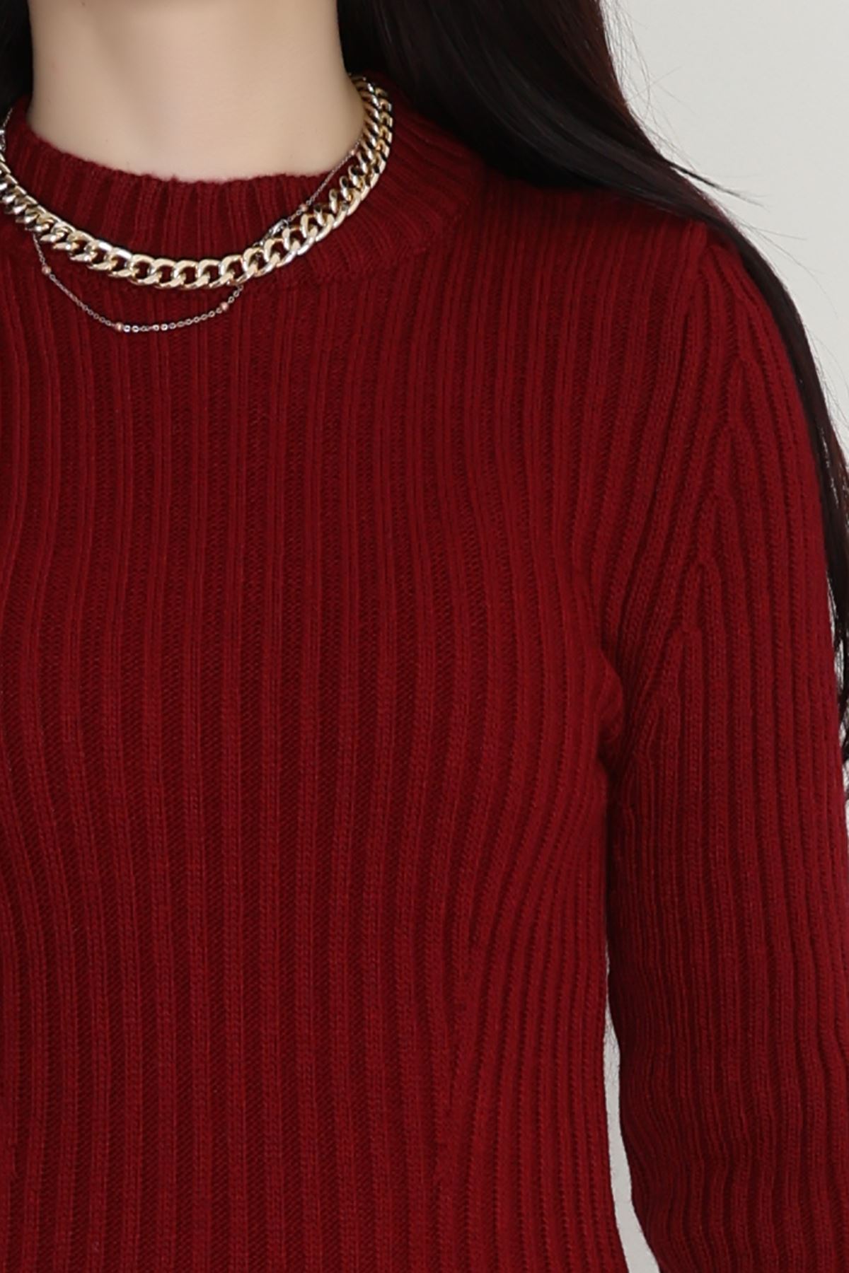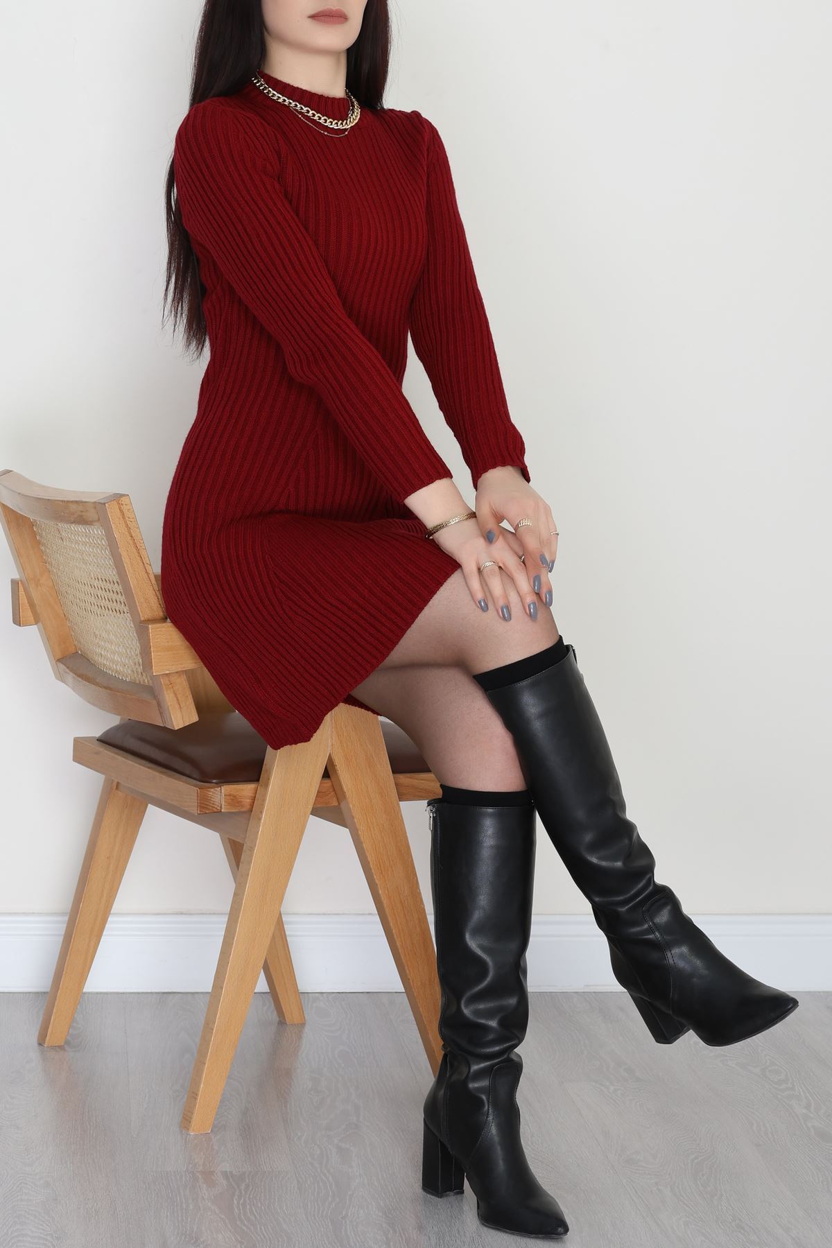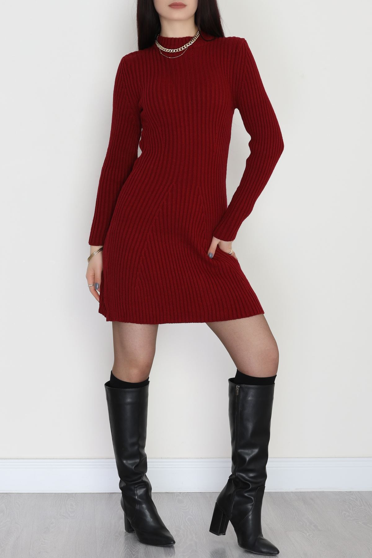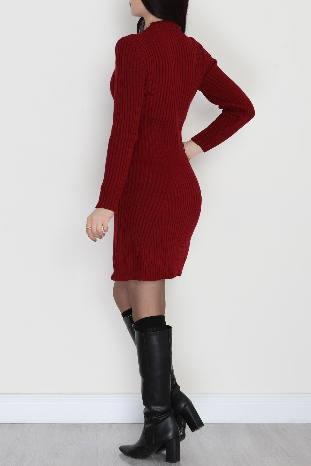 Asimetrik Yaka Sandy Elbise Bordo - 42570.1949.