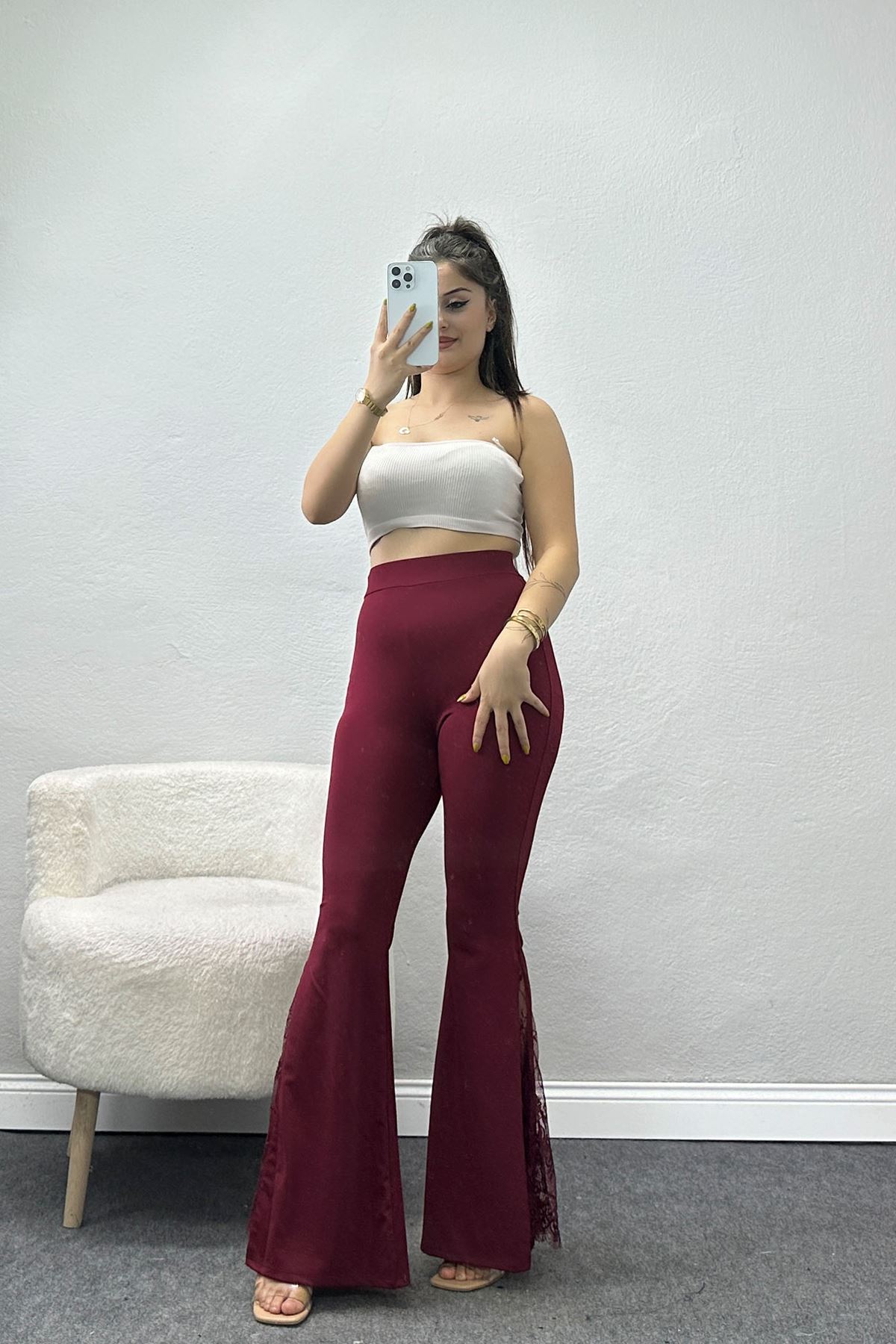 Tüllü İspanyol Paça Tayt Bordo - 50886.1905.