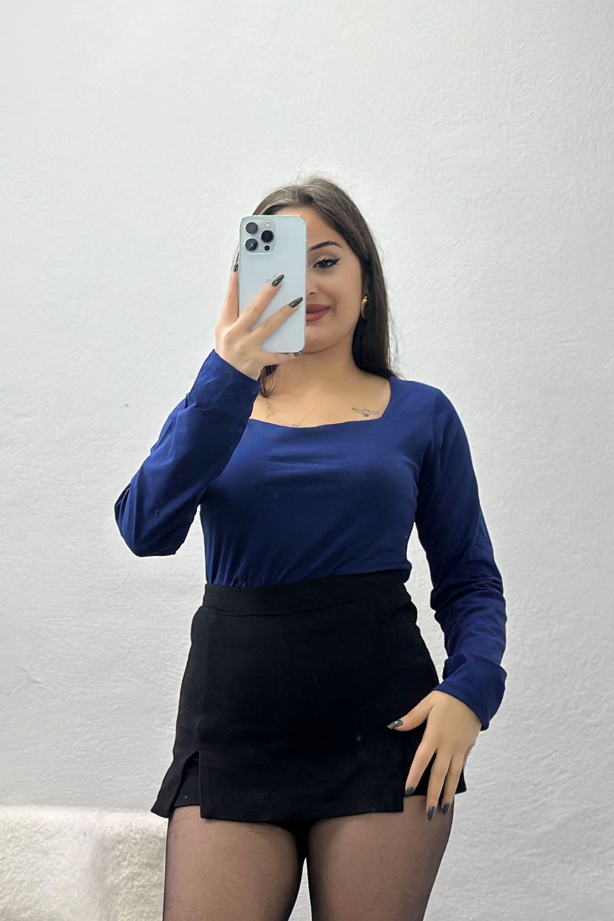 U Yaka Kompak Likralı Body Lacivert - 90934.1878.