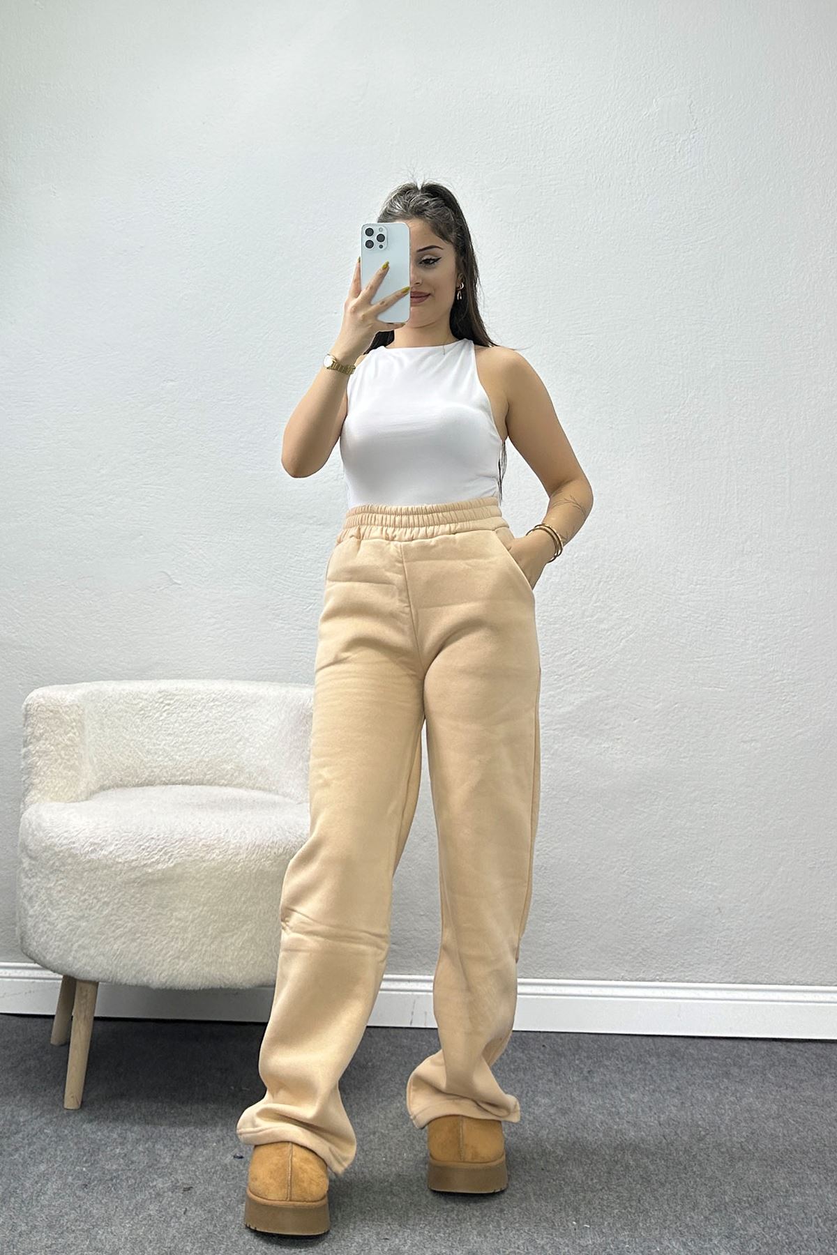 Üç İplik Palazzo Eşofman Altı Bej1 - 20970.1878.