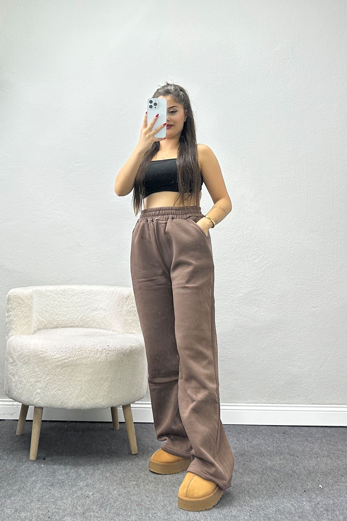 Üç İplik Palazzo Eşofman Altı Kahve - 20970.1878.