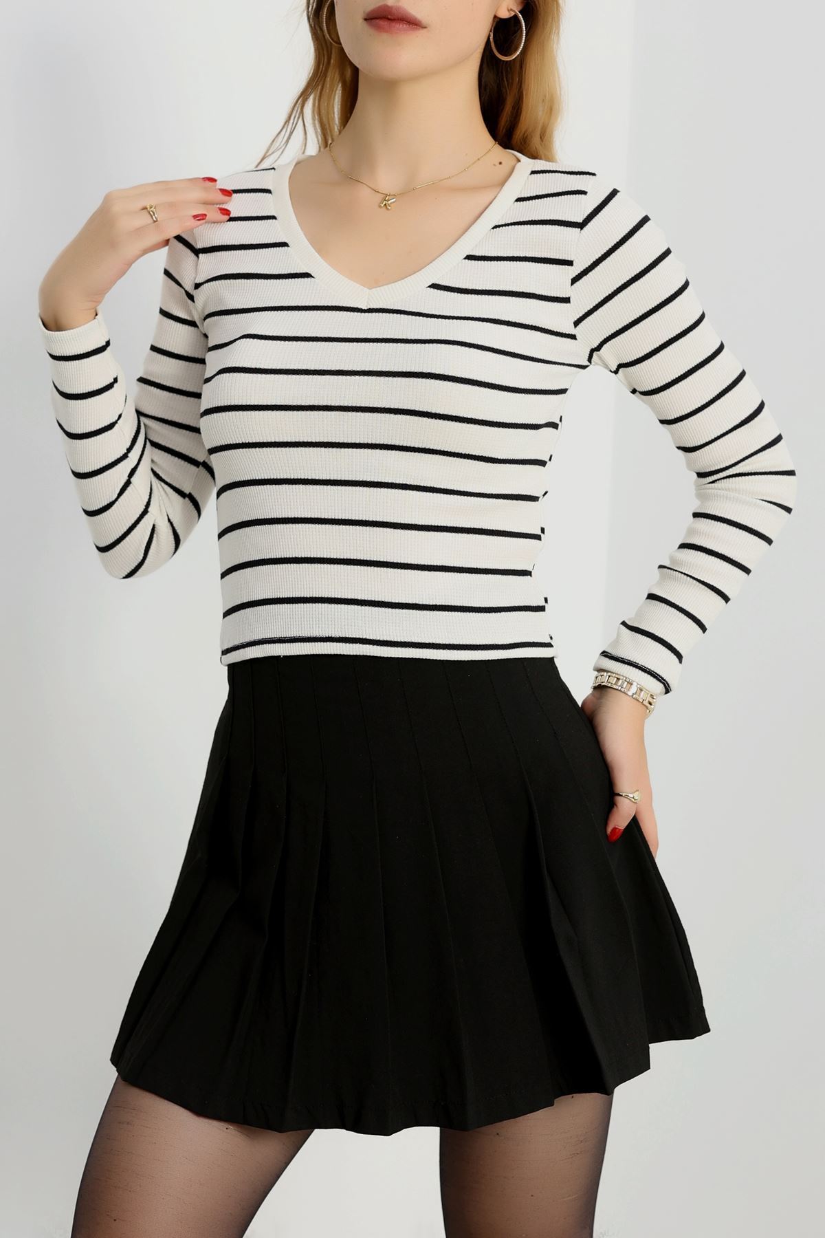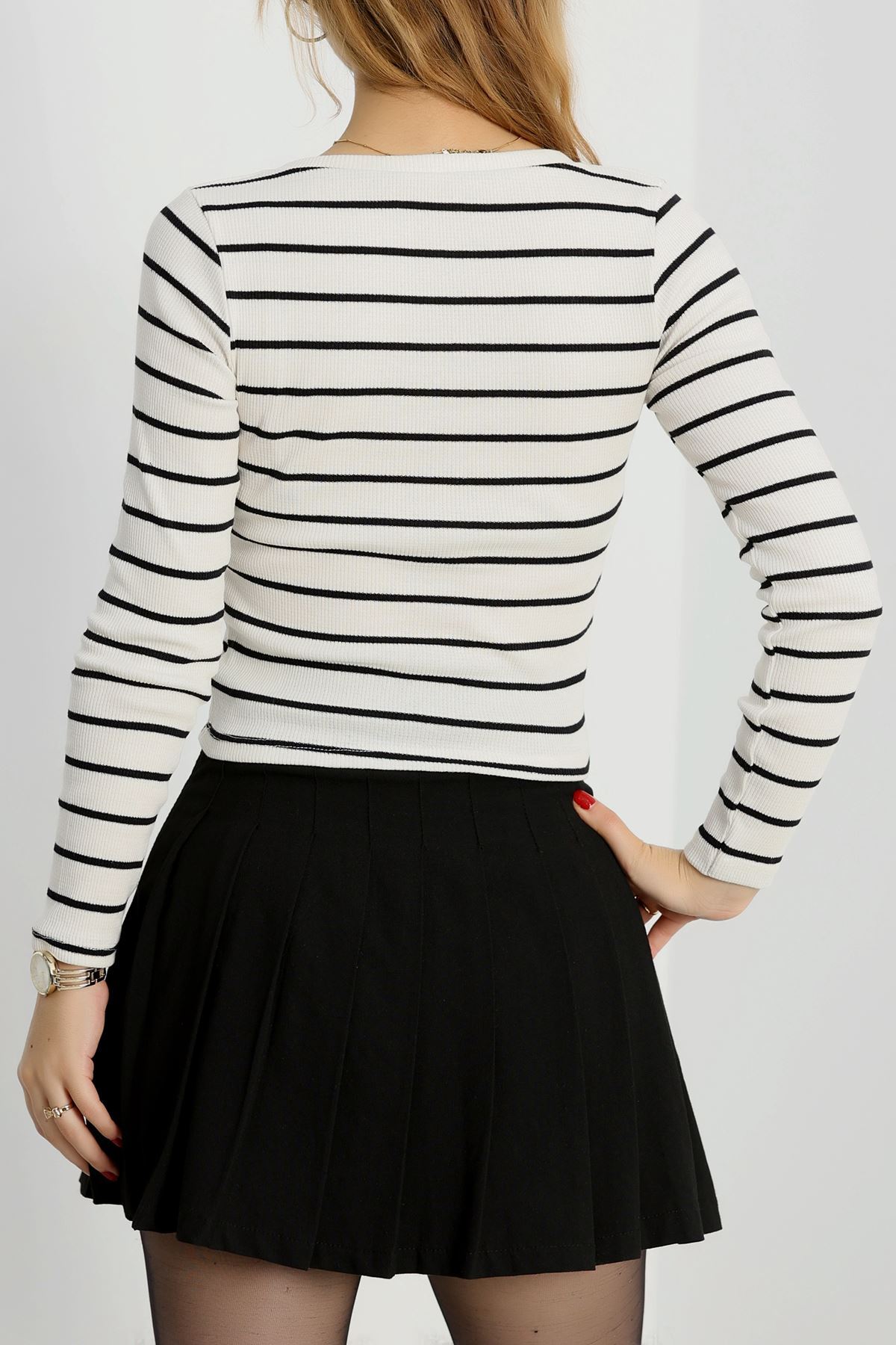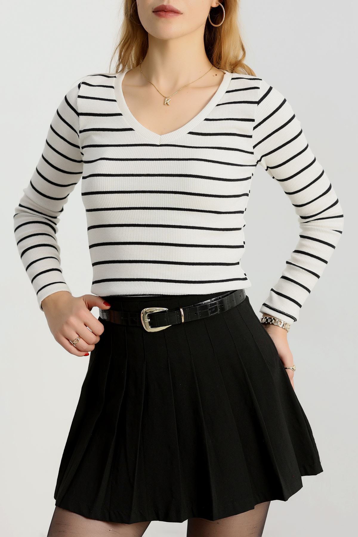 V Yaka Çizgili Kaşkorse Body Ekrusiyah - 70763.1748.