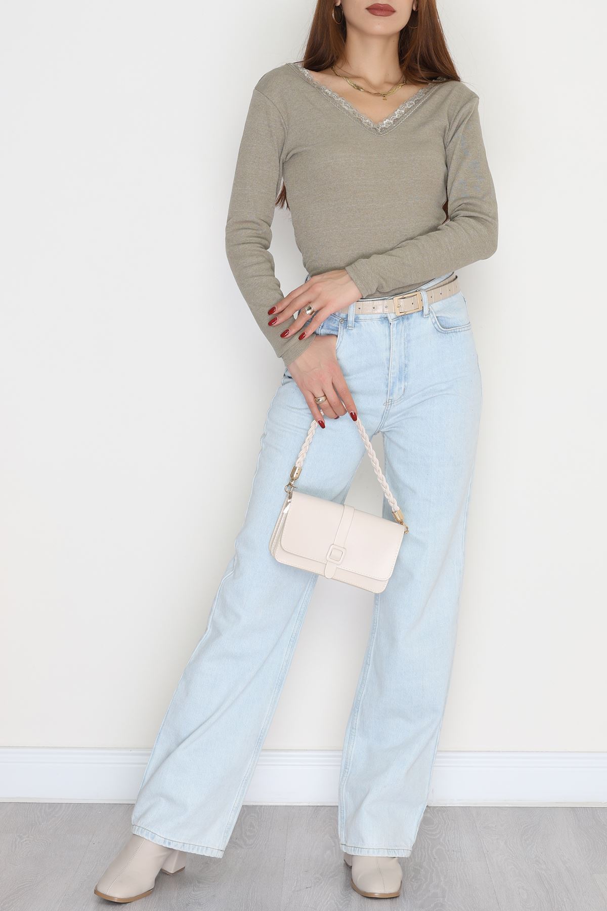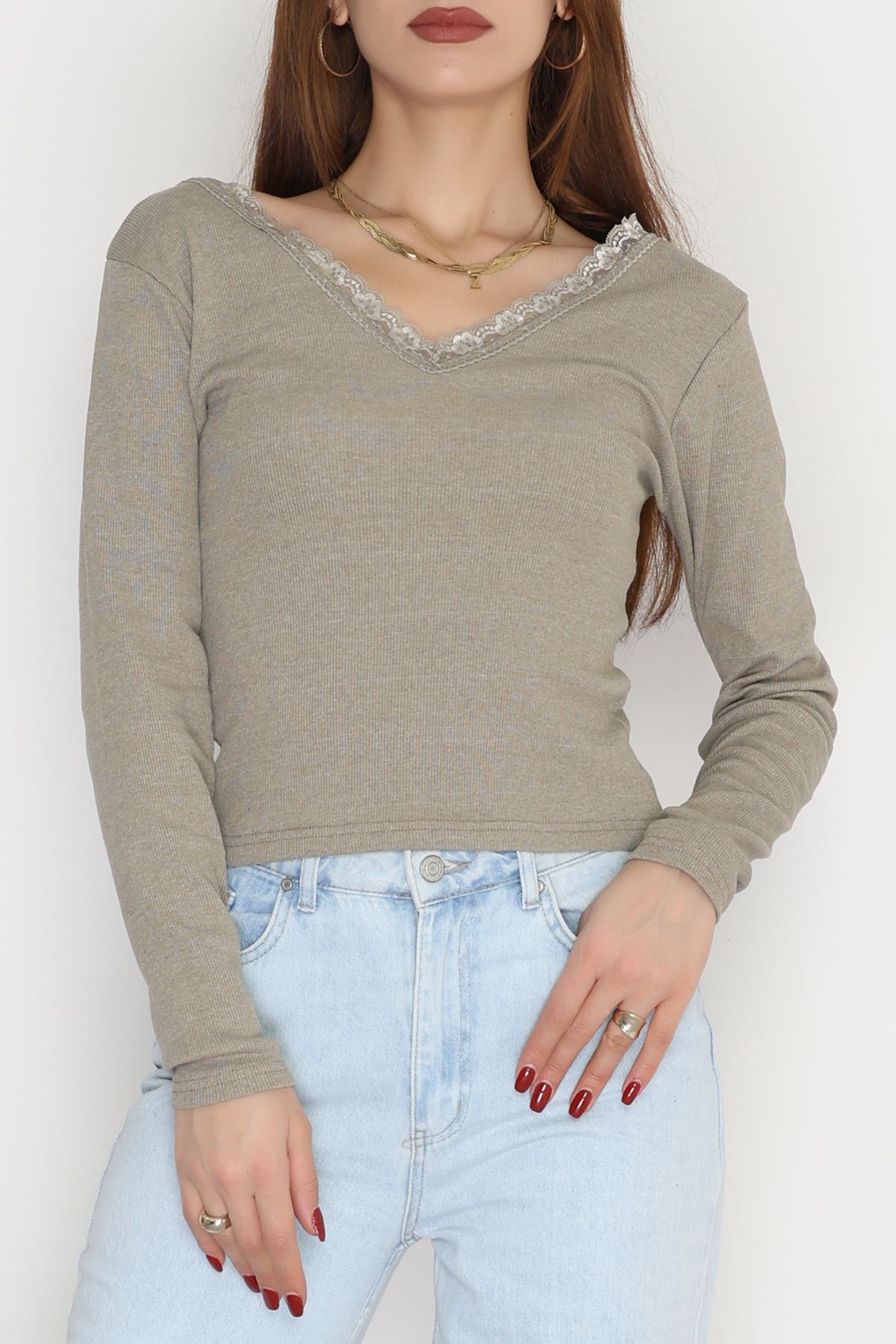 V Yaka Dantelli Kaşkorse Body Açıkhaki - 70788.599.