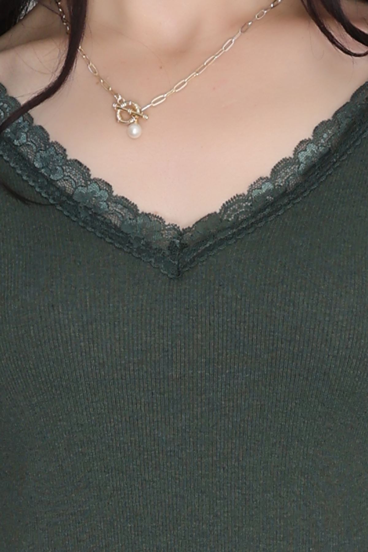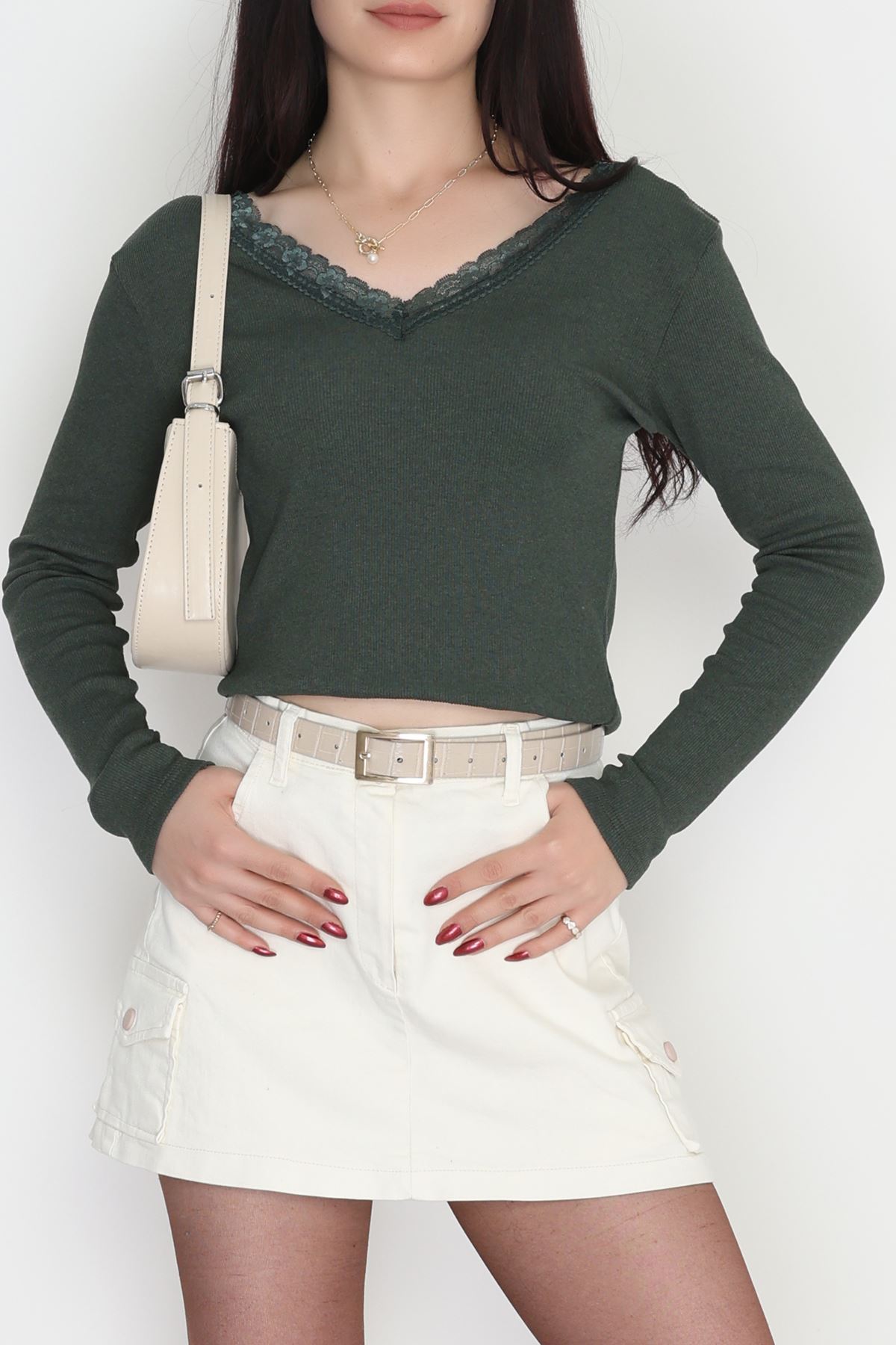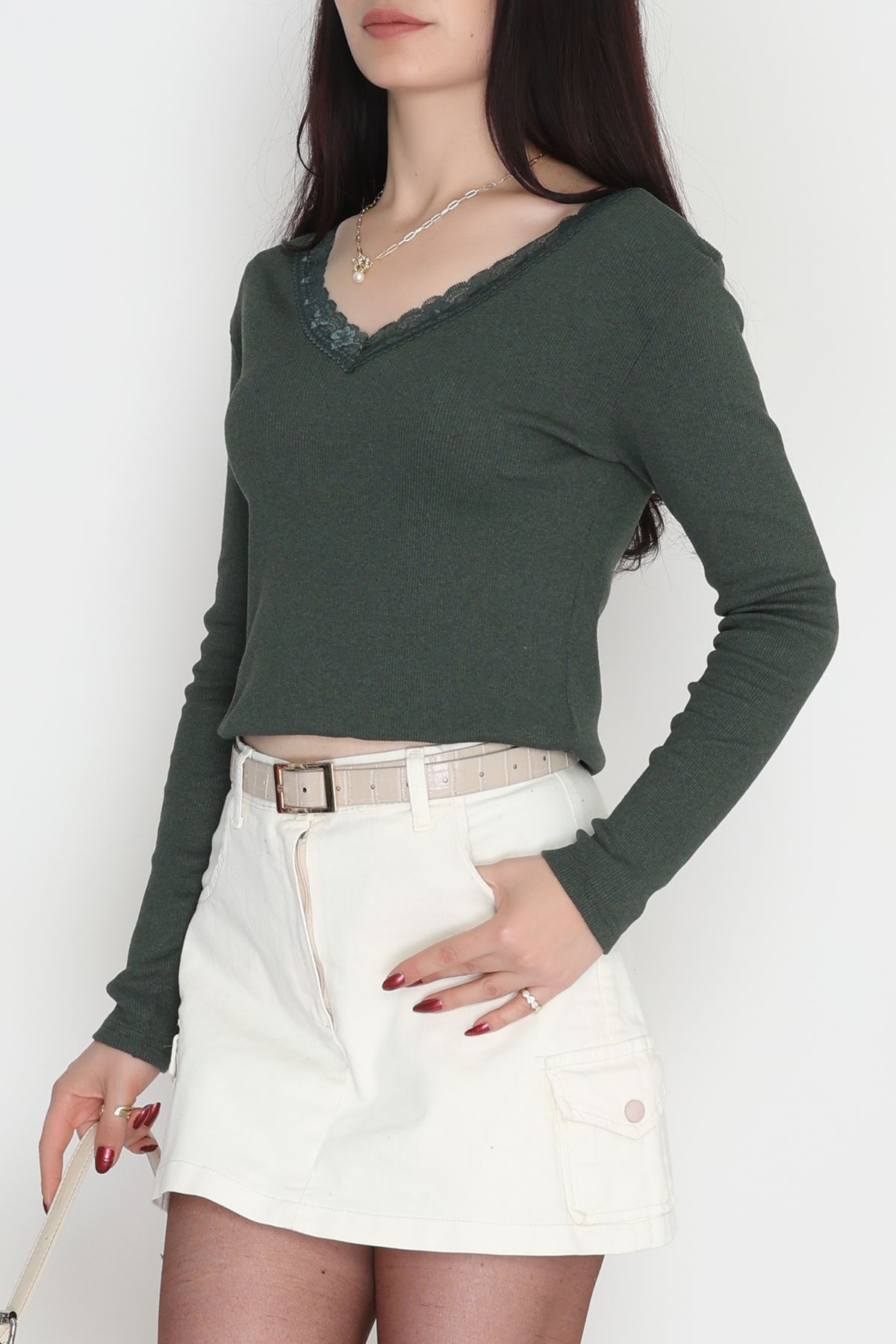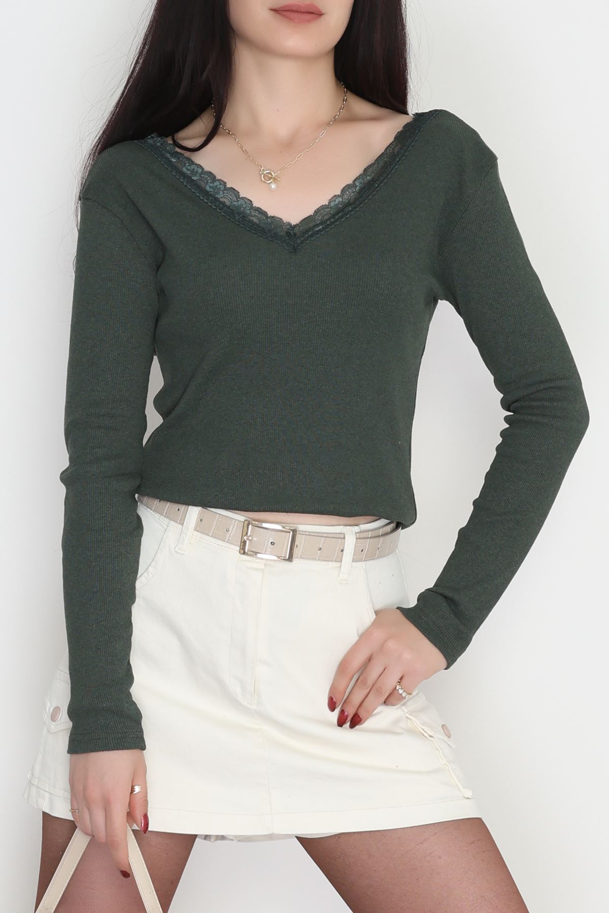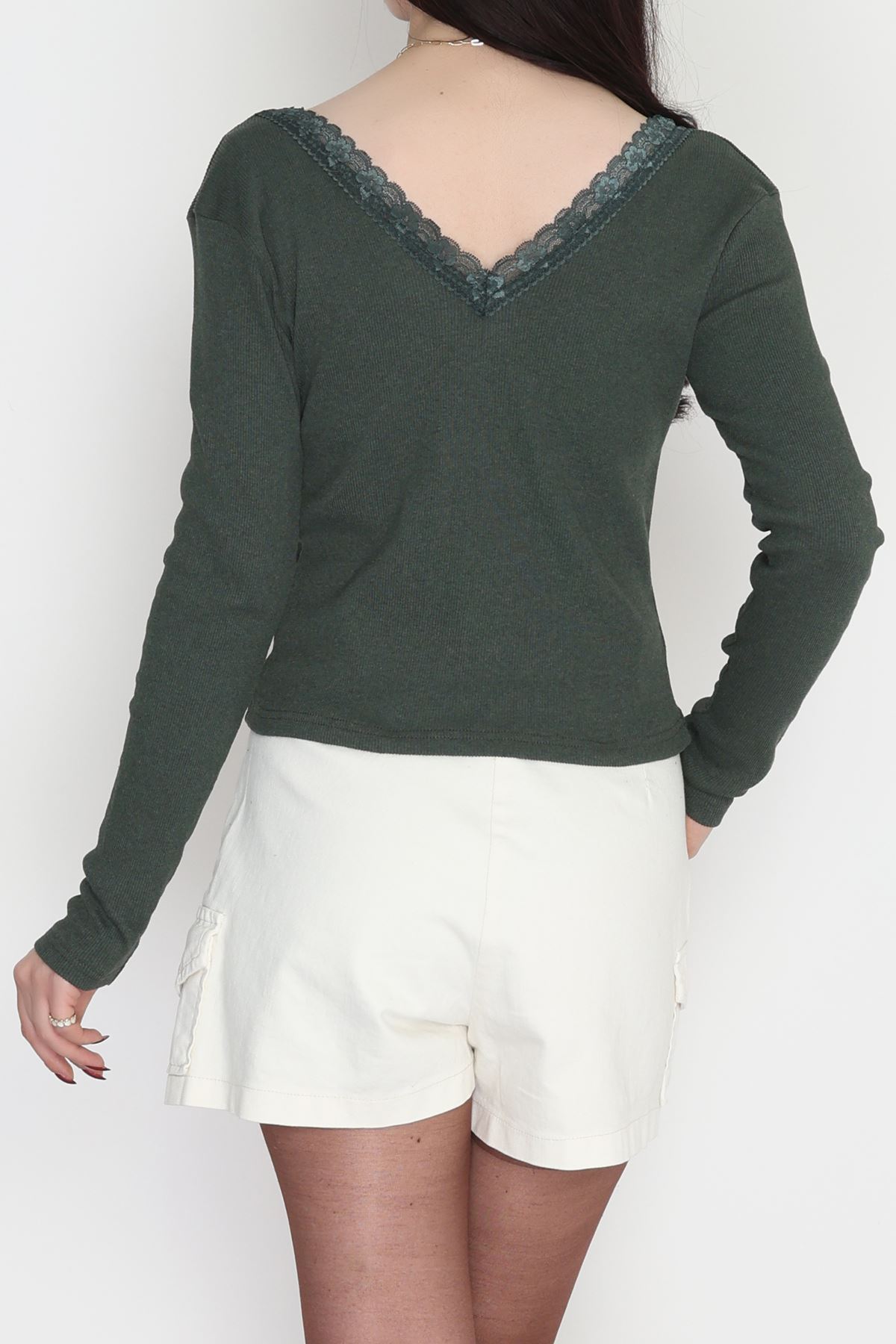 V Yaka Dantelli Kaşkorse Body Haki - 70815.599.