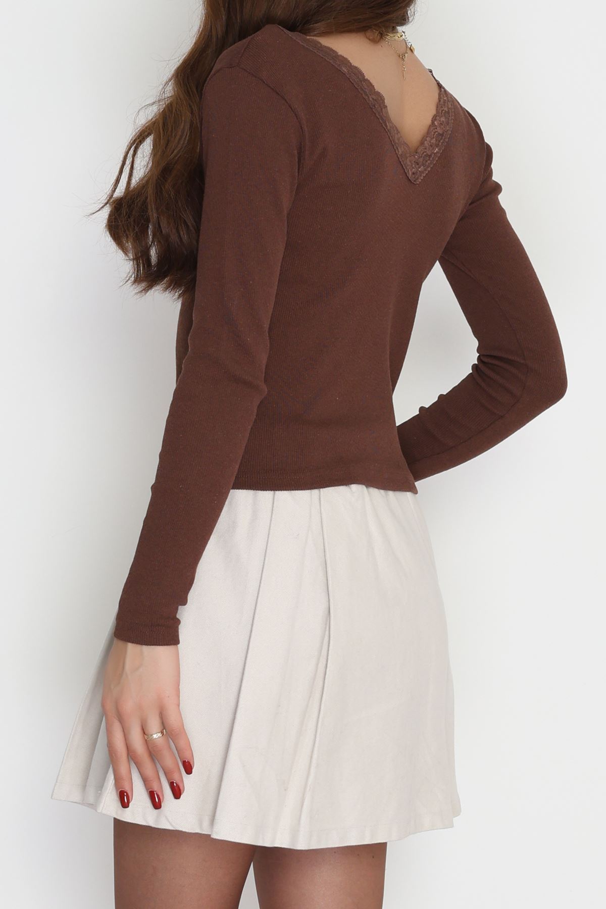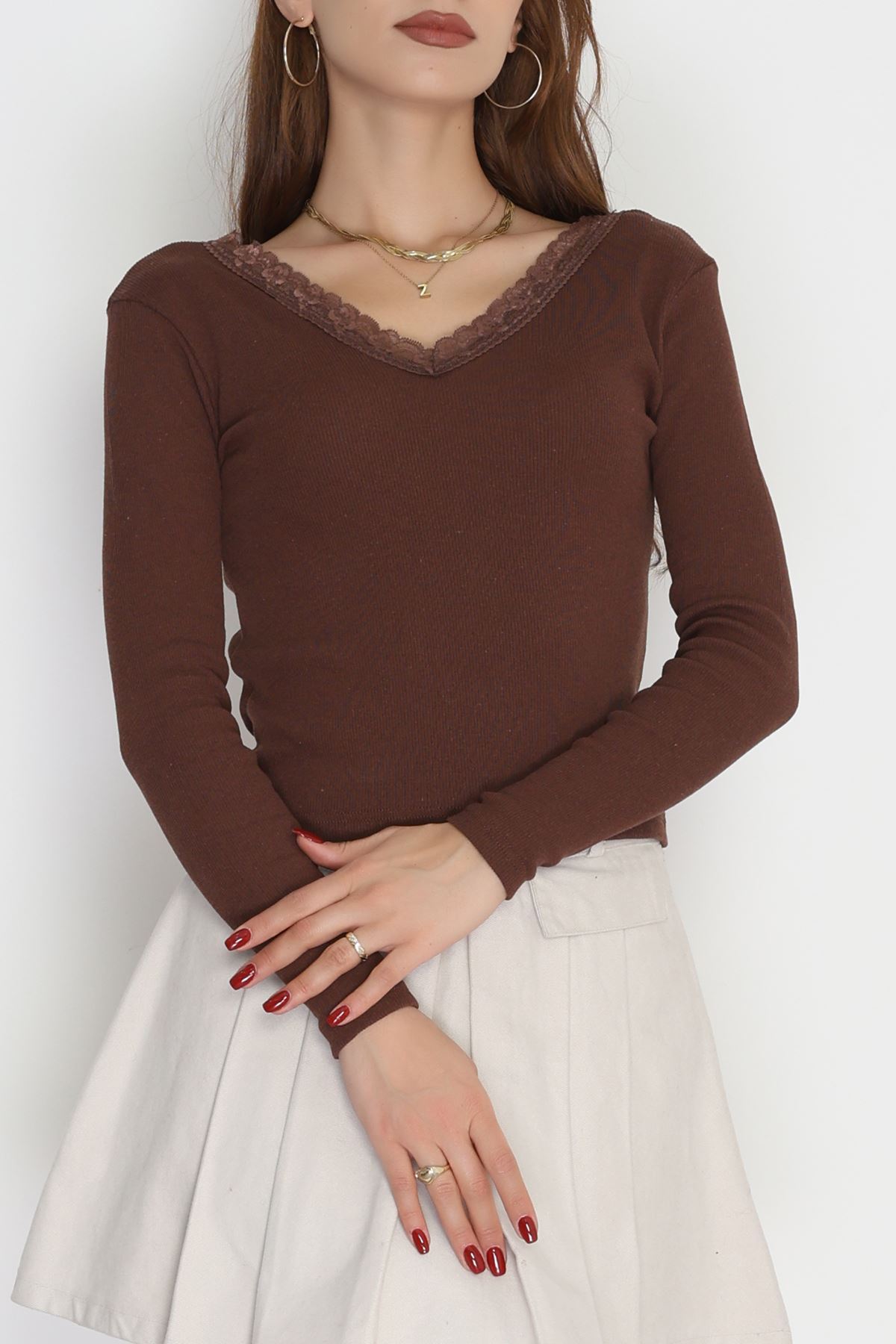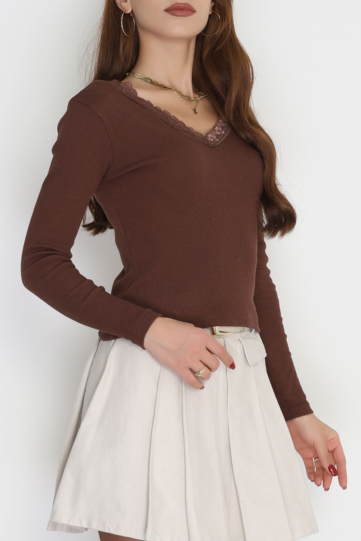 V Yaka Dantelli Kaşkorse Body Kahve - 70815.599.