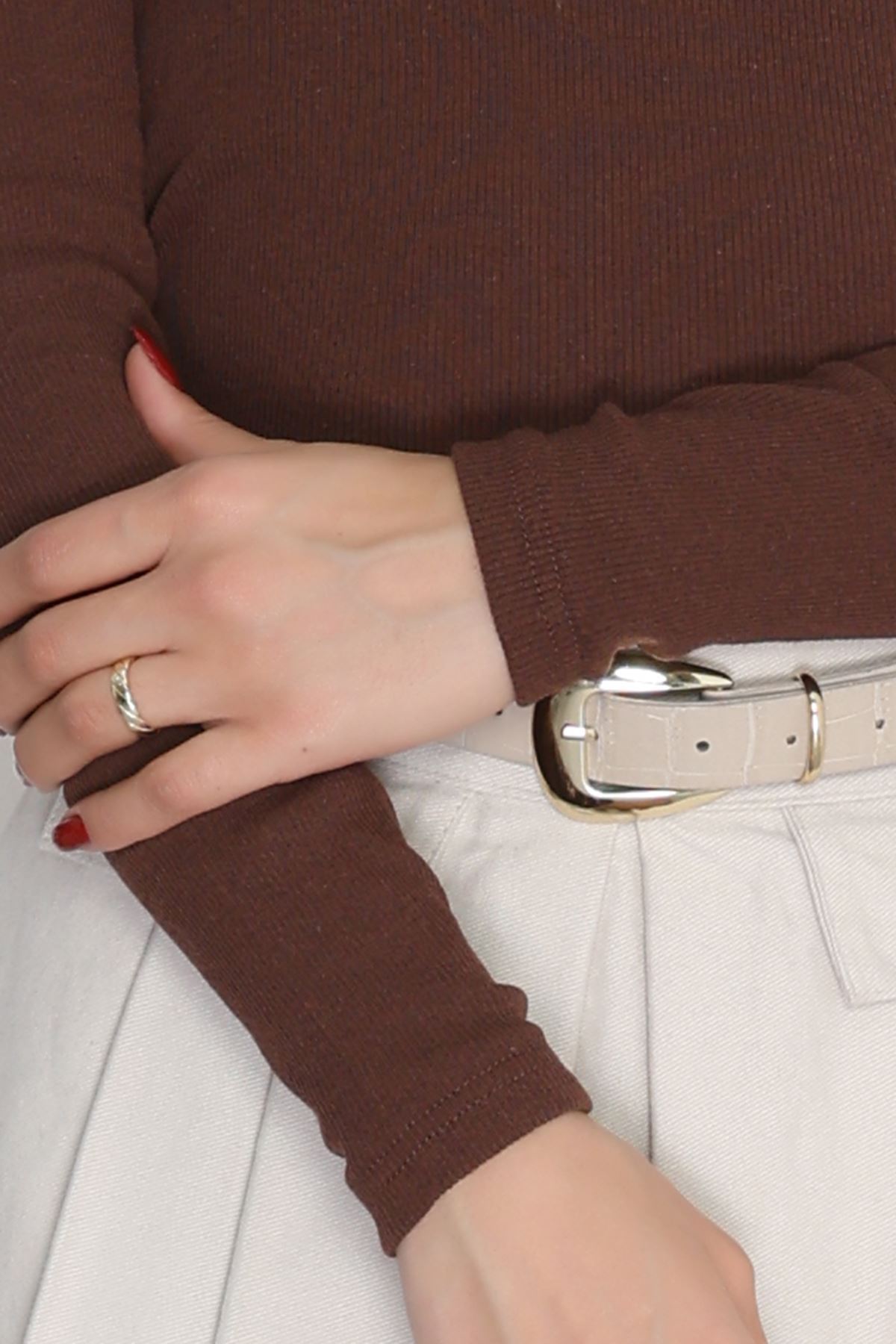 Madonna Yaka Önü Düğümlü Triko Ekru - 2432.1765.
