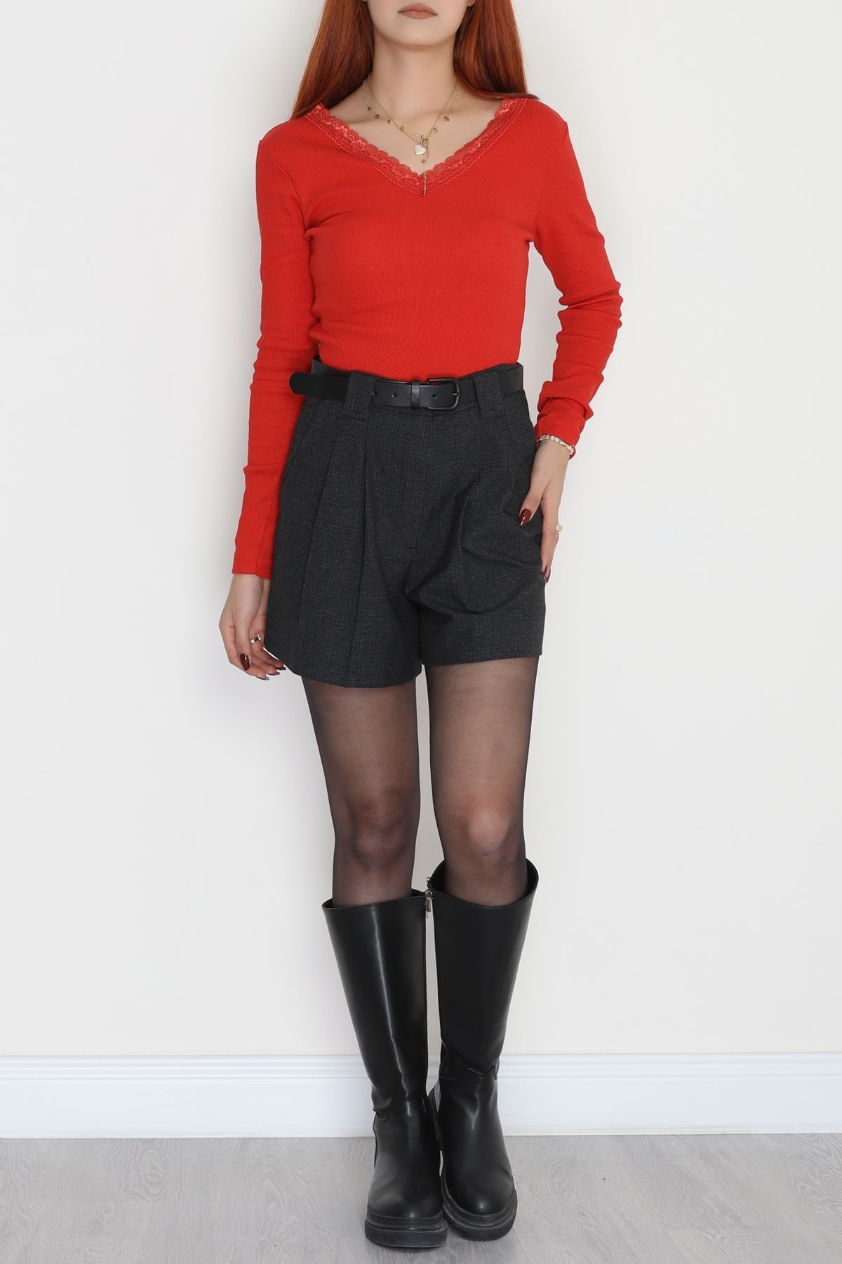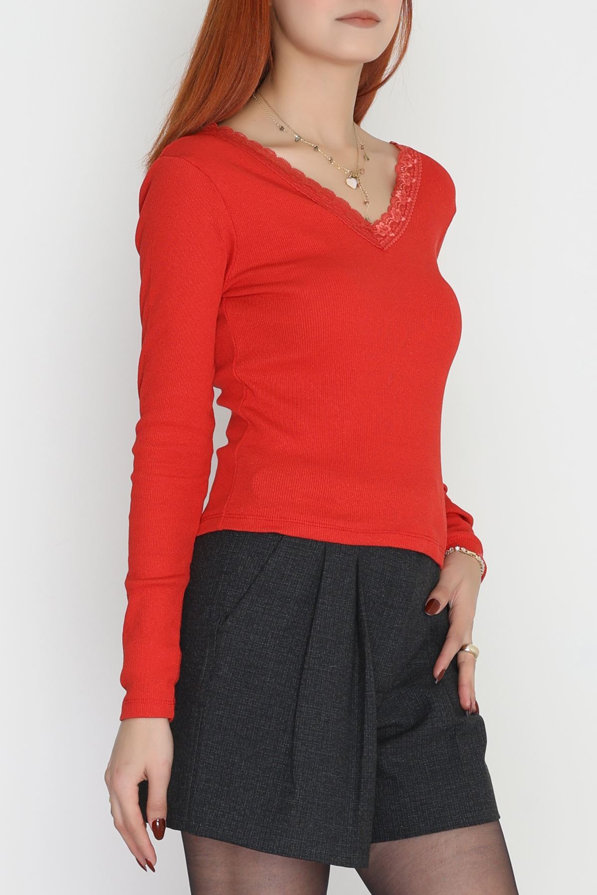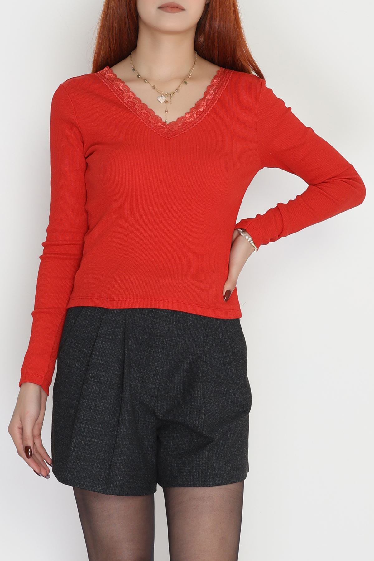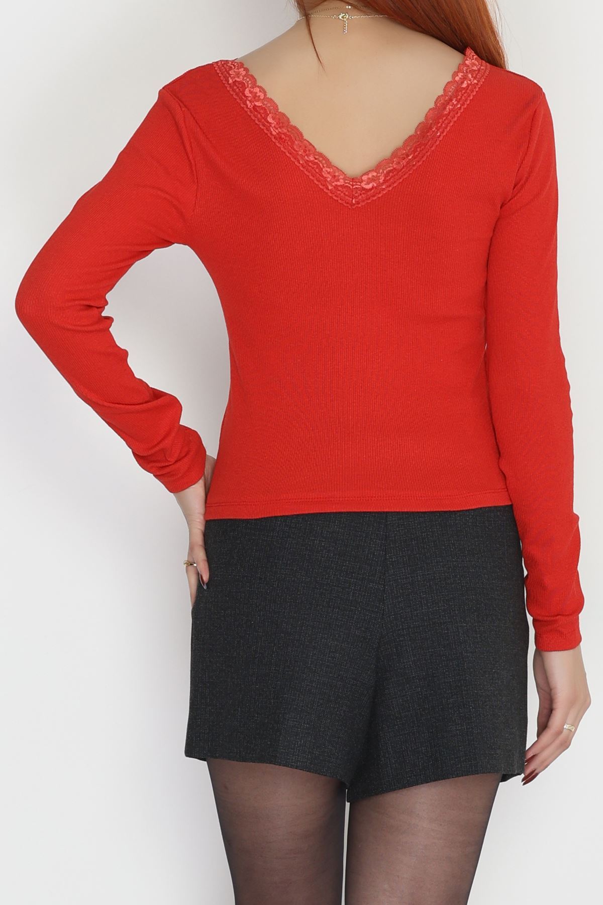 V Yaka Dantelli Kaşkorse Body Kırmızı - 70815.599.