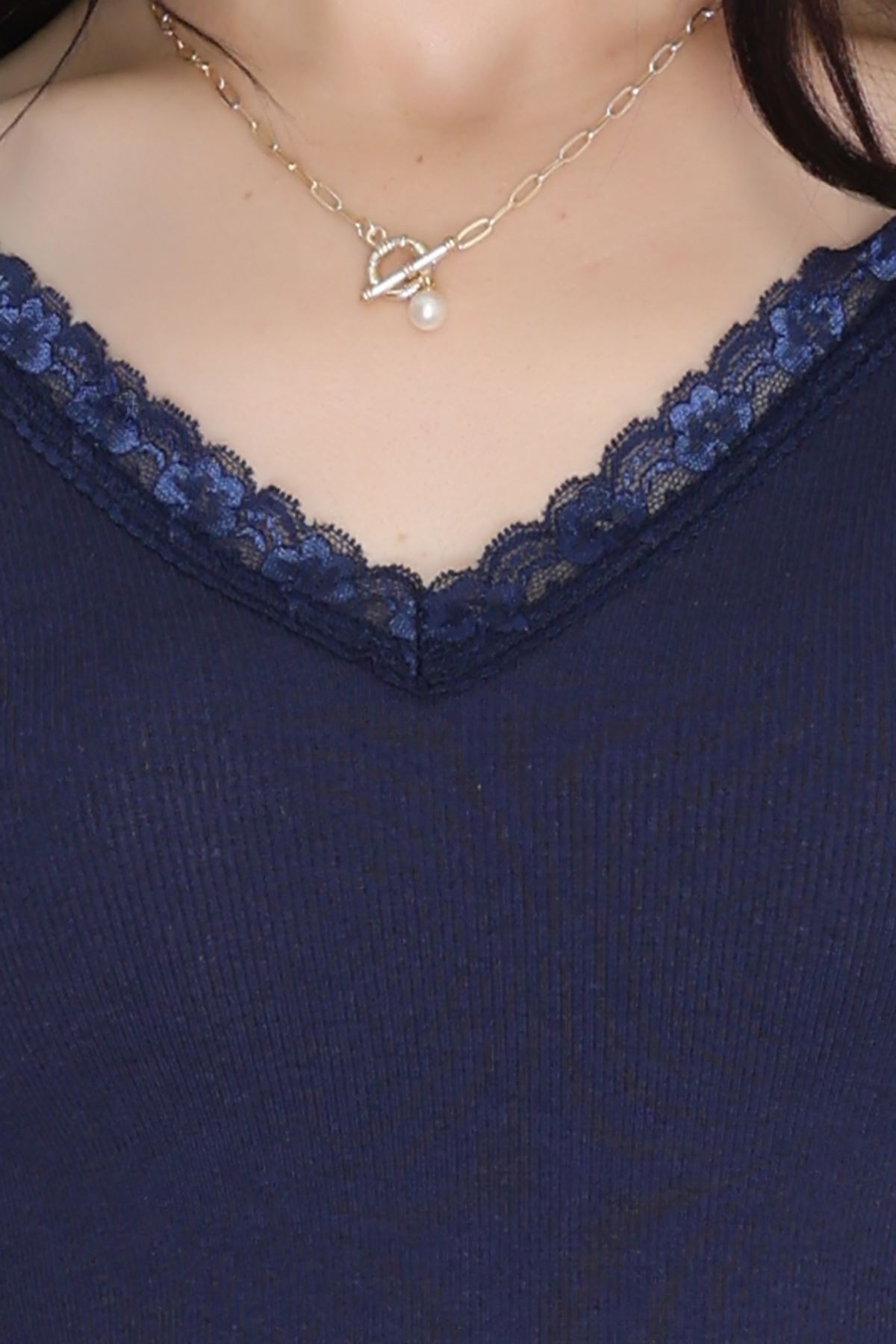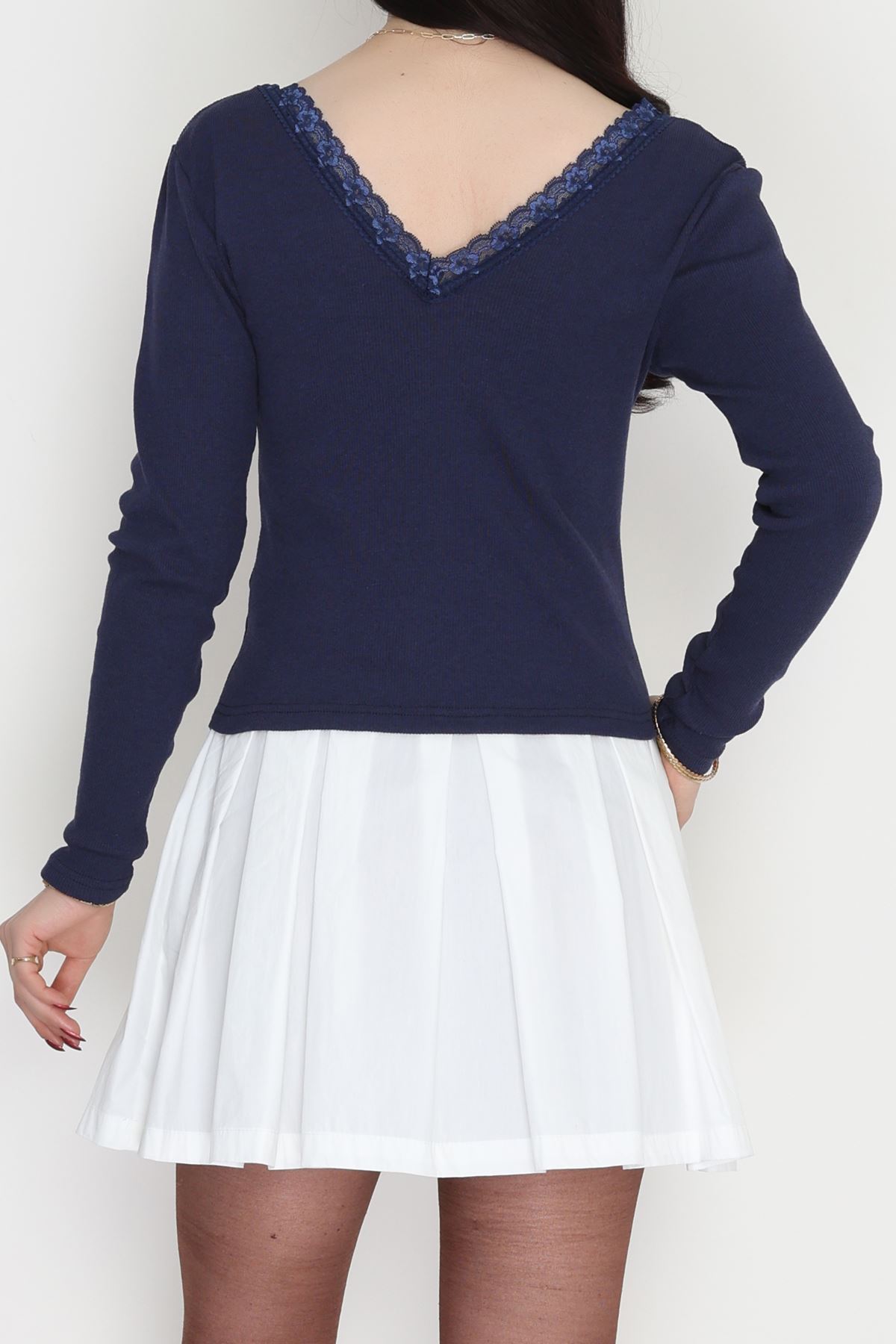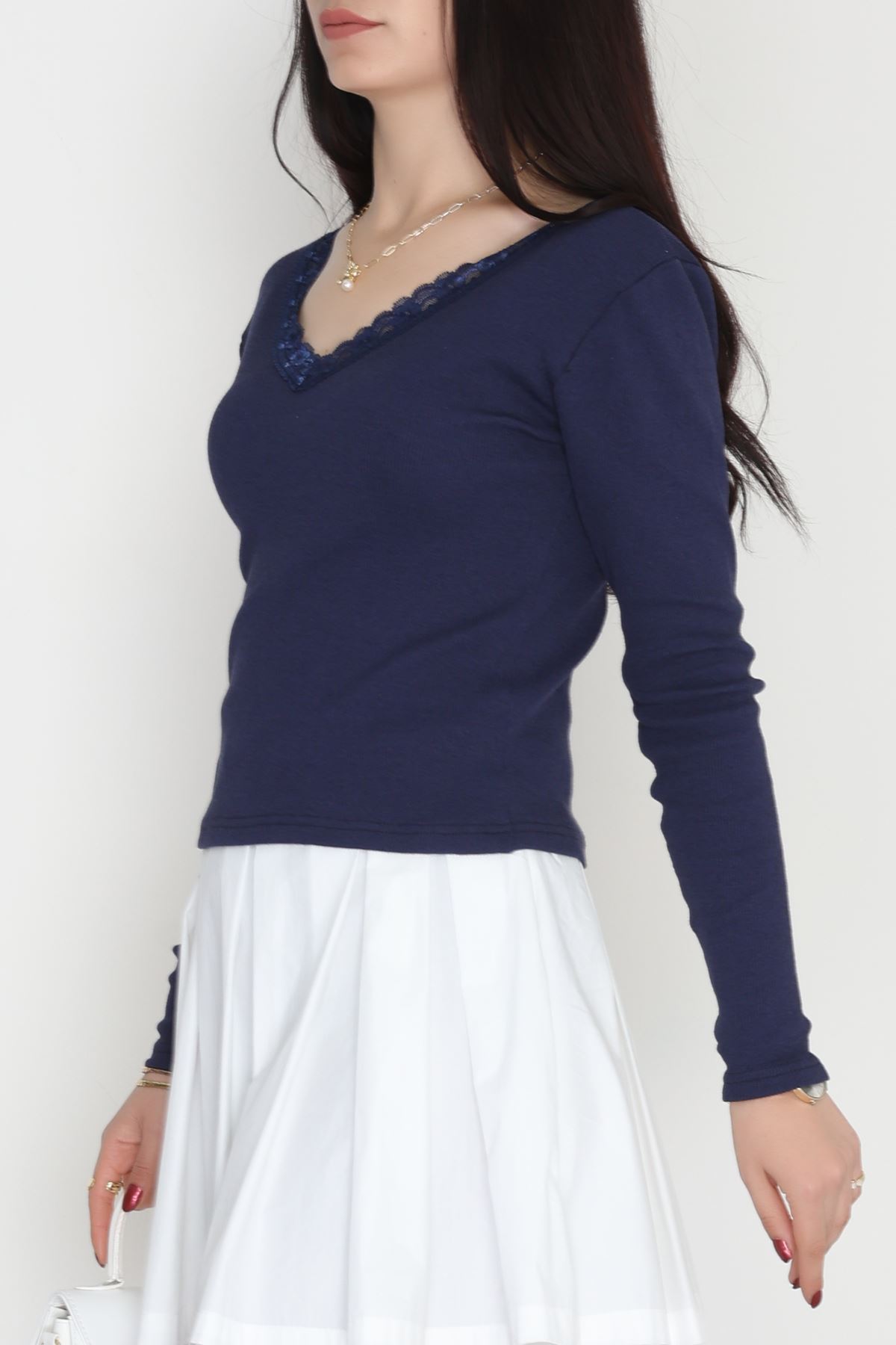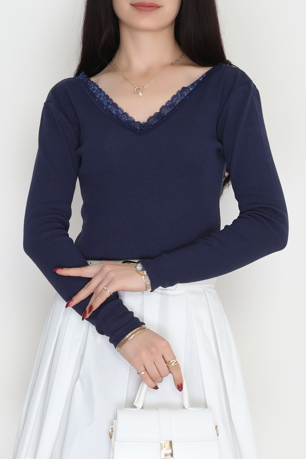 V Yaka Dantelli Kaşkorse Body Lacivert - 70788.599.