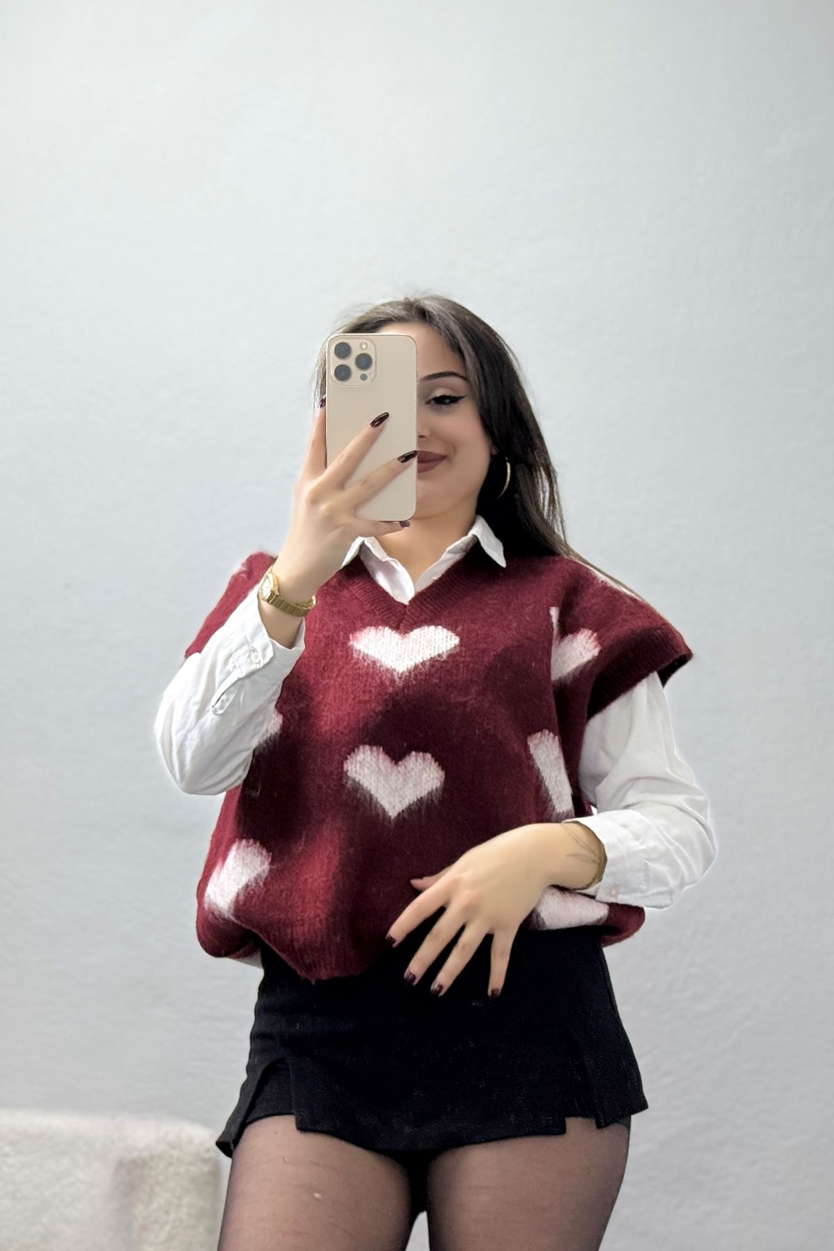 V Yaka Kalpli Süveter Bordo - 2410.1765.