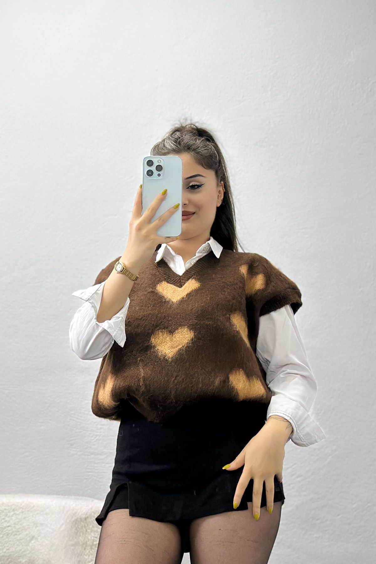 V Yaka Kalpli Süveter Kahve - 2410.1765.