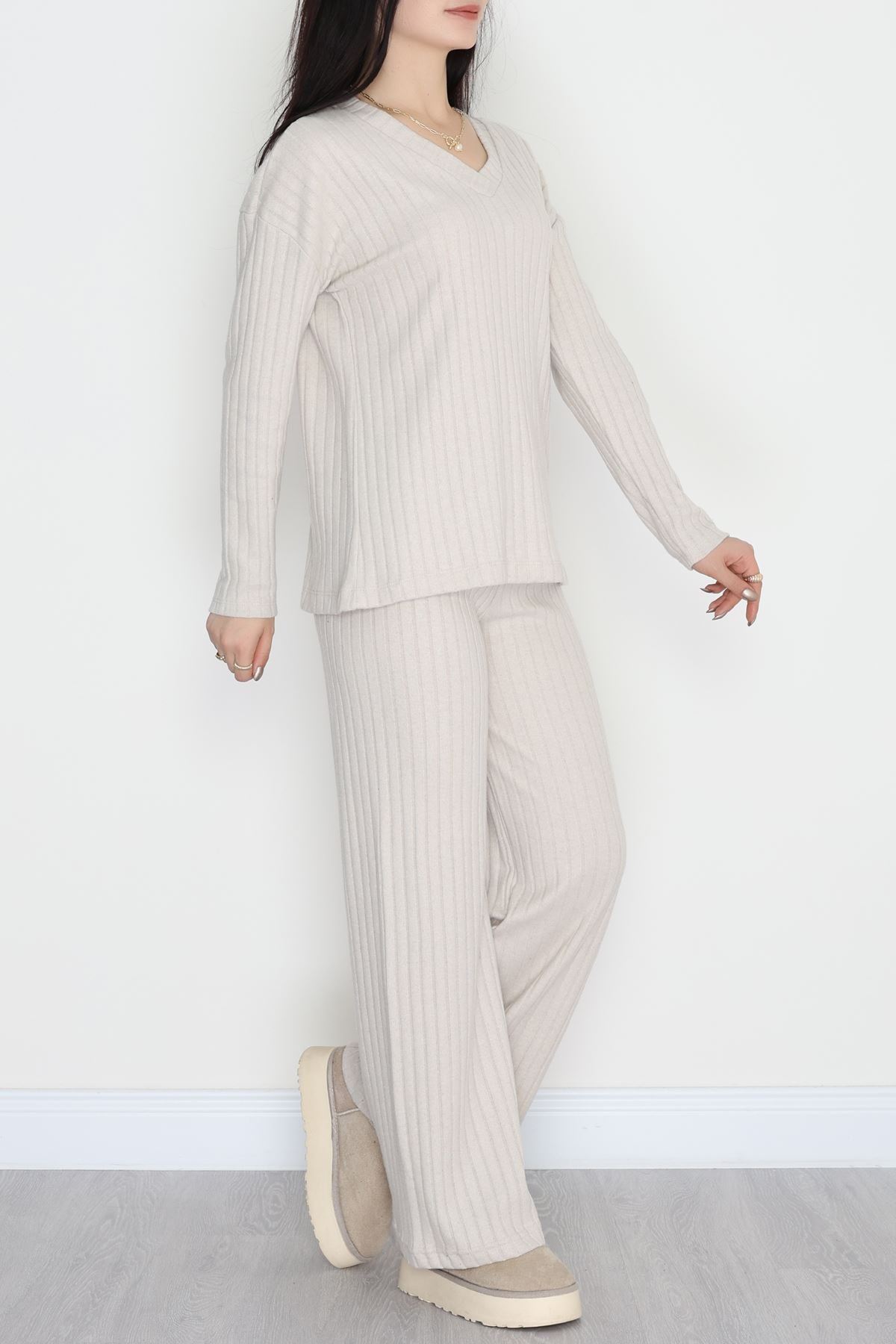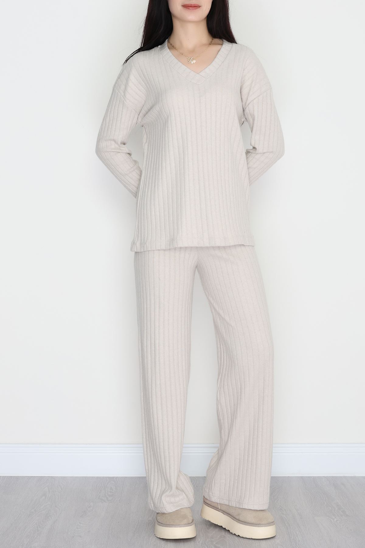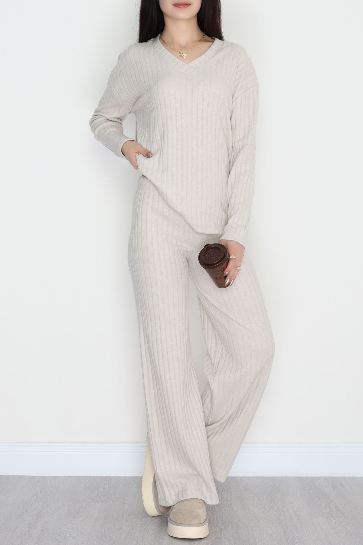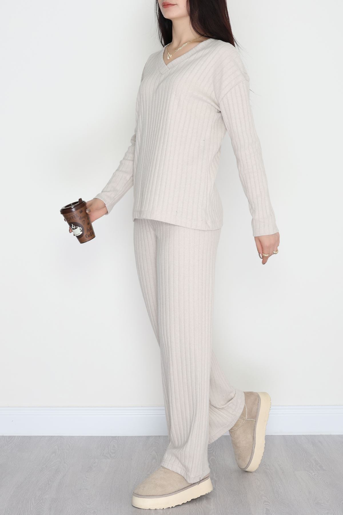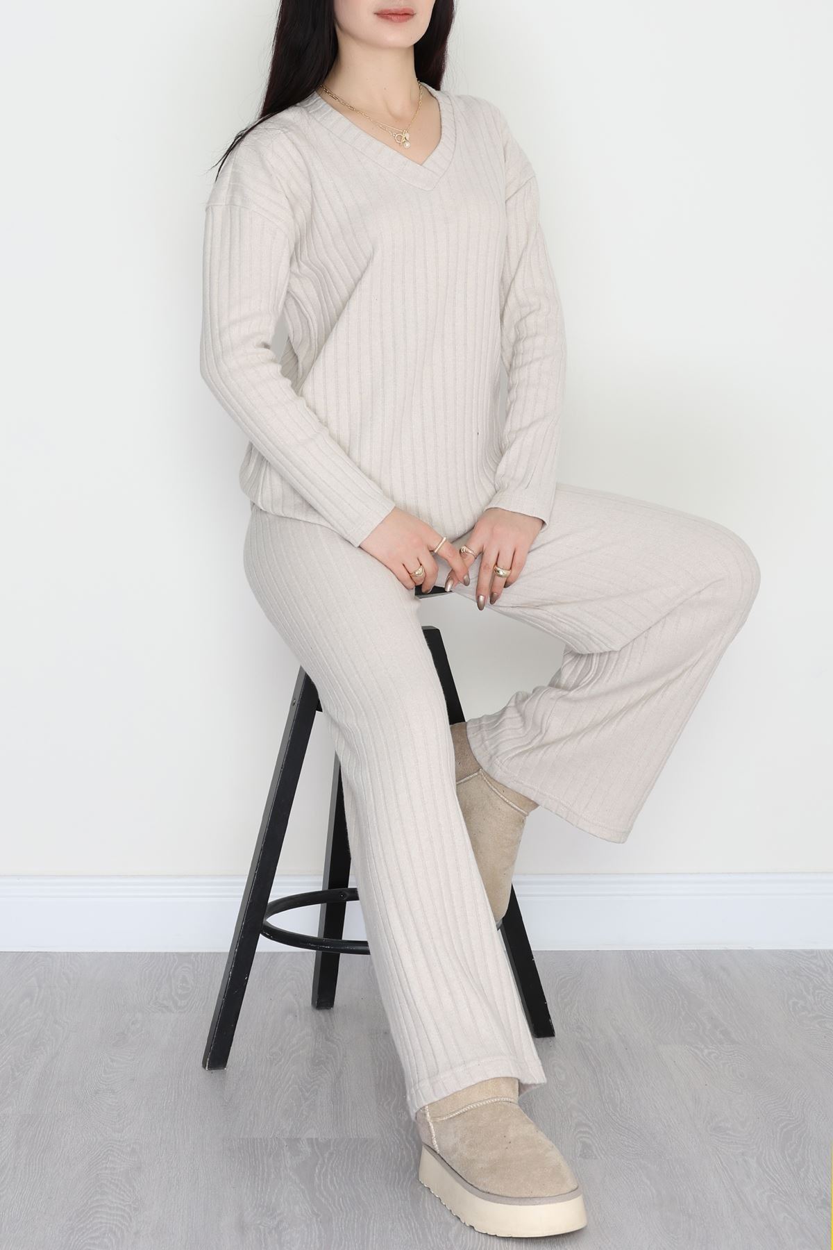 V Yaka Raporlu İnterlok Takım Bej - 2280.1287.
