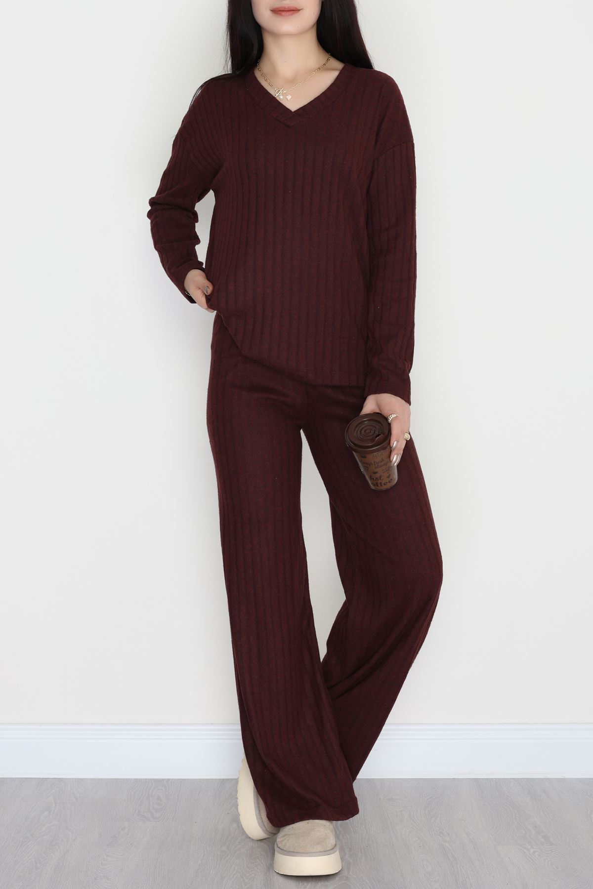 V Yaka Raporlu İnterlok Takım Bordo - 2280.1287.