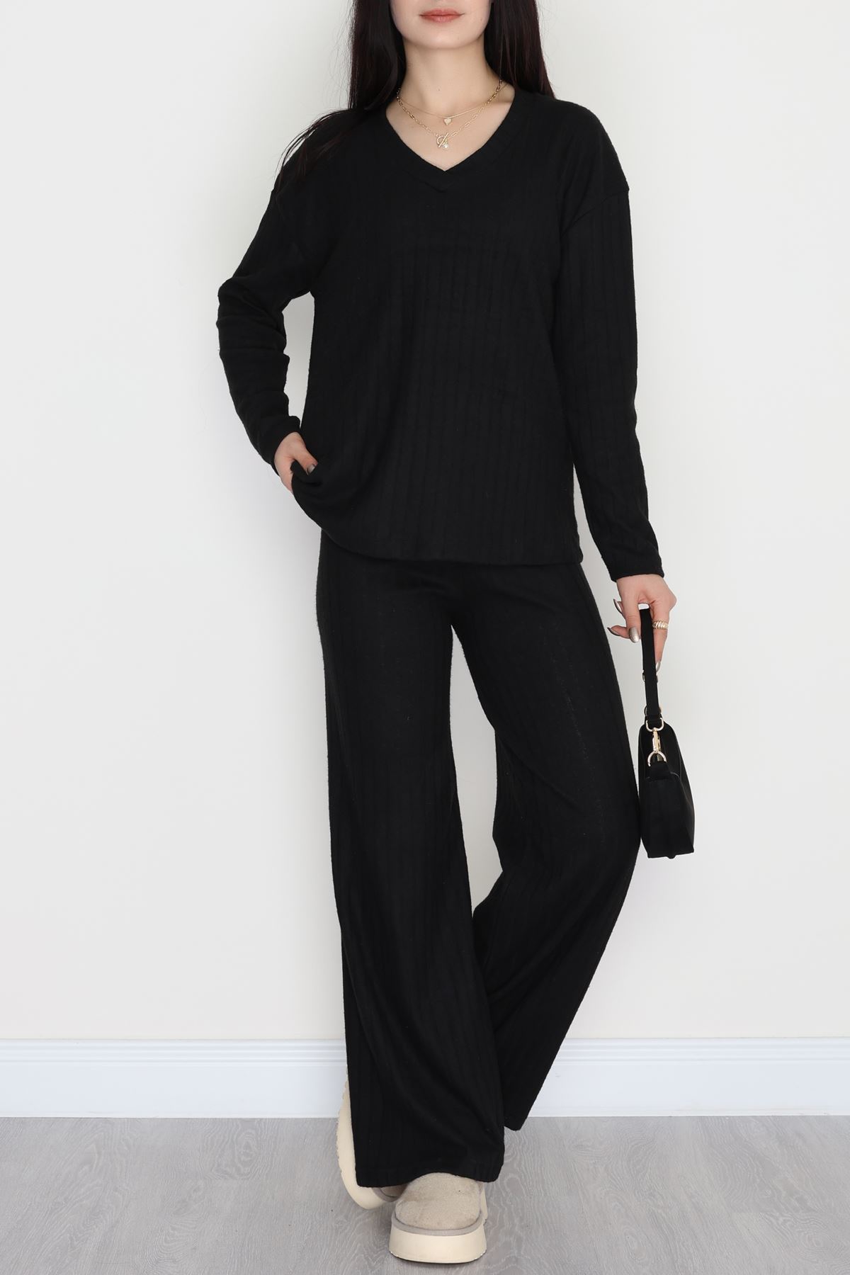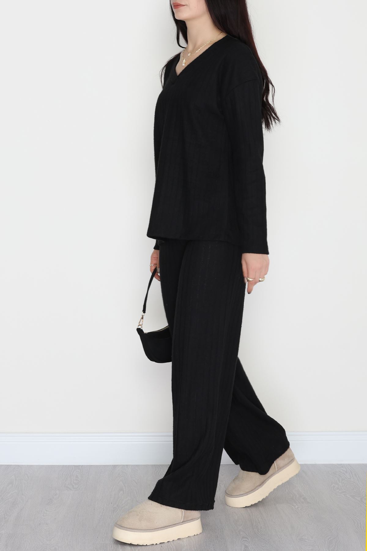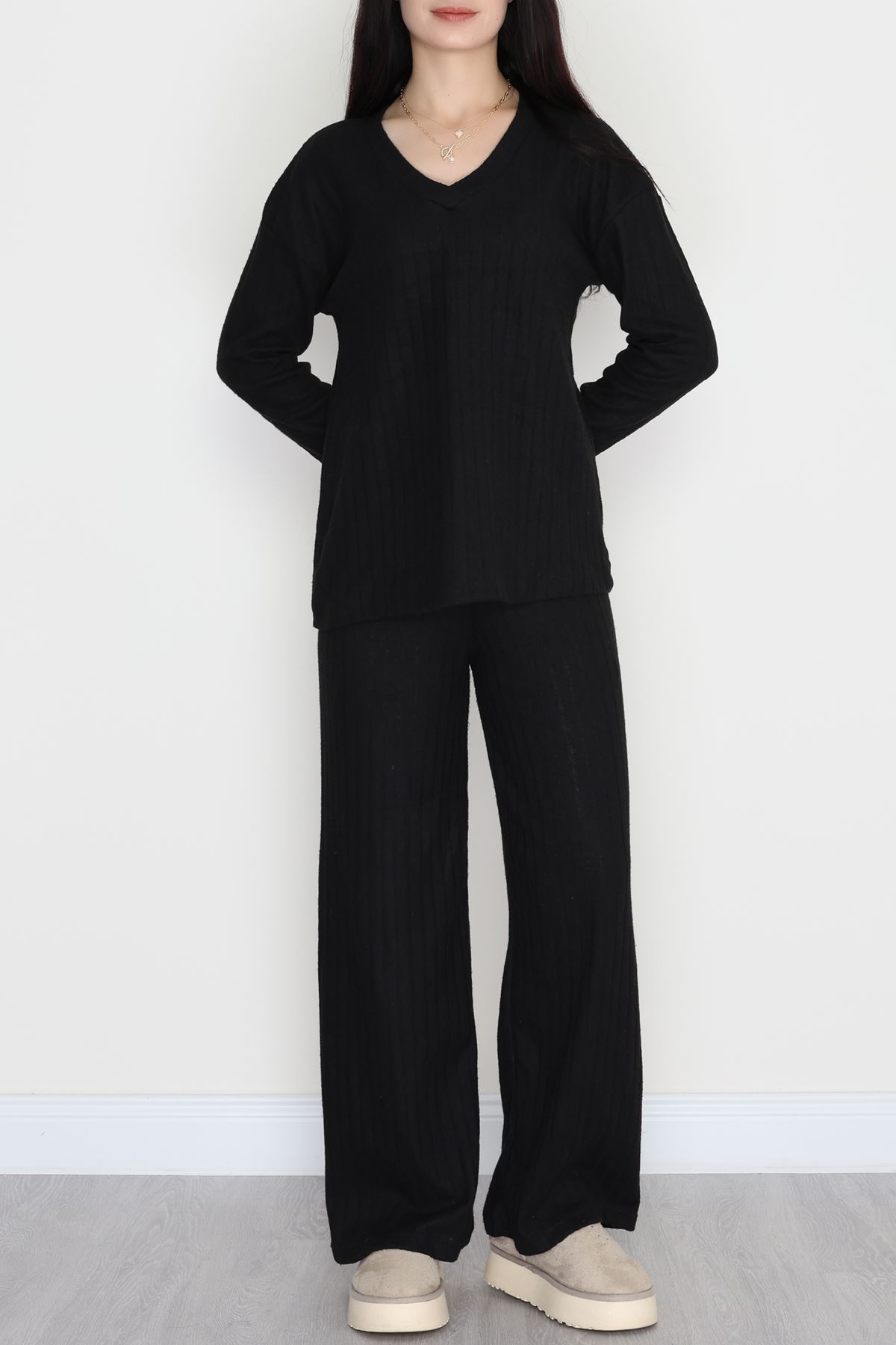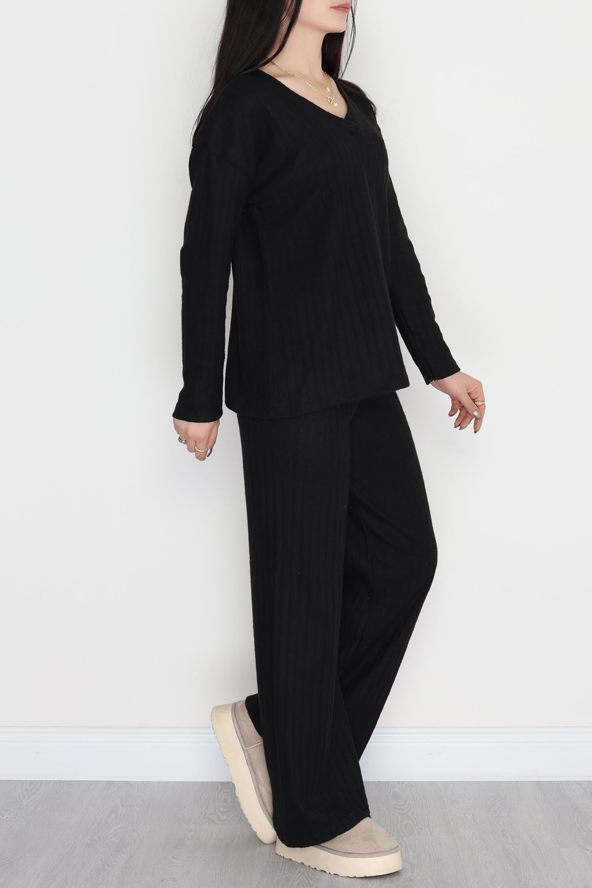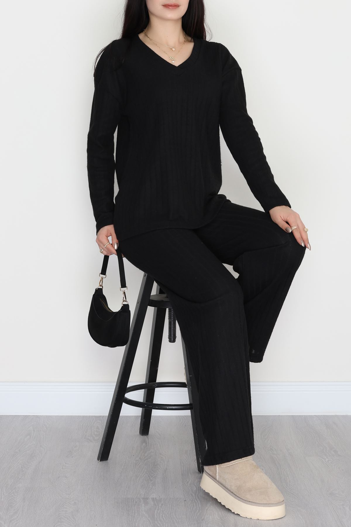 V Yaka Raporlu İnterlok Takım Siyah - 2280.1287.