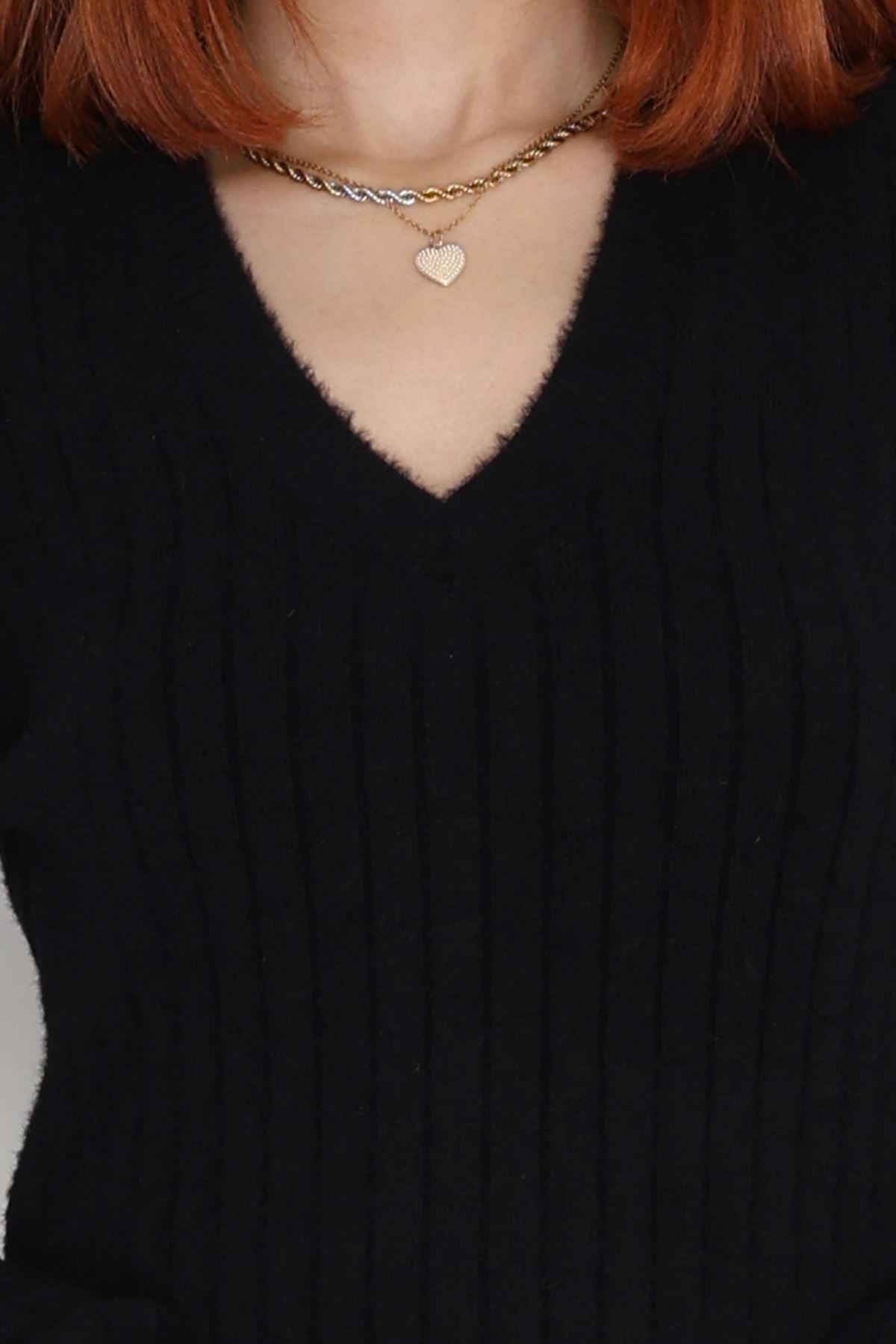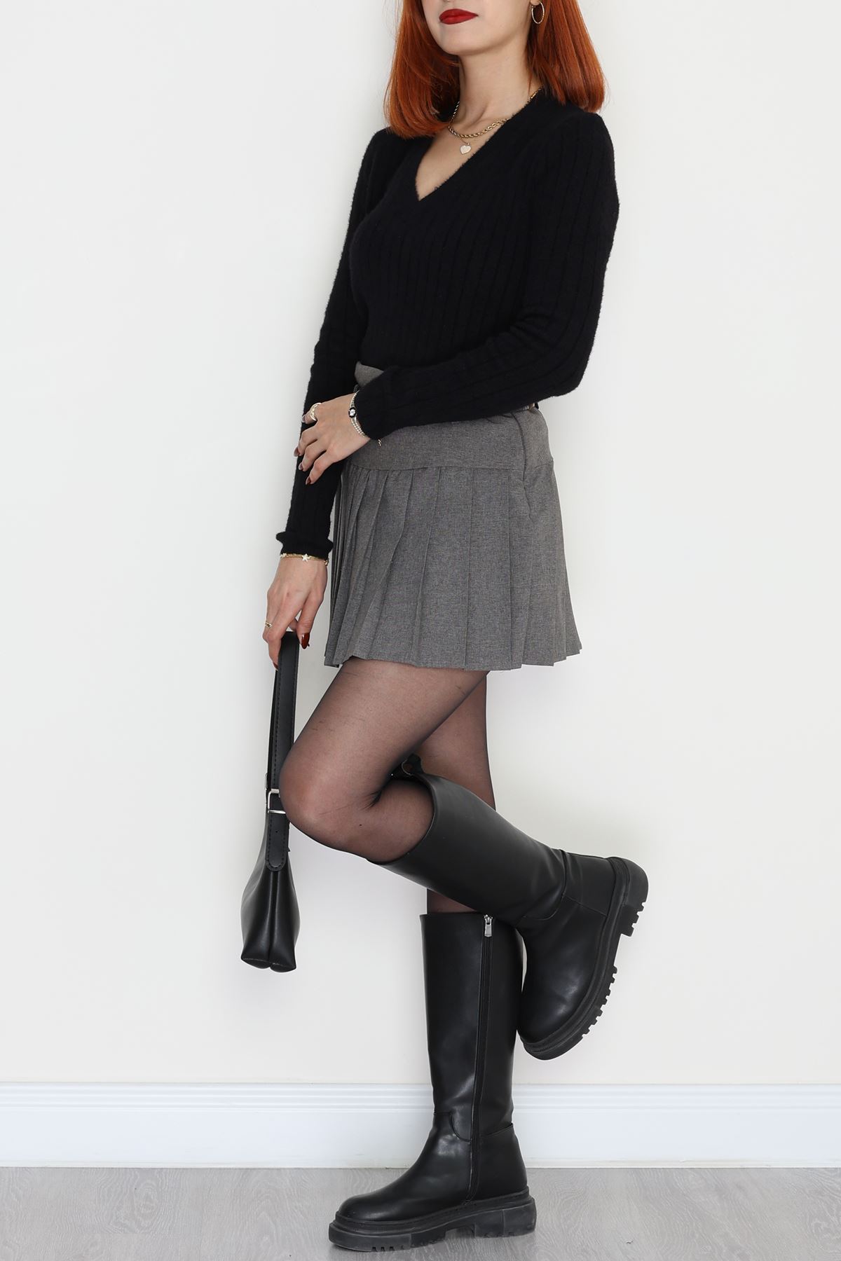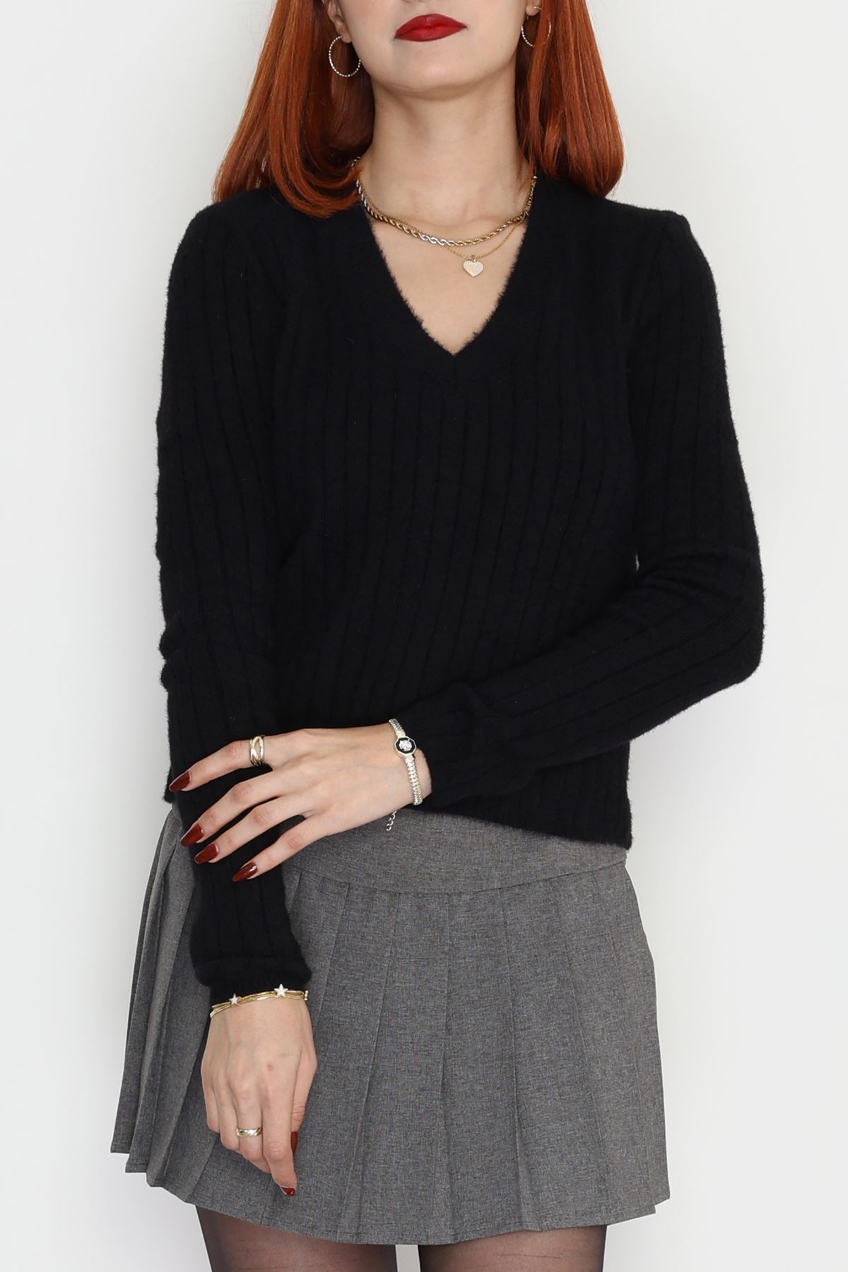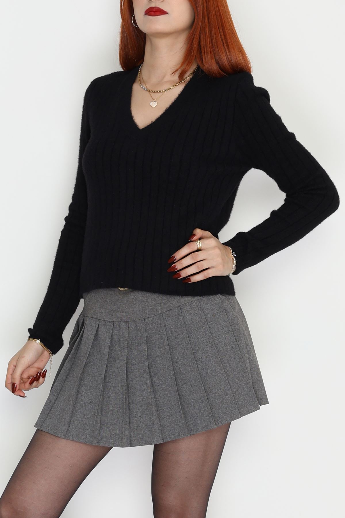 Kısa Kollu Fiyonklu Triko Siyah - 2281.1765.