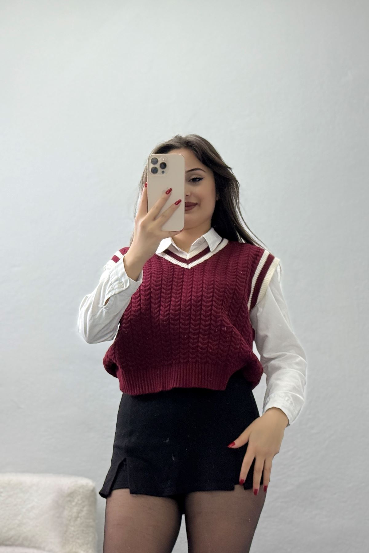 V Yaka Triko Süveter Bordolatte - 493.1577.