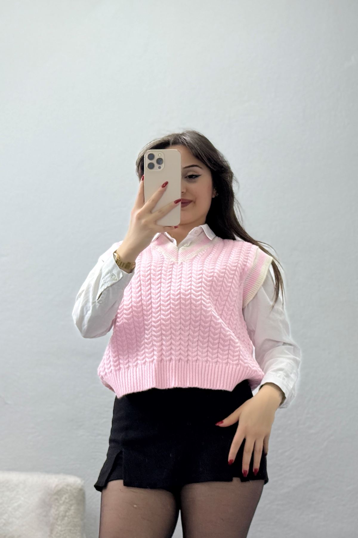 V Yaka Triko Süveter Pembelatte - 493.1577.